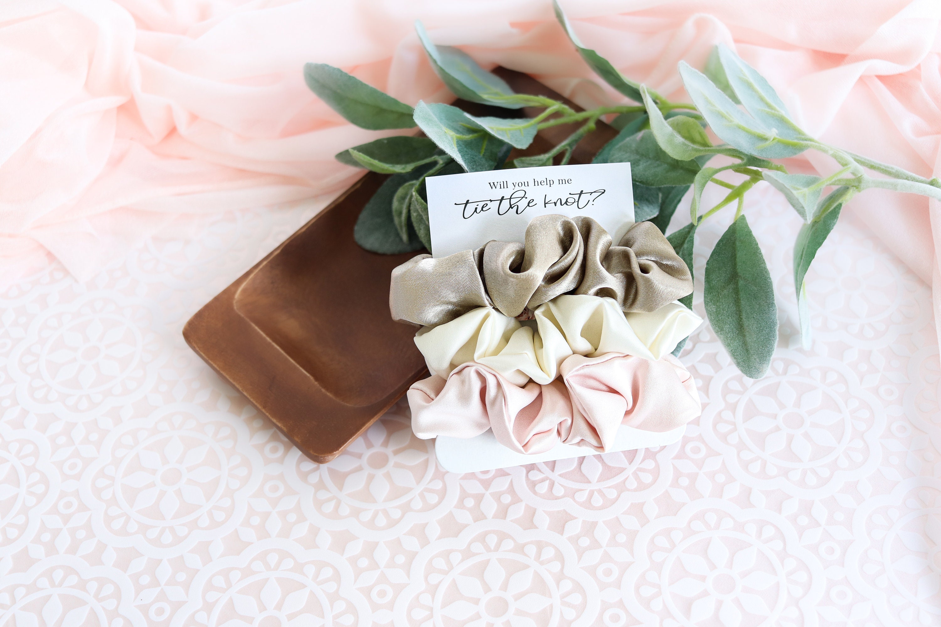 Help me tie the knot scrunchies, blush wedding favor, bridesmaid proposal favors, bridesmaid scrunchie To Have and To Hold Hair Scrunchies