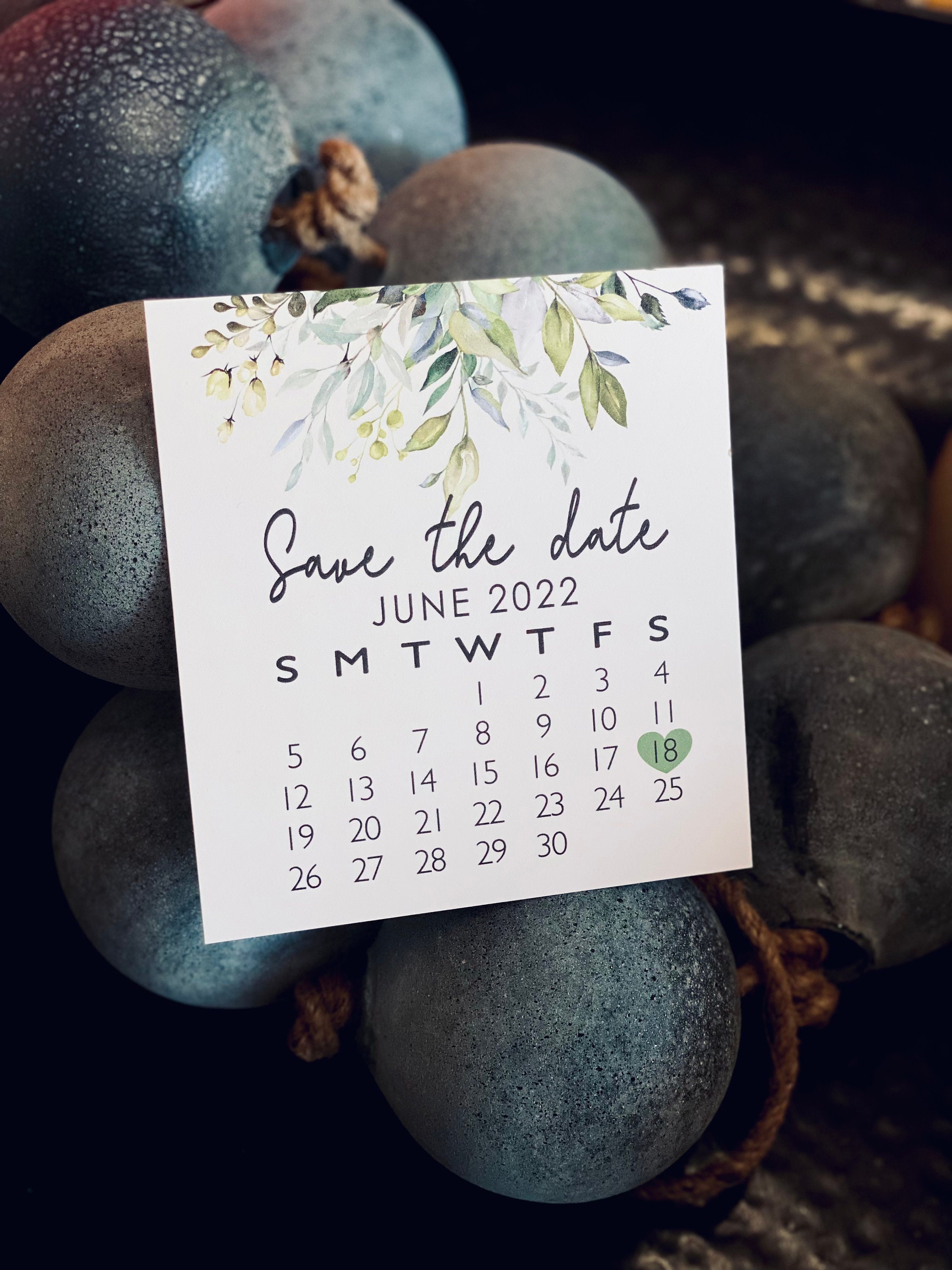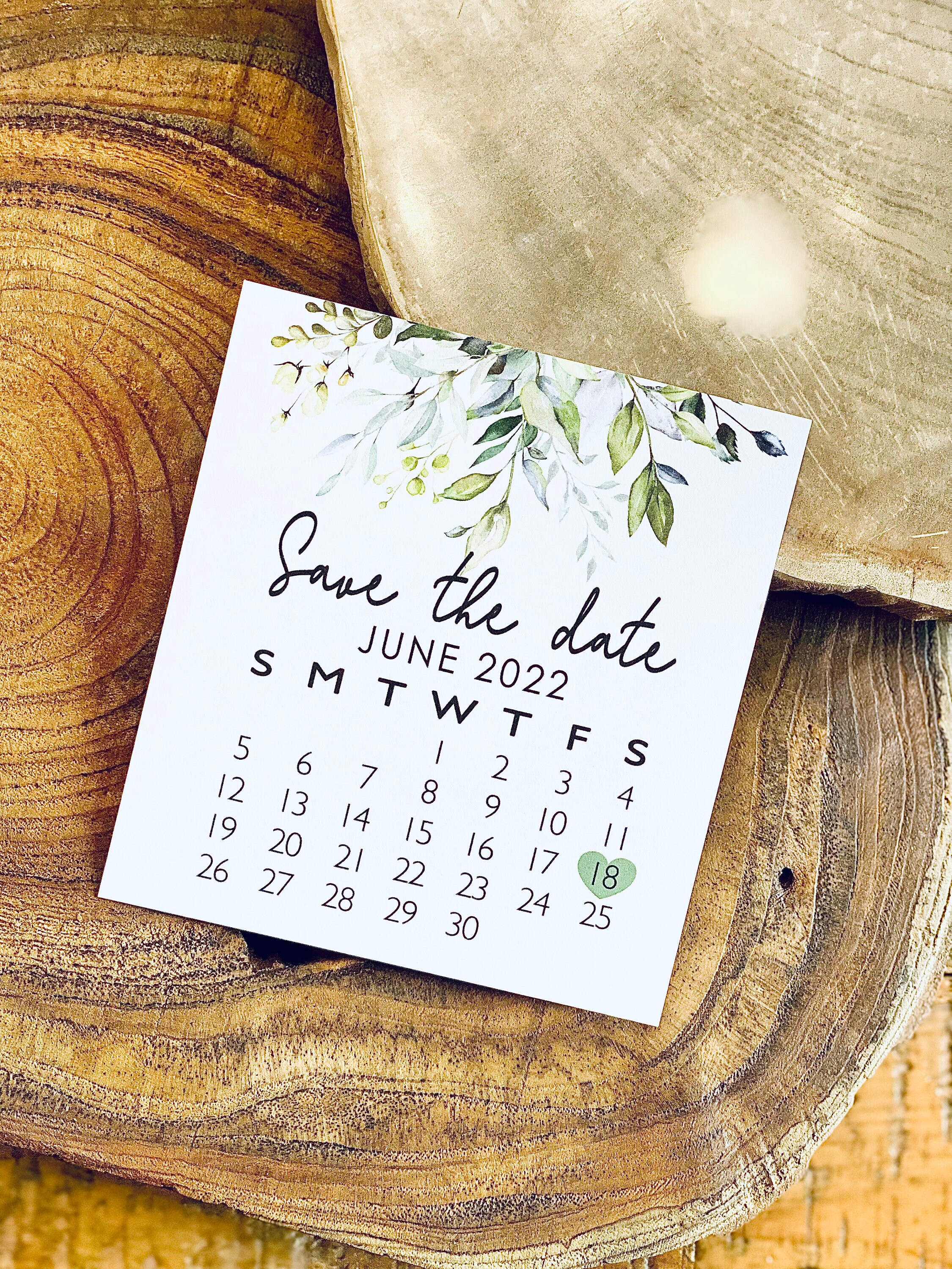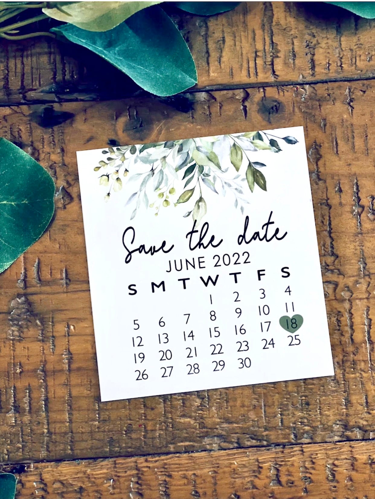 New date? Let them know! Beautiful card Save the Date Calendar cards are a perfect addition to your bridesmaid proposal boxes!
