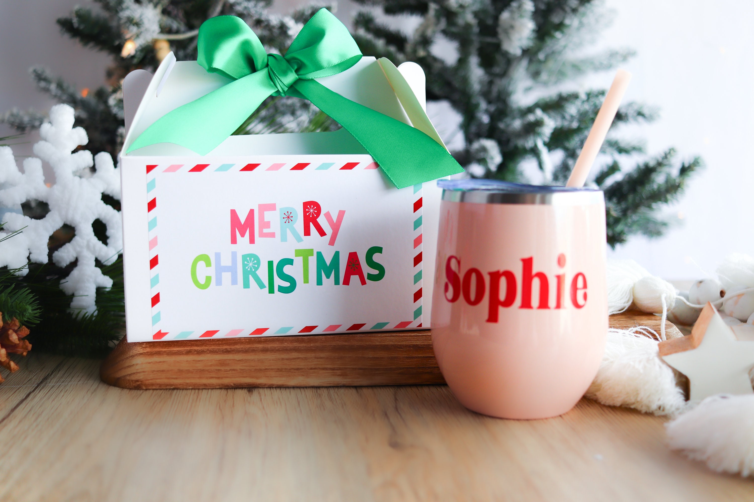 Christmas Box, Christmas gift set, Christmas gift box, Personalize Wine Tumbler gift for her personalize Wine Glass Christmas beer can glass