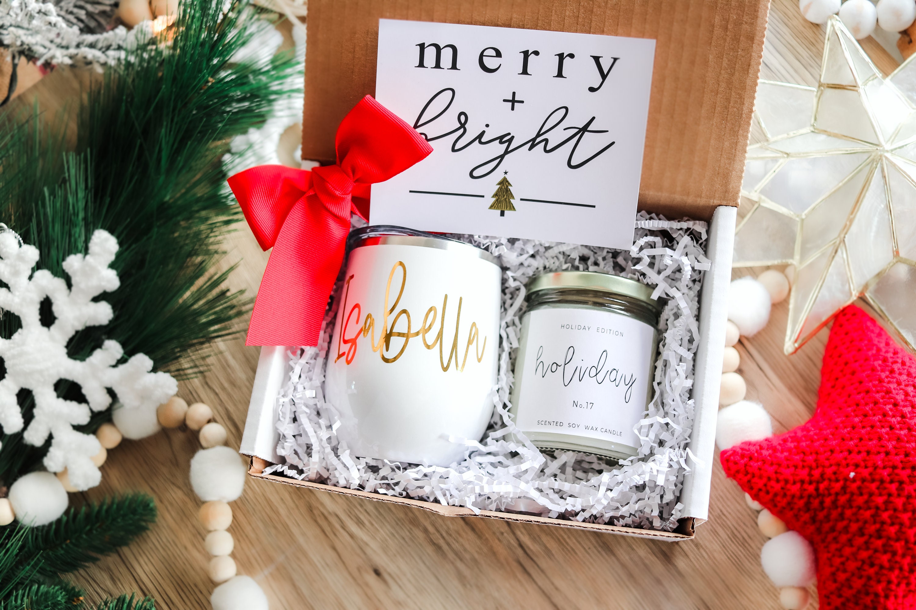 Christmas Box Perfect gift for this special holiday season, sent directly to the person or to your. Perfect for friends, family, coworker, boss, partner, couple, kids, teachers, etc. You never go wrong with a personalized cup, we have multiple colors, styles, fonts and font color to choose from. Personalized Christmas gift set, Christmas gift box, Christmas custom gift, Christmas appreciation gift, Christmas office gift, gift for him, gift for her, husband gift,