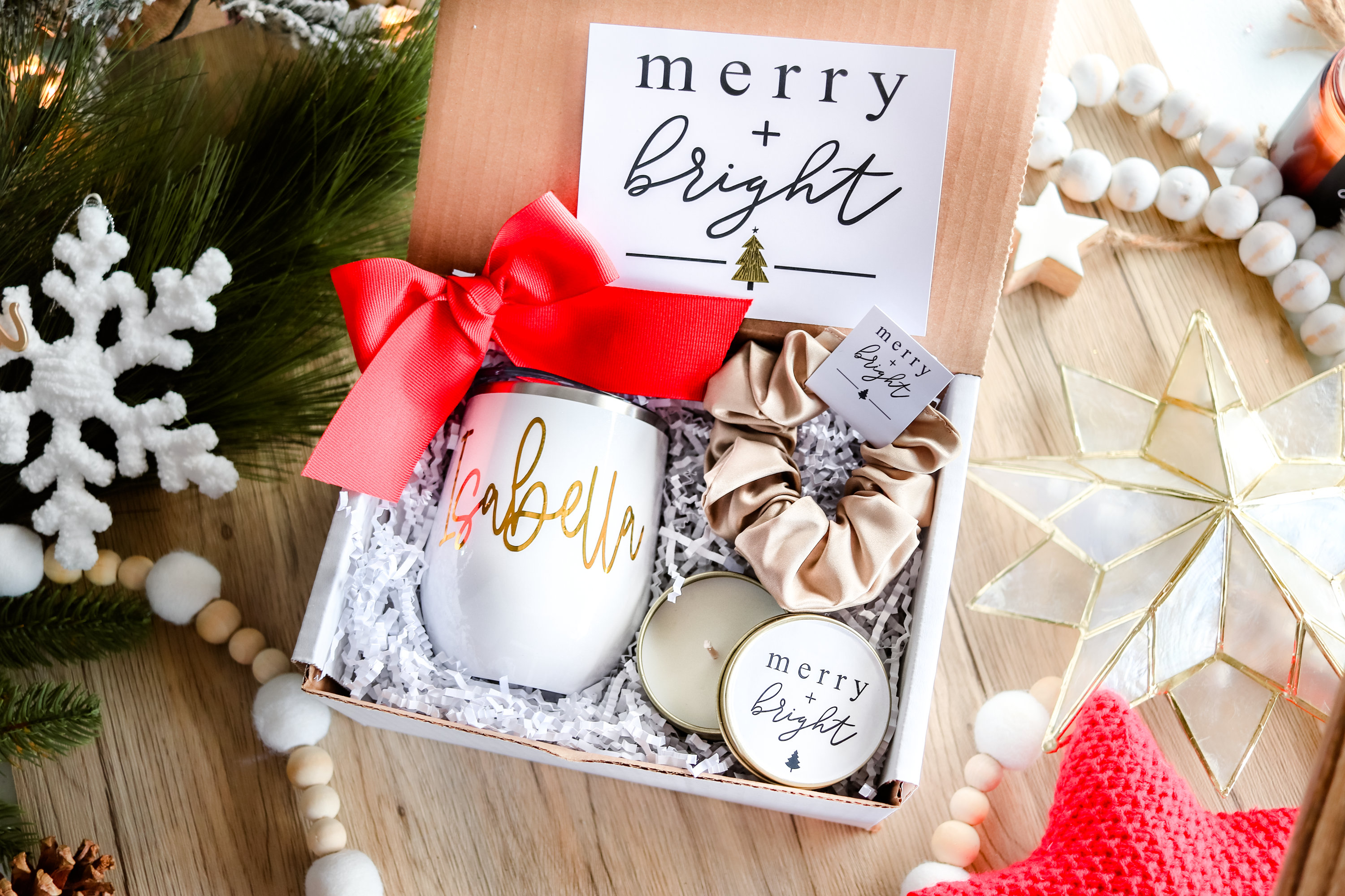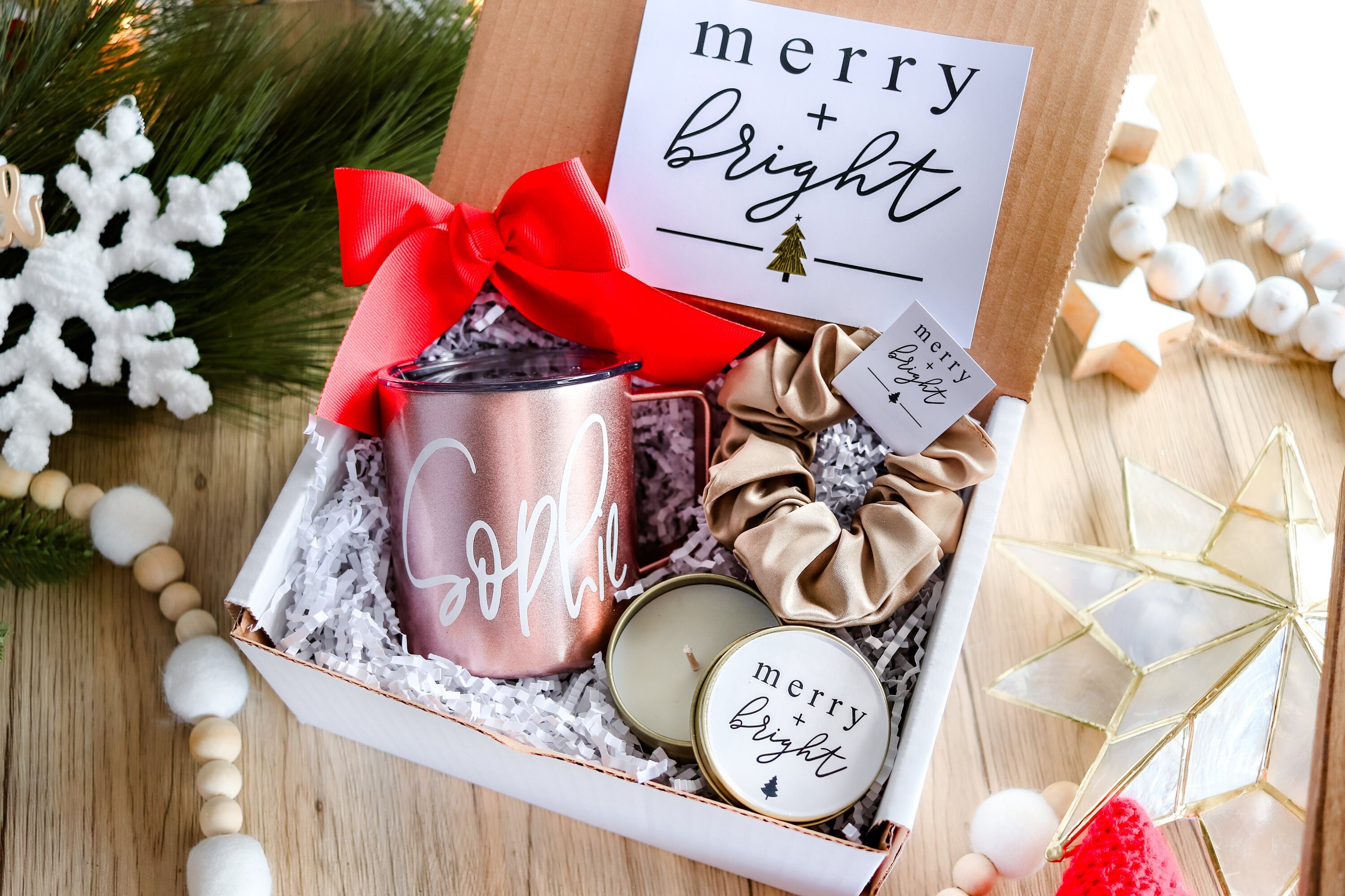Christmas Box, Christmas custom gift, Christmas appreciation gift, Sober christmas gift, rose gold tumbler, scrunchie gift, Candle gift