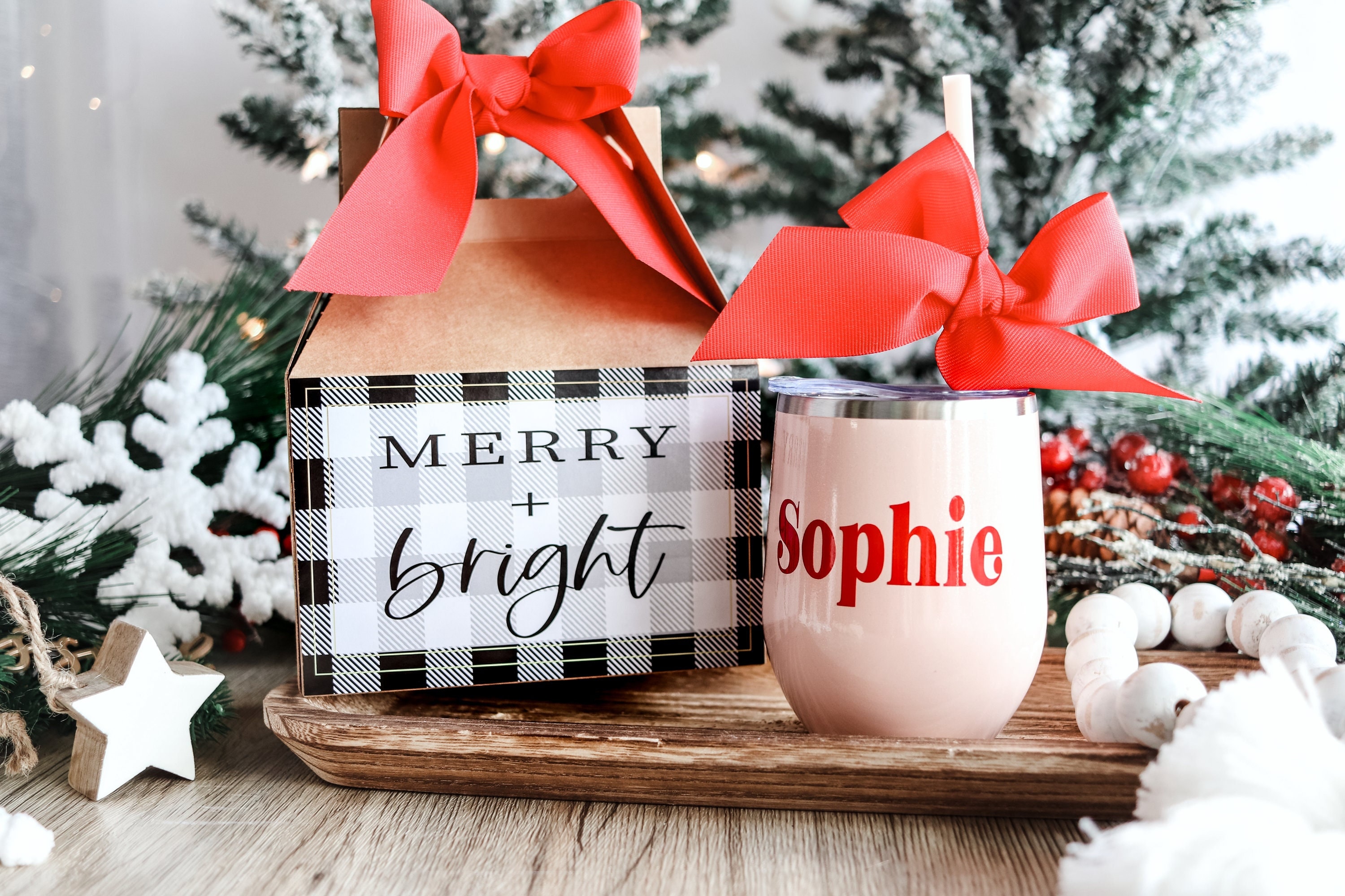 Christmas Box, Christmas gift set, Christmas gift box, Personalize Wine Tumbler gift for her personalize Wine Glass Christmas beer can glass