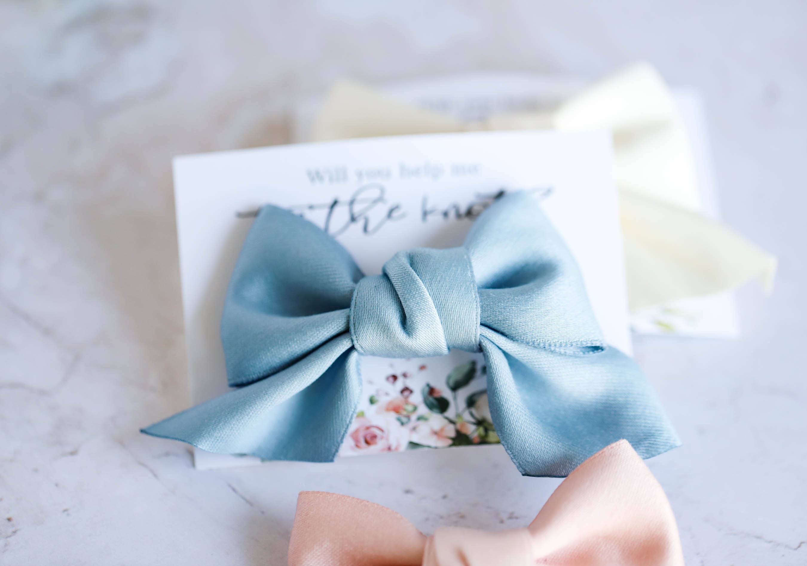 flower girl bow clip, flower girl hair accessories, flower girl proposal, flower girl proposal box filler,