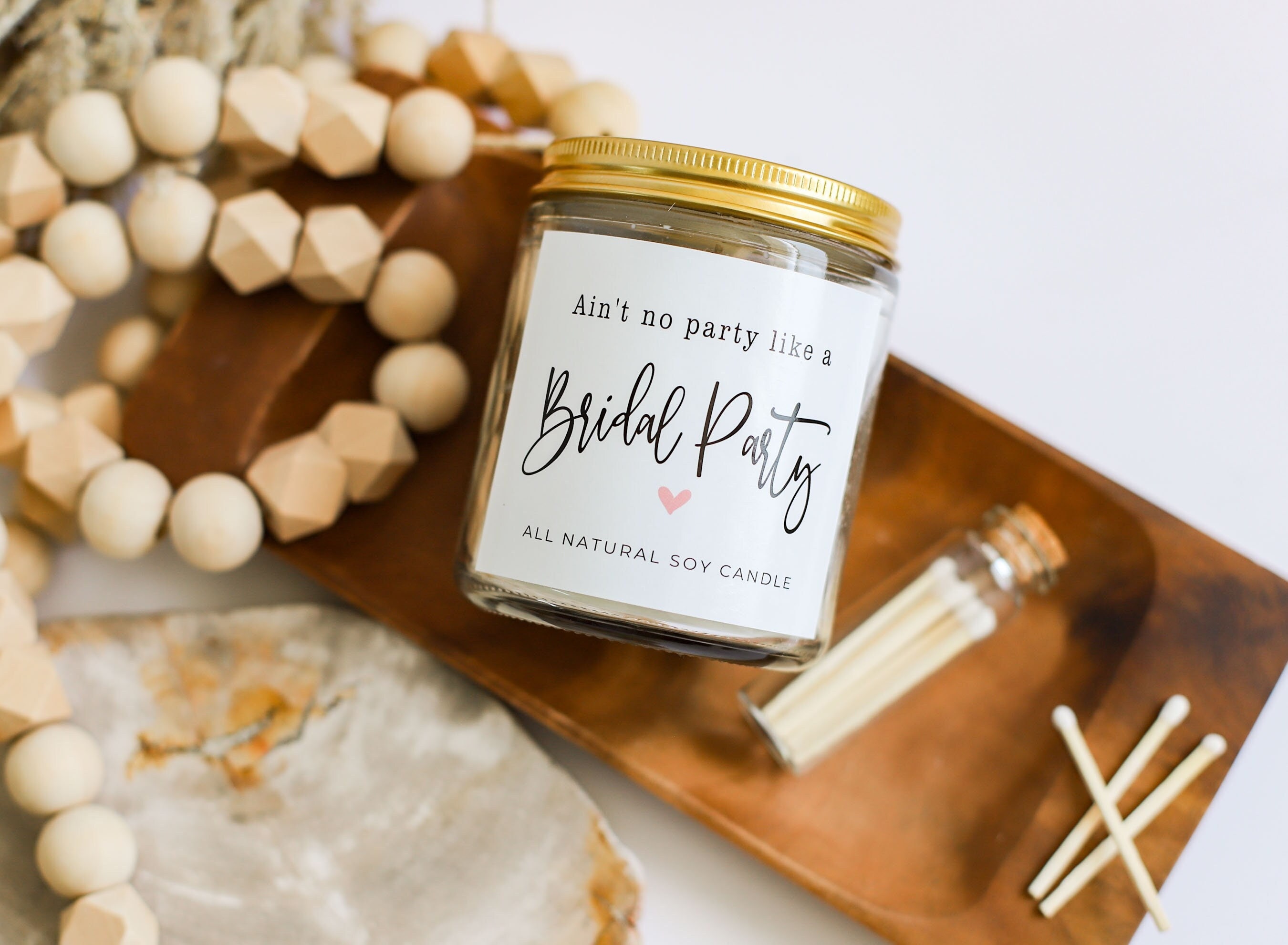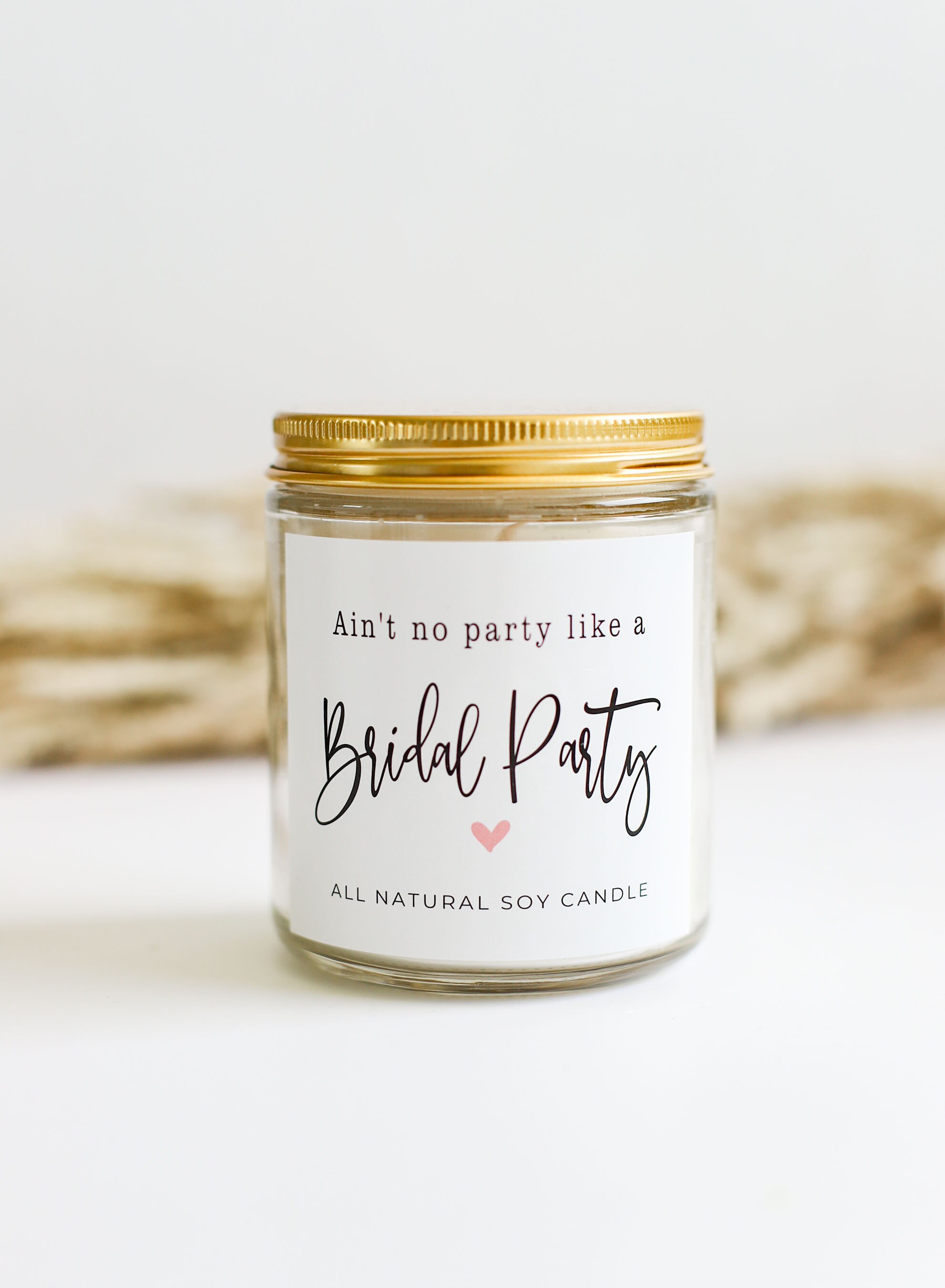 Bridesmaid candle, bridal party candle, bridesmaid candle gift, ain't no party like a bridal party gift, bridesmaid proposal box favor