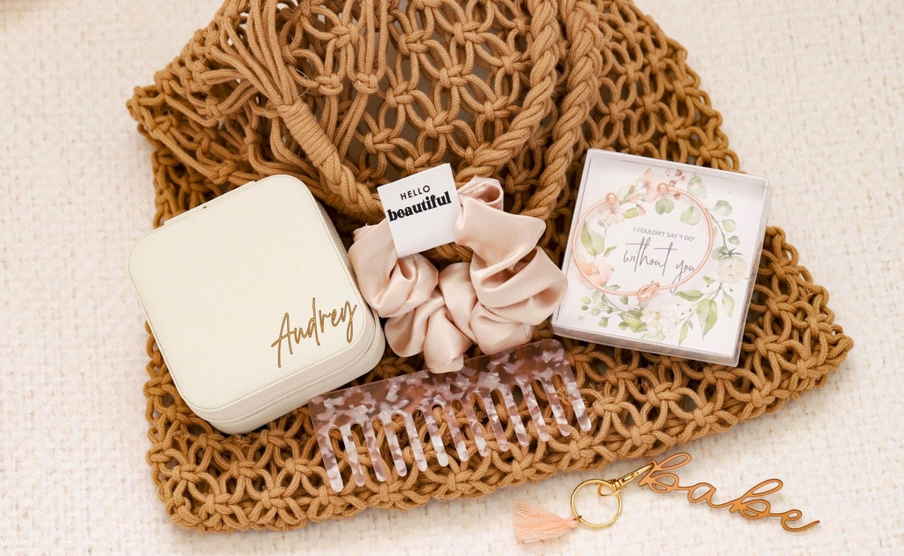 Pool Party Favors beach bag, bridesmaid jewelry box, bridesmaid proposal gift bracelet, babe keychain