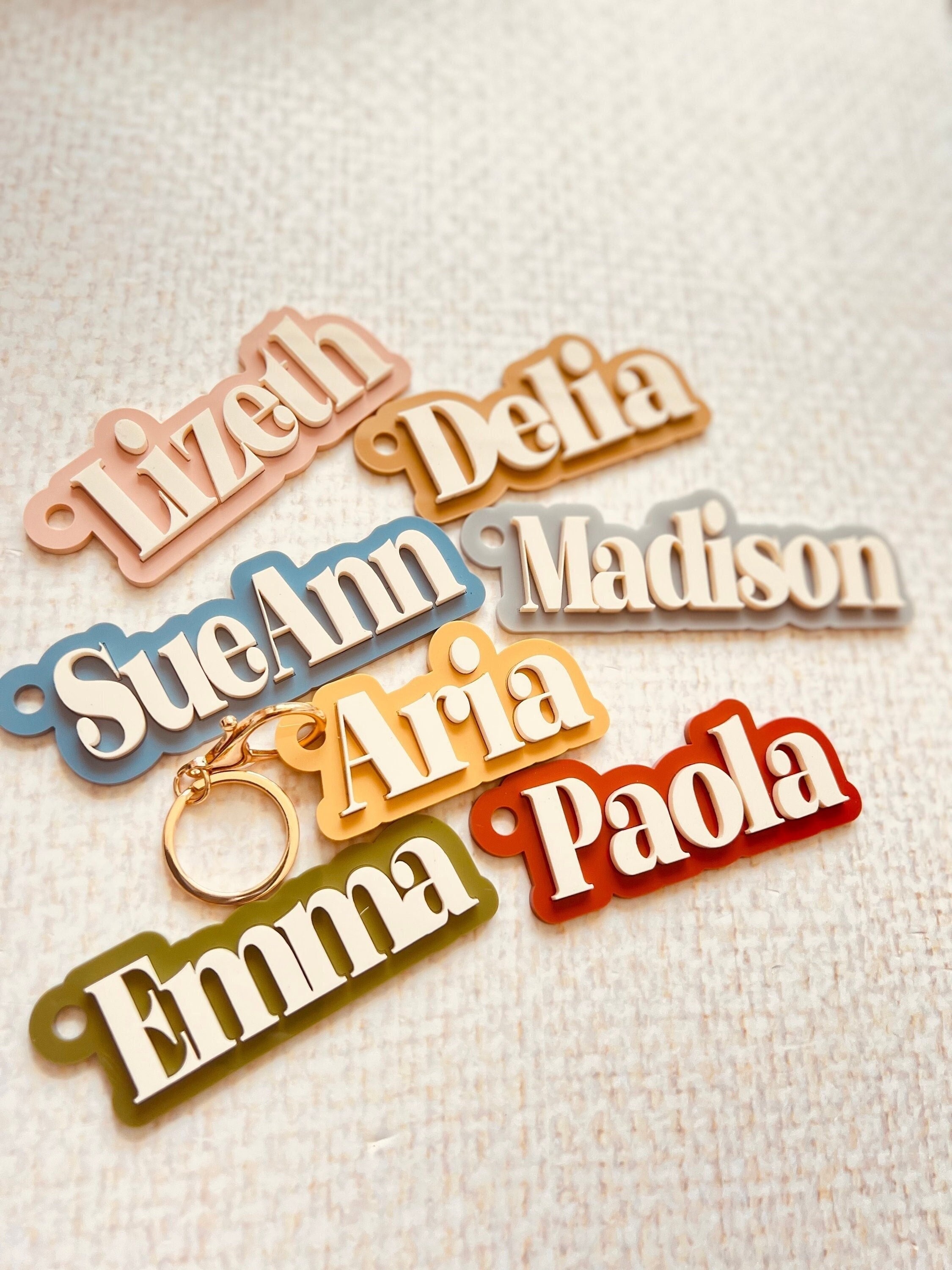 Backpack Personalized Tags, Back to School Name Tag, Custom Bag Tag, Keychain Name for Backpack, Acrylic Name Tags, Bag Charm Neutral colors