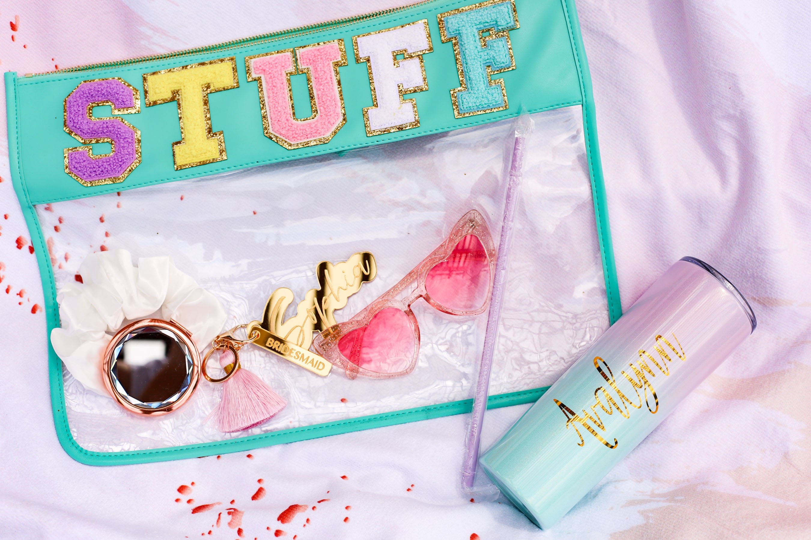Clear pouch with patches, snacks bag, travel bag, clear bags, cosmetic bag, bridesmaid gift, personalized gift, SEWN ON PATCHES, beach bag