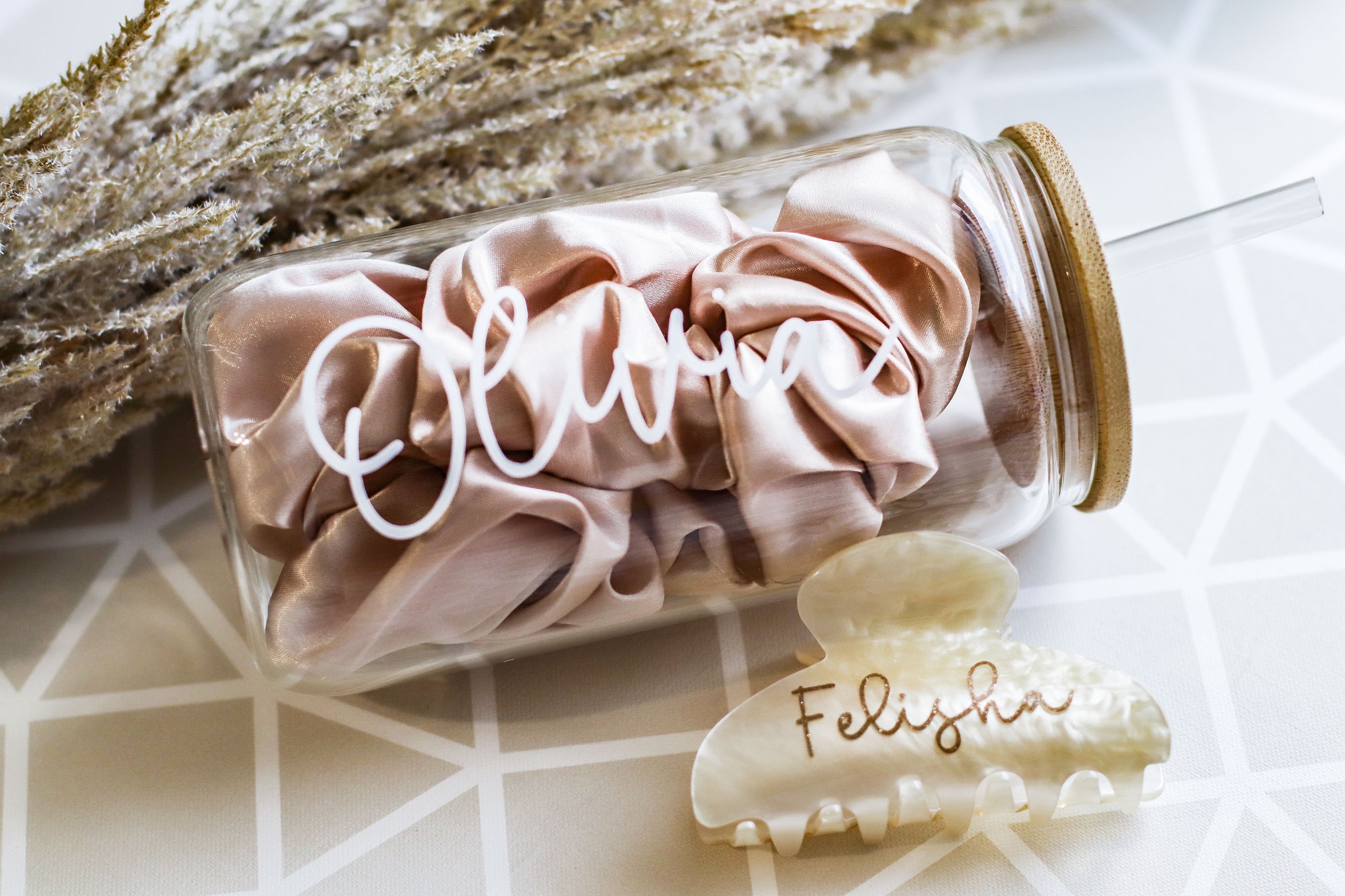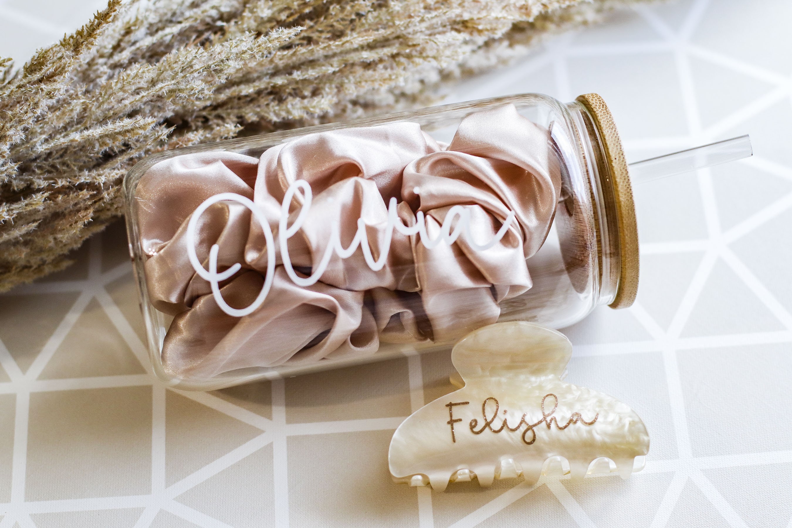 Font on cup came with a small issue but the seller was very quick to cooperate and help provide me with a new stencil for the cup! The claw clip was also adorable and absolutely love it 🙌🏼
