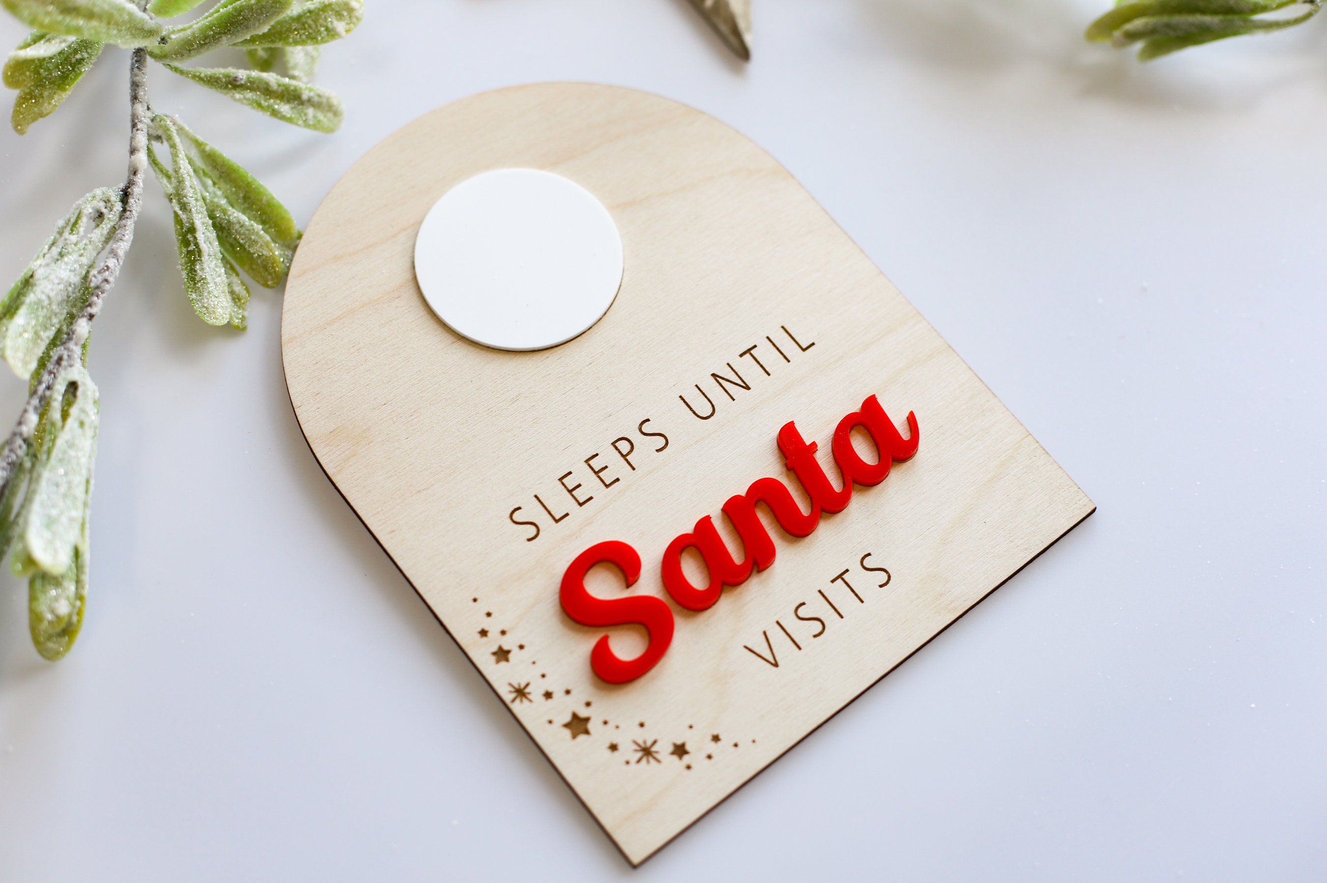 Keep track of the sleeps before Santa visits with this board laser engraved into wood with acrylic!