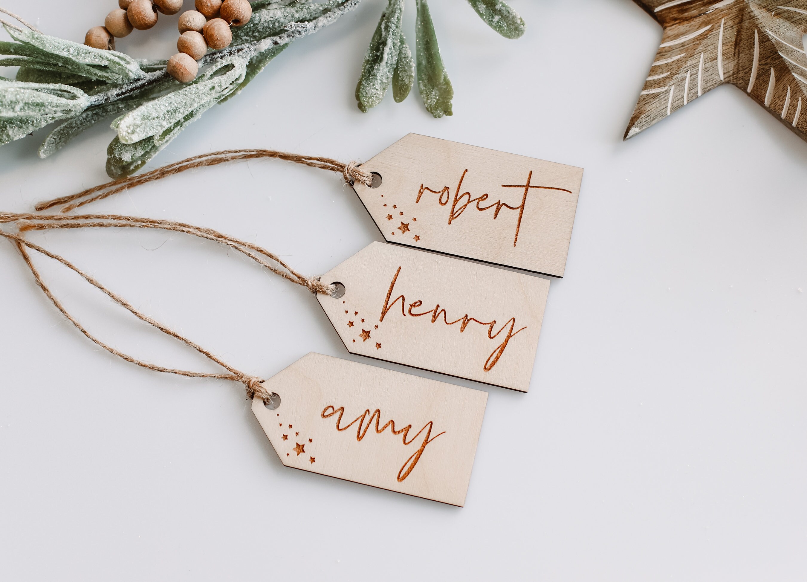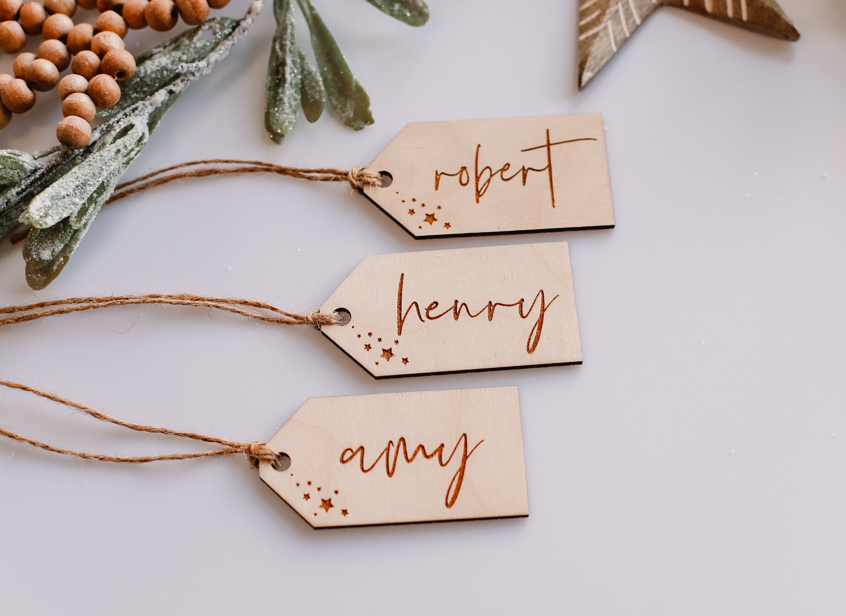 Personalized Wooden Stocking Tag | Custom Engraved Gift Tag | Wooden Tag Place Setting | Wooden Name Ornament | Wedding Place Card Setting