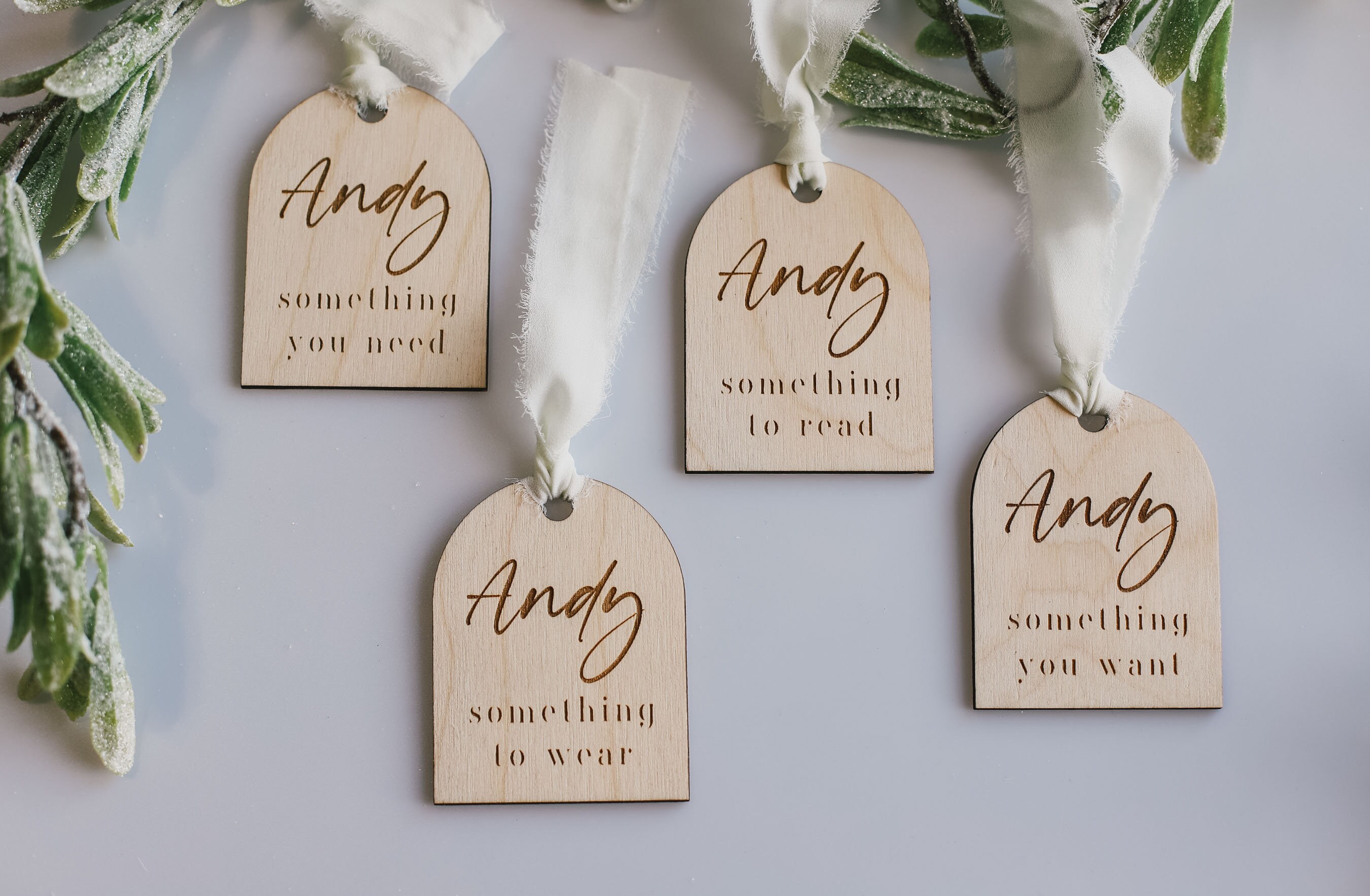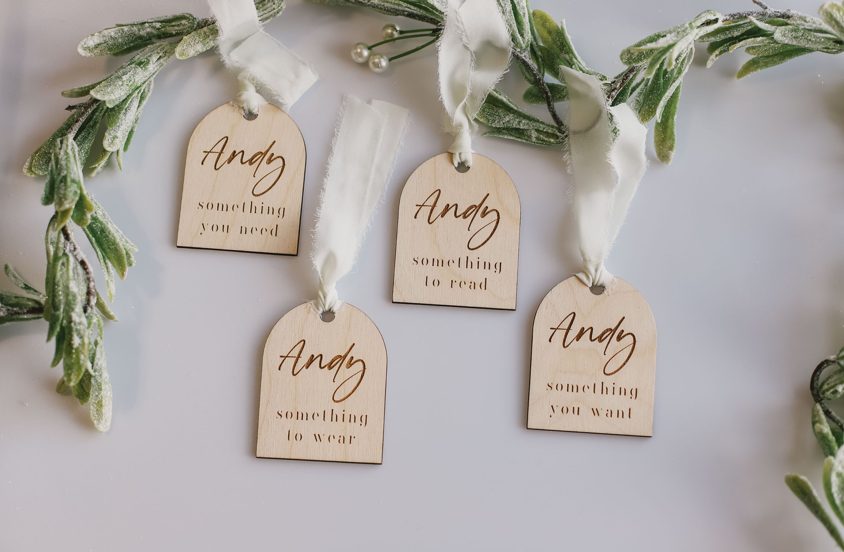 Something You Want / Something You Need / Something to Wear / Something to Read / Personalized Holiday Christmas Gift Tags / Set of 4