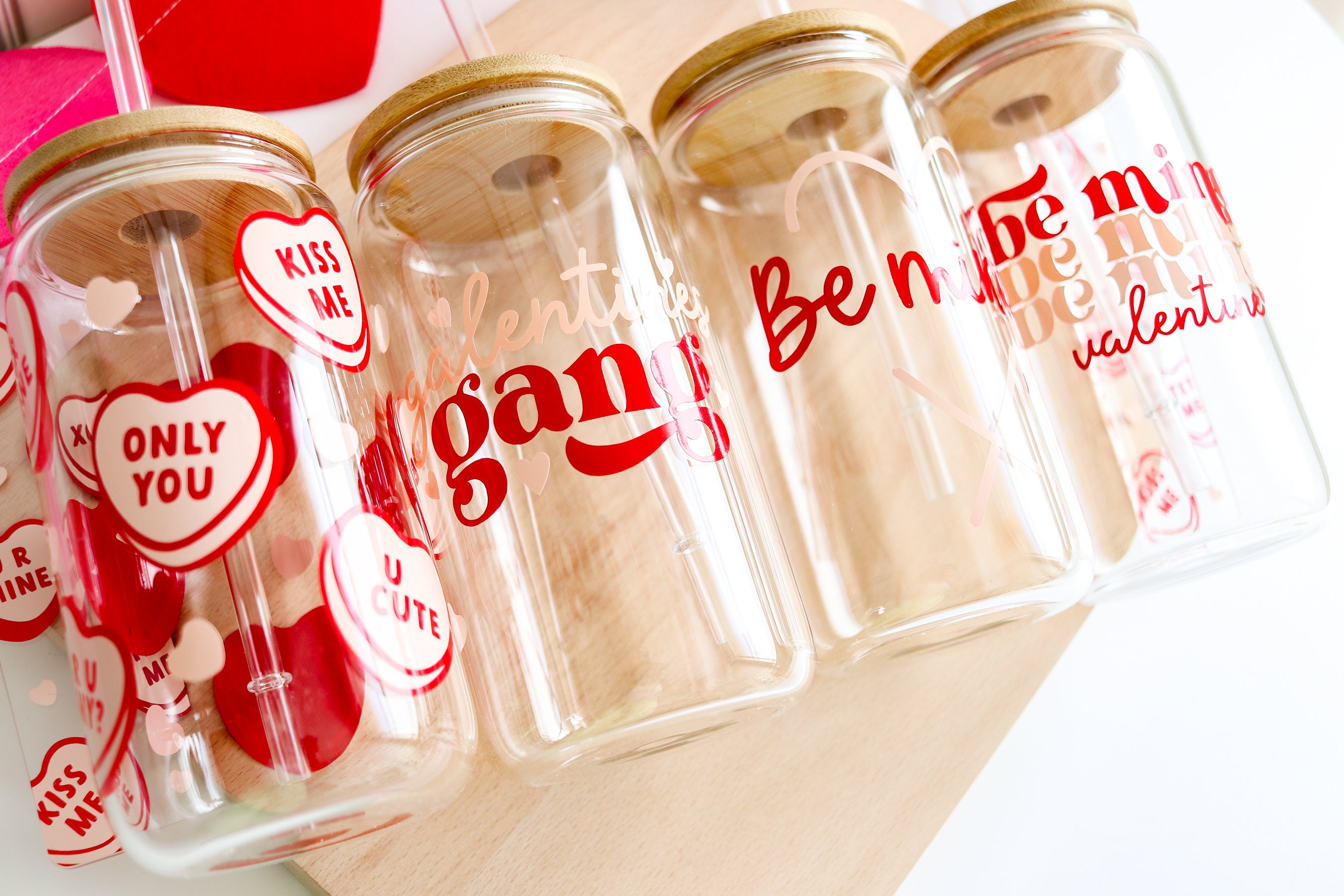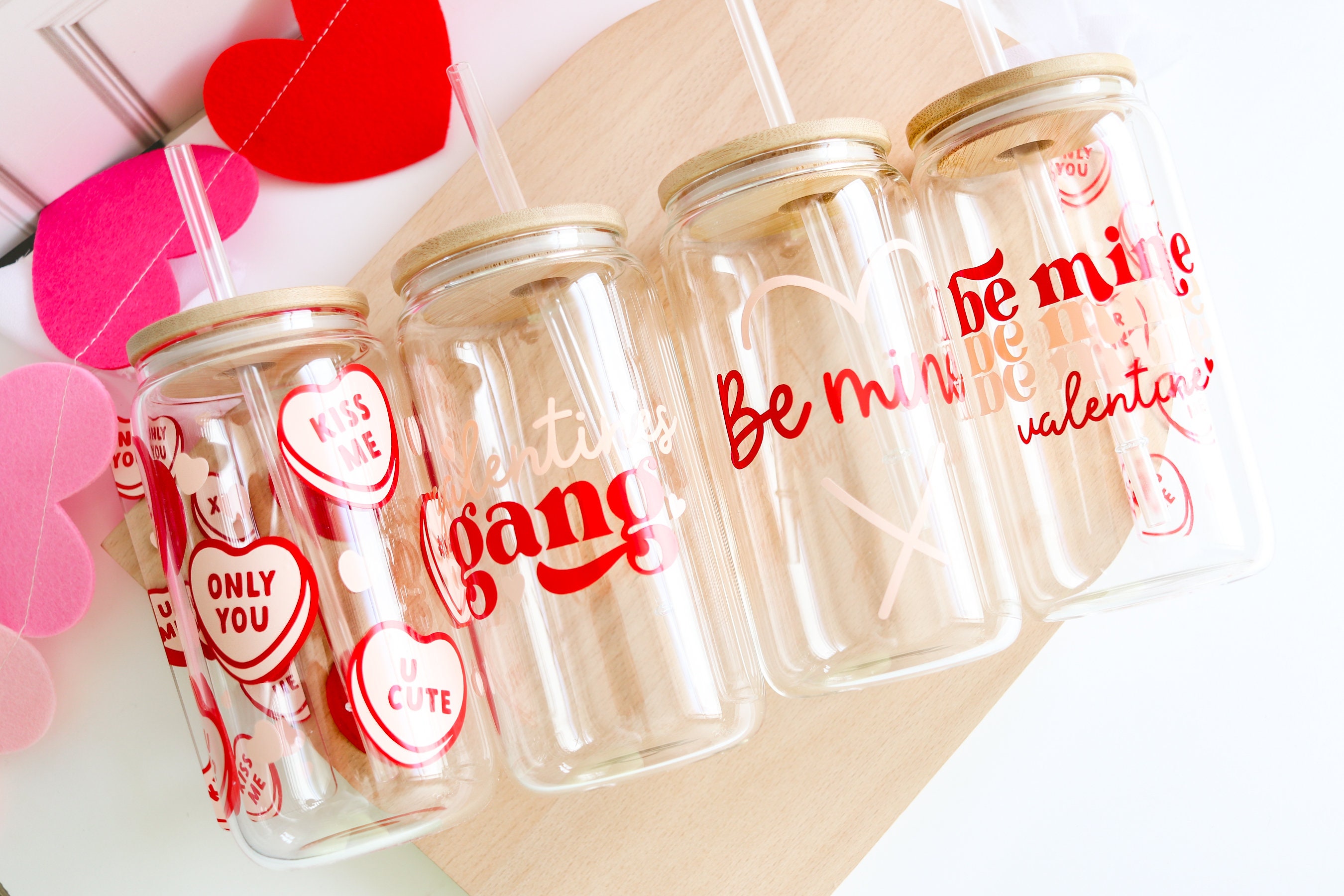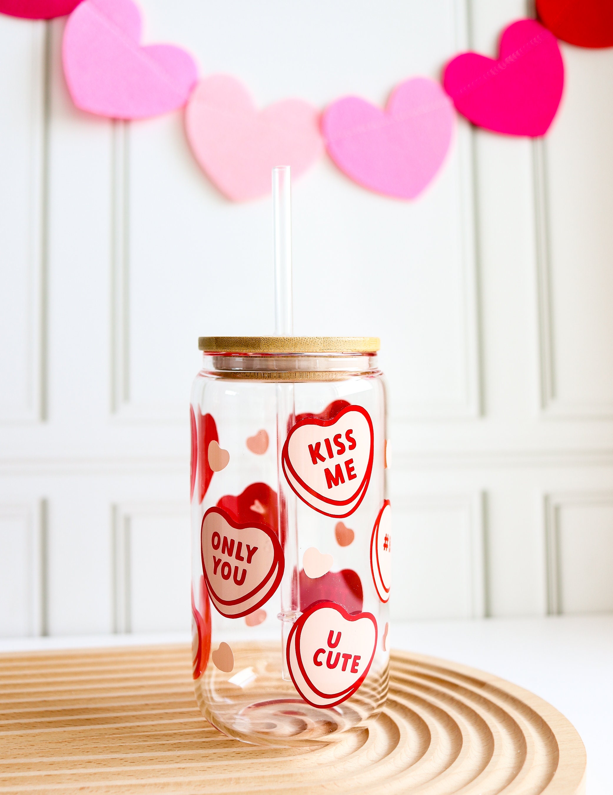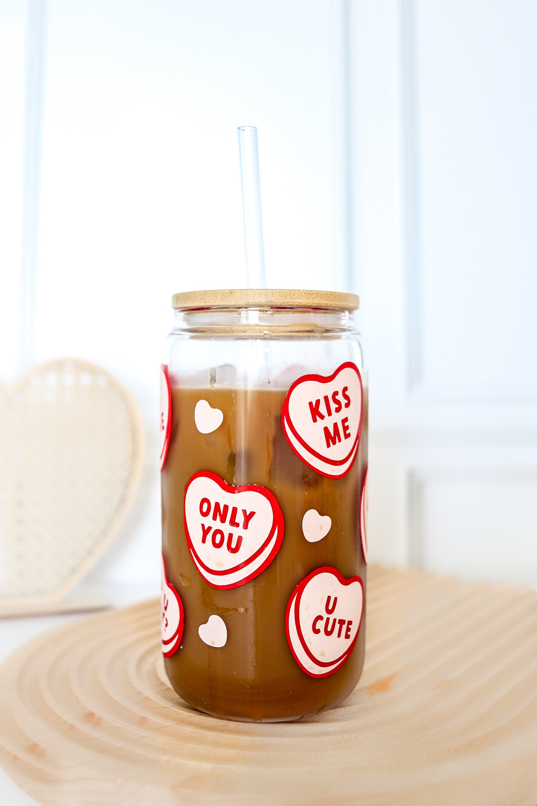 Valentines Beer Can Glass Coffee ,Valentines Coffee Glass, Soda Can Glass, Hearts Beer Can Glass, Iced Coffee Glass, Gifts Under 20, Gifts For Her, Valentines libbey glass Cup