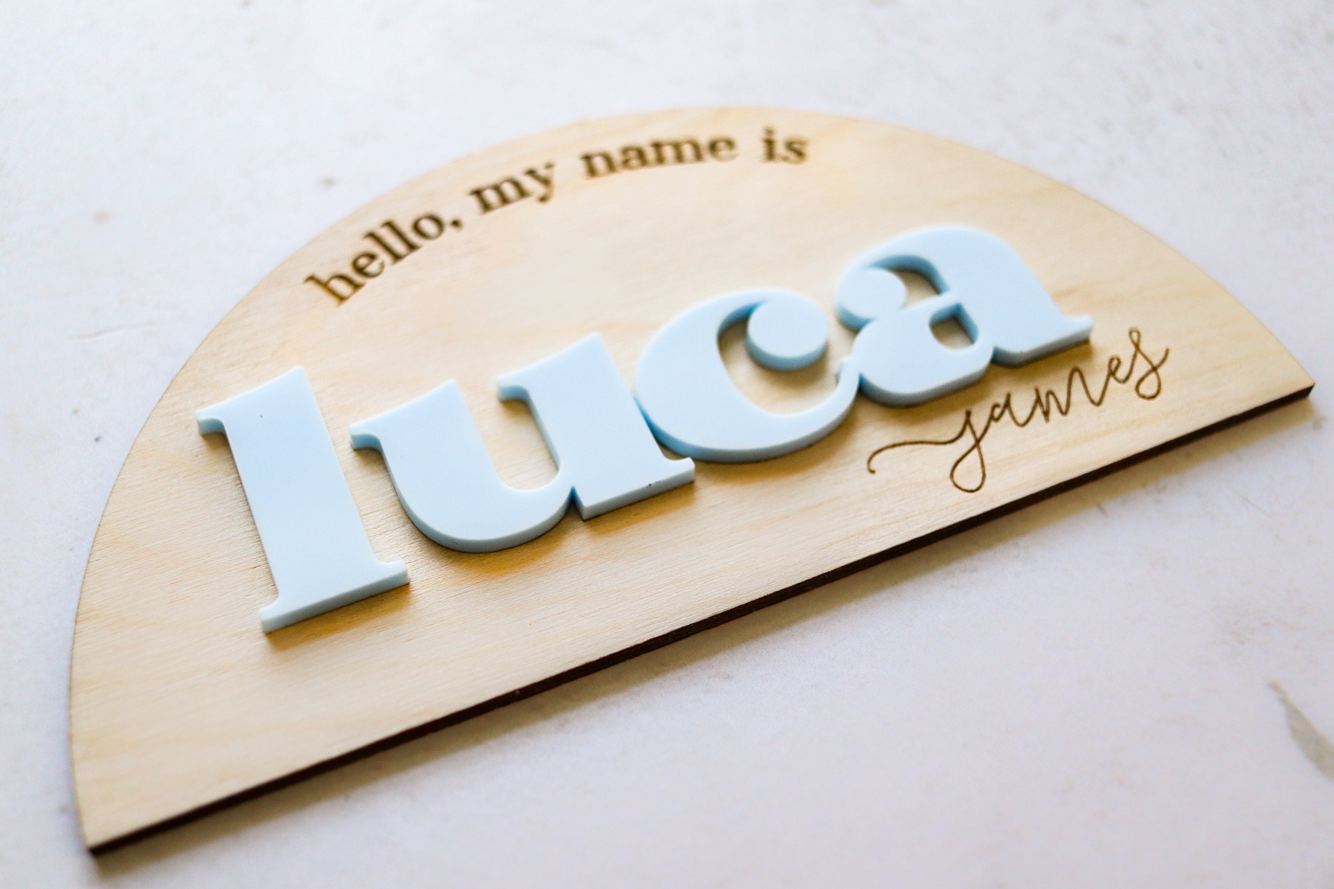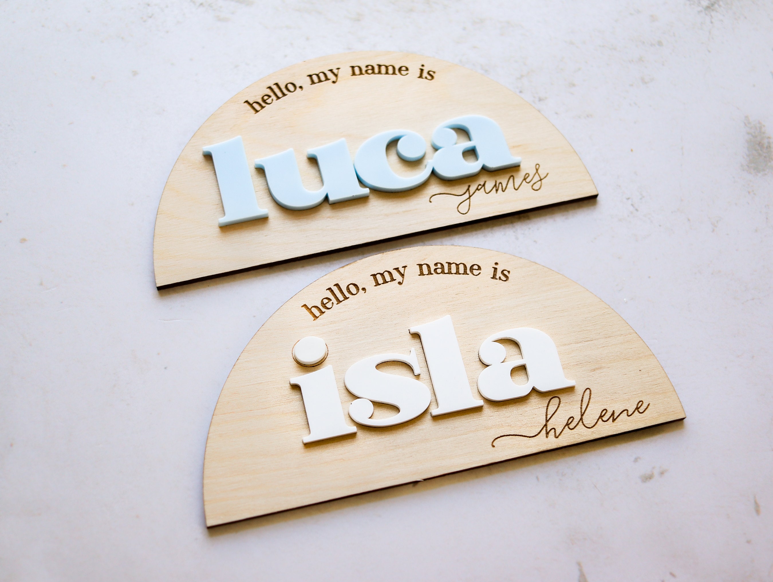 Birth announcement, wooden birth announcement, boho birth sign, hello mi name is, sign, new born props, photo props, new born name sign