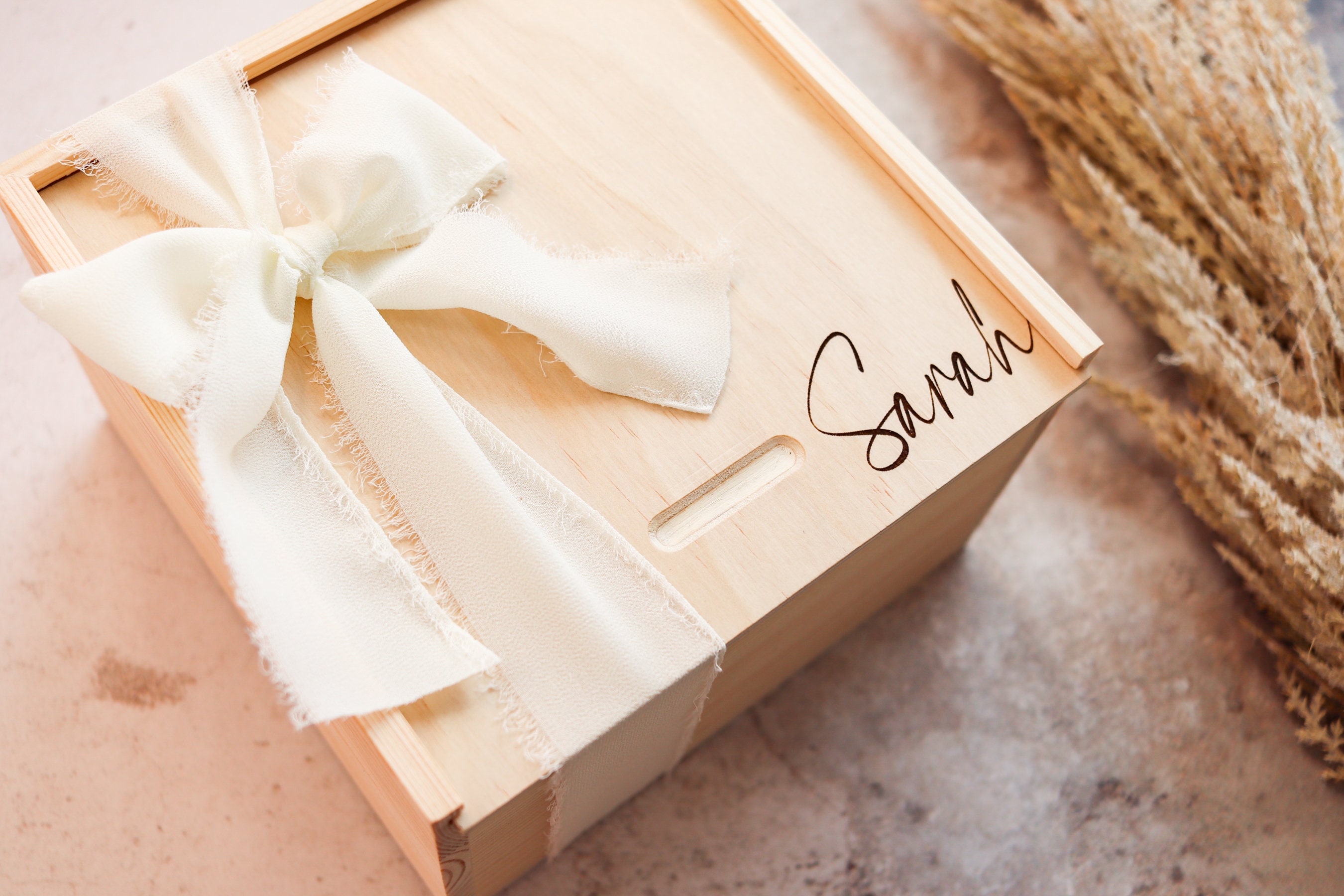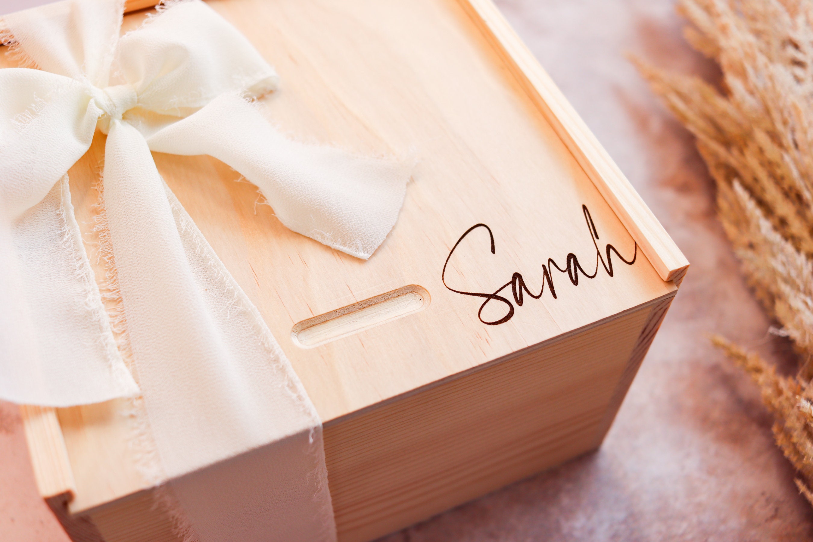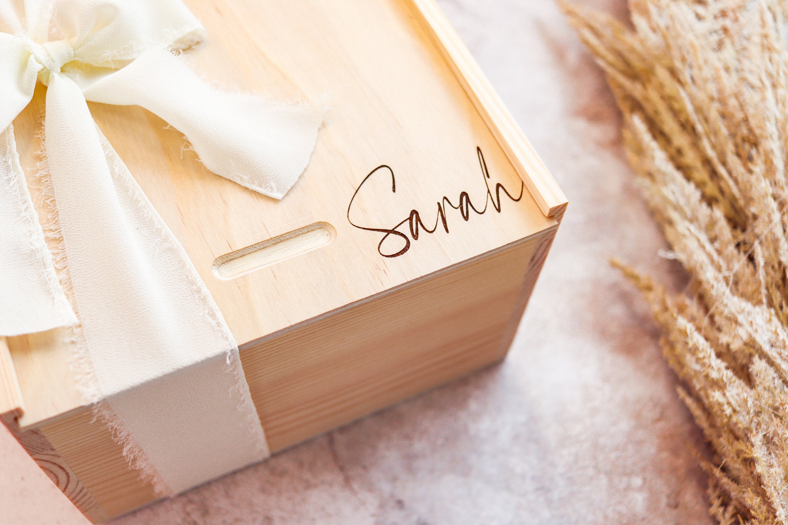 Make your own special gift with our wooden box, engraved personalization on the top of the lid.