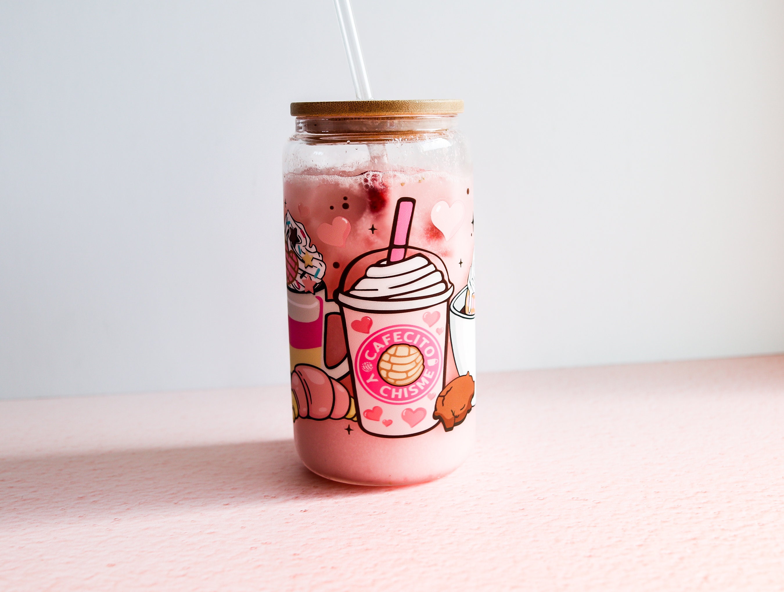 Cafecito y Chisme Tumbler, marranito Mexican Concha, Pan Dulce, Galentines gift, Cafecito y chisme cup, libbey cup, chime glass cup