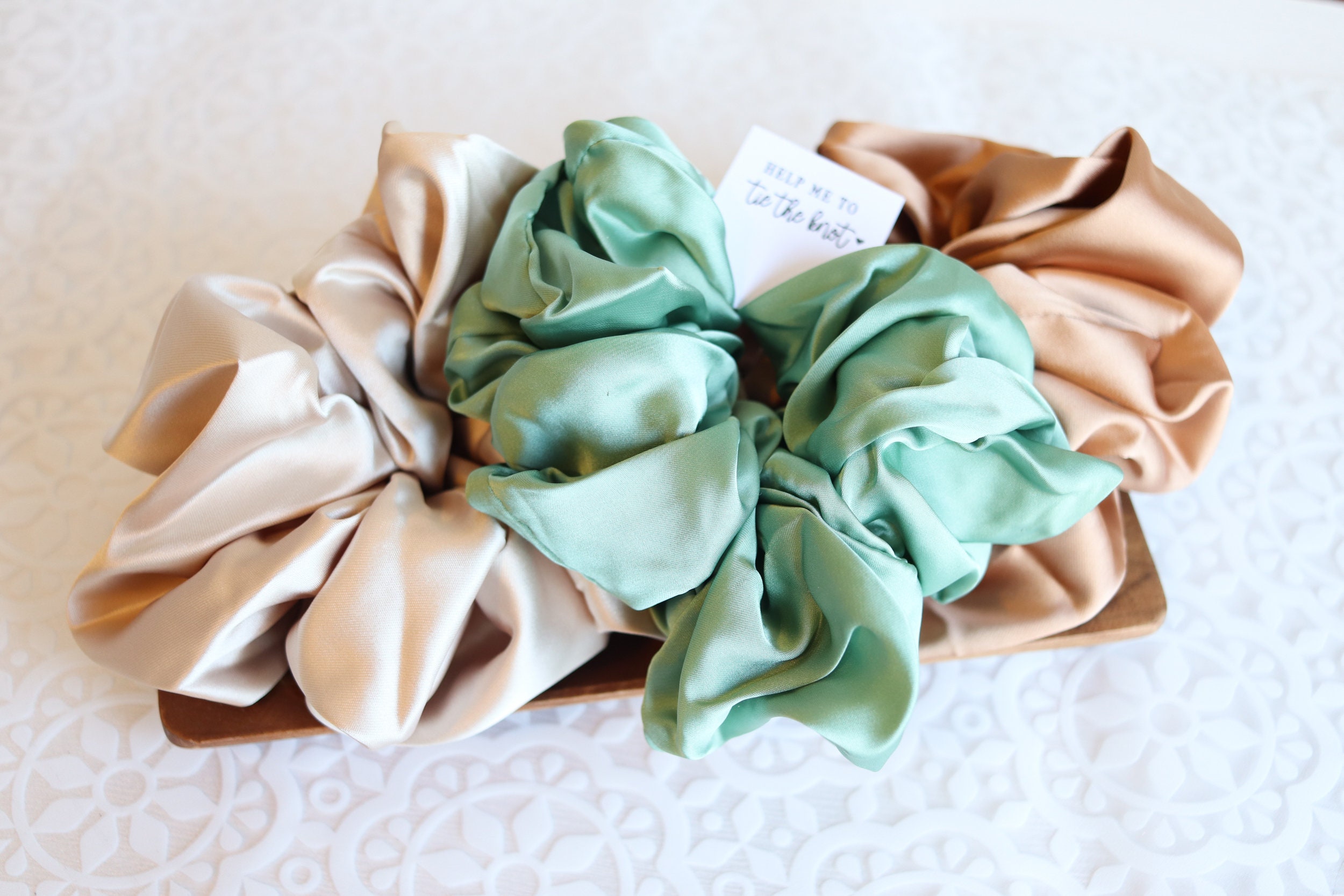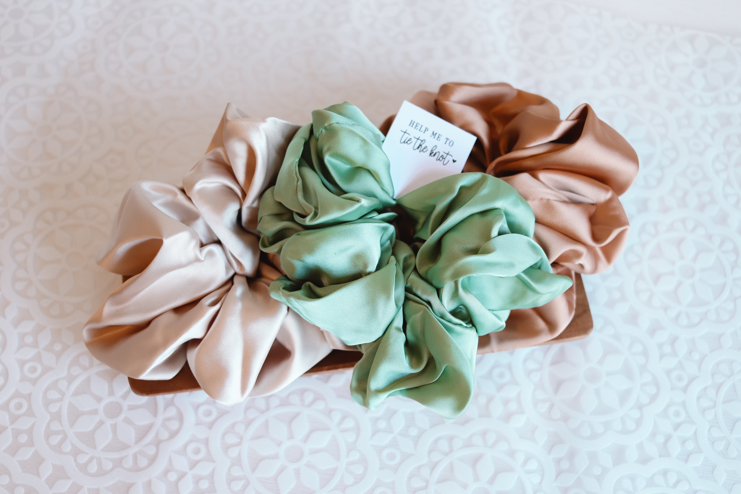 Bridesmaid scrunchie, to have and to hold your hair back, I can't tie the knot without you help me to tie the knot scrunchies for bridesmaid, sage scrunchie, terracotta scrunchie, champagne scrunchie