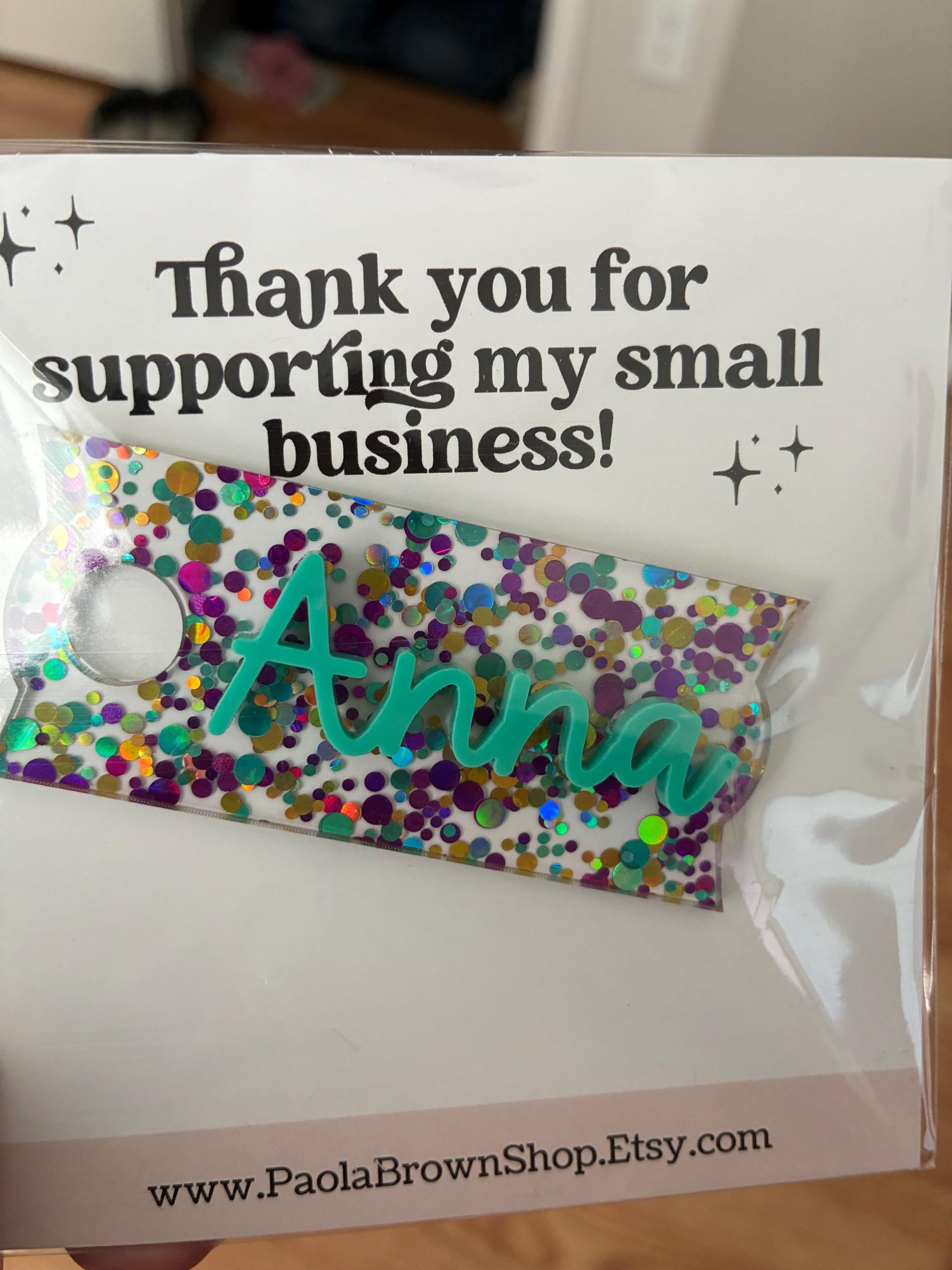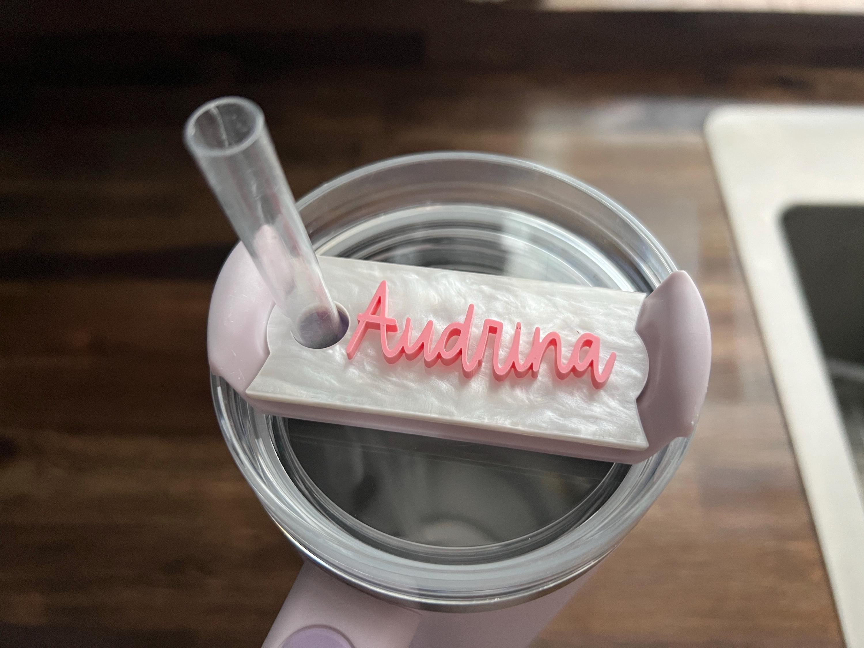 Personalized acrylic tag, designed to fit the tumbler top lid easy to remove, allowing you to wash your lid worry-free. To wash it, simply remove the tag, wash your lid, and easily place the tag afterwards.