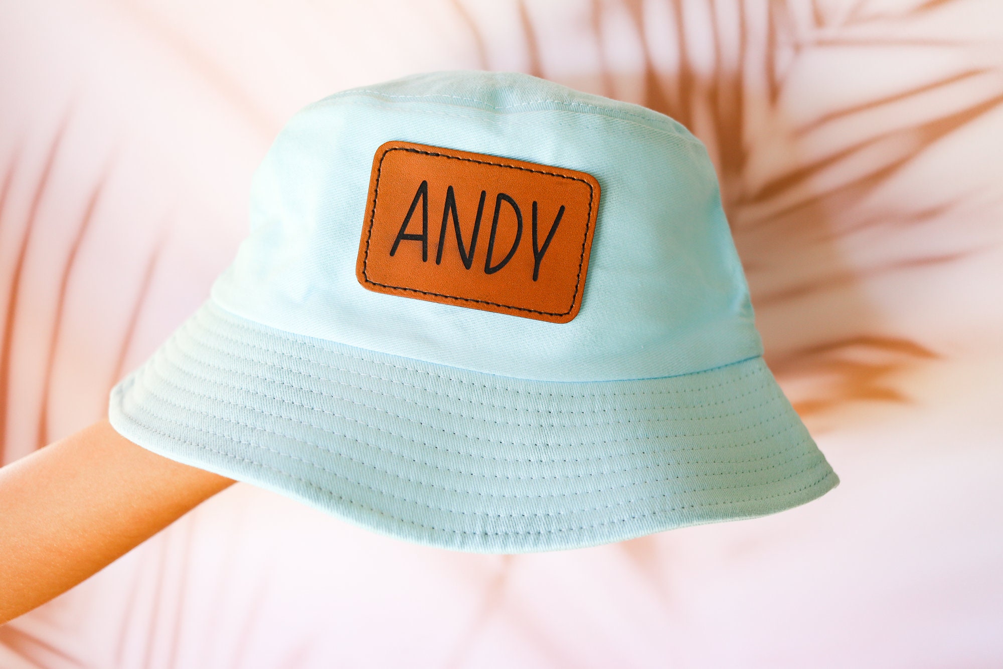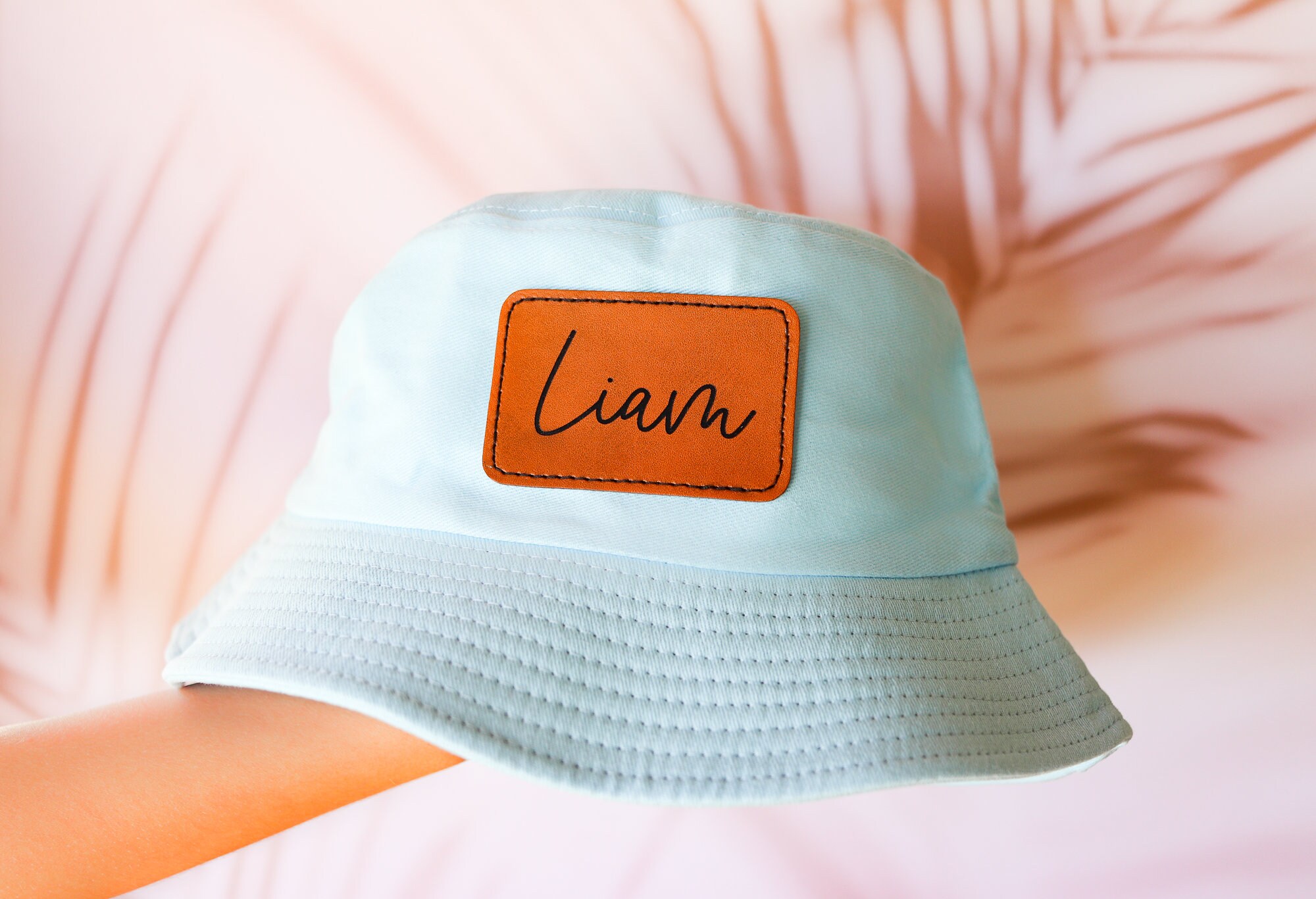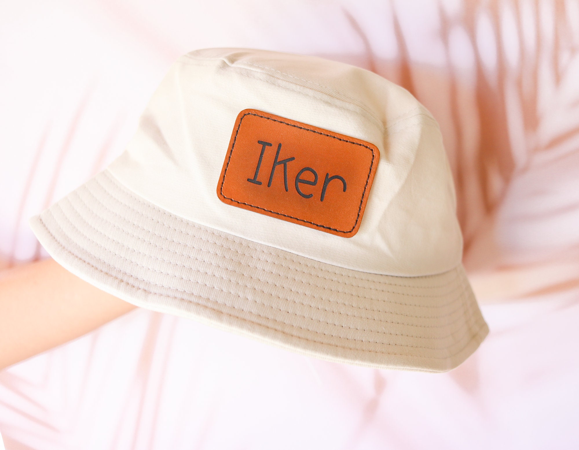 Customized leather patch bucket hats, perfect for summer!
