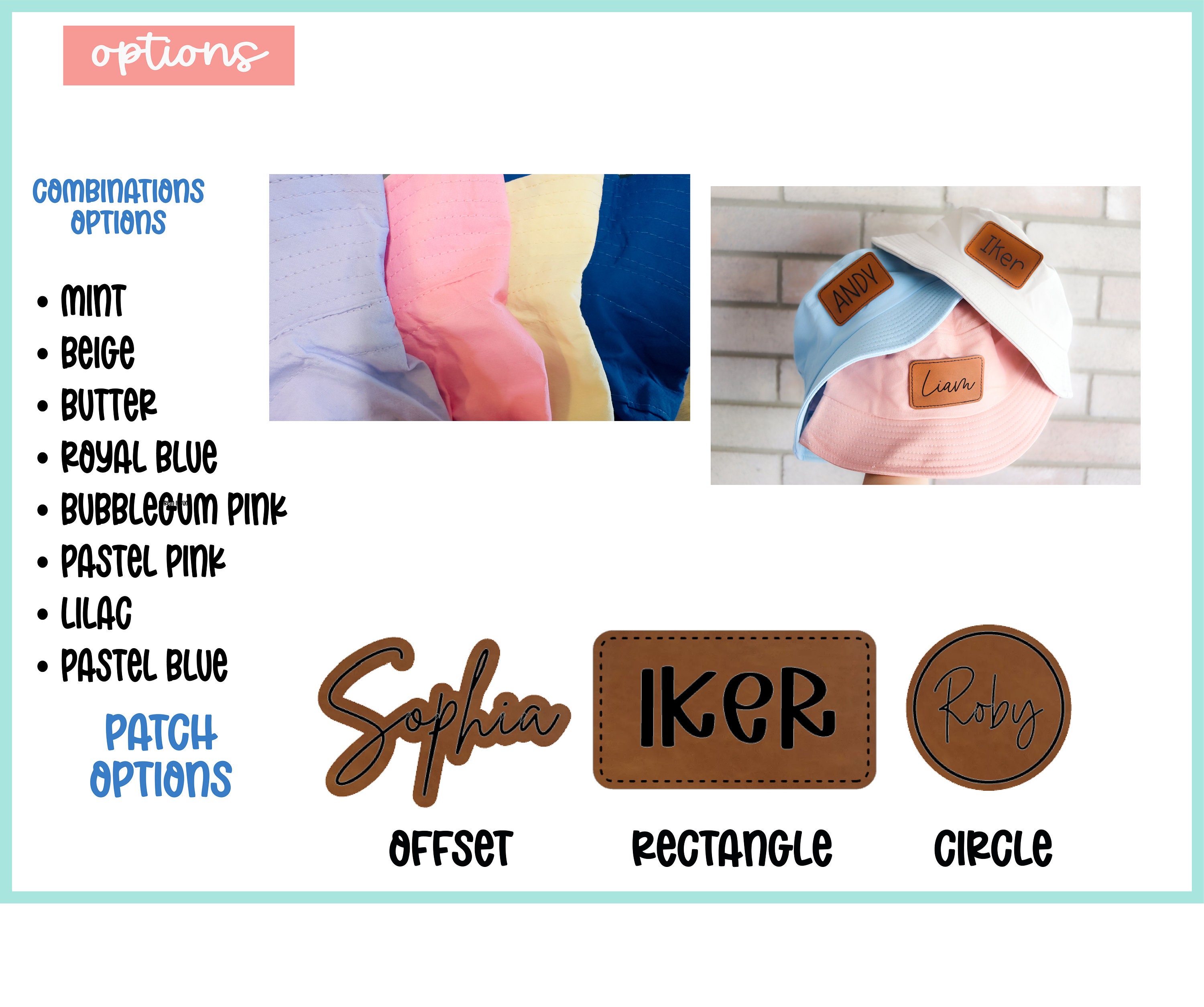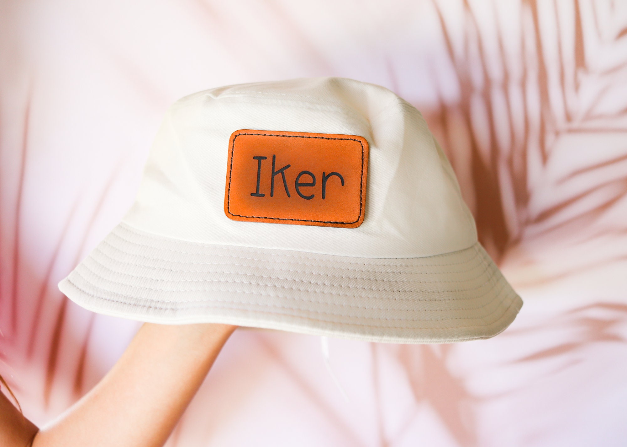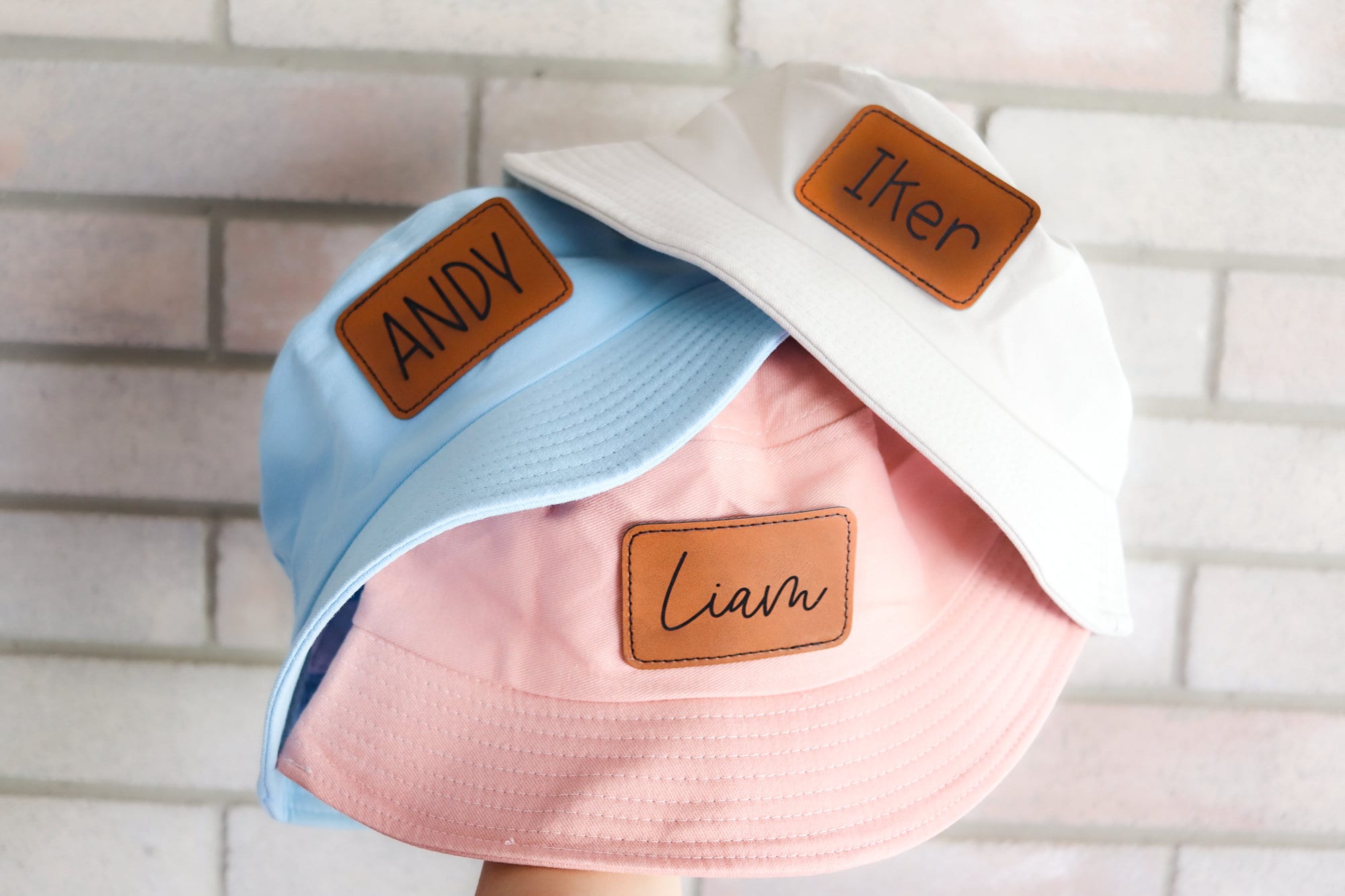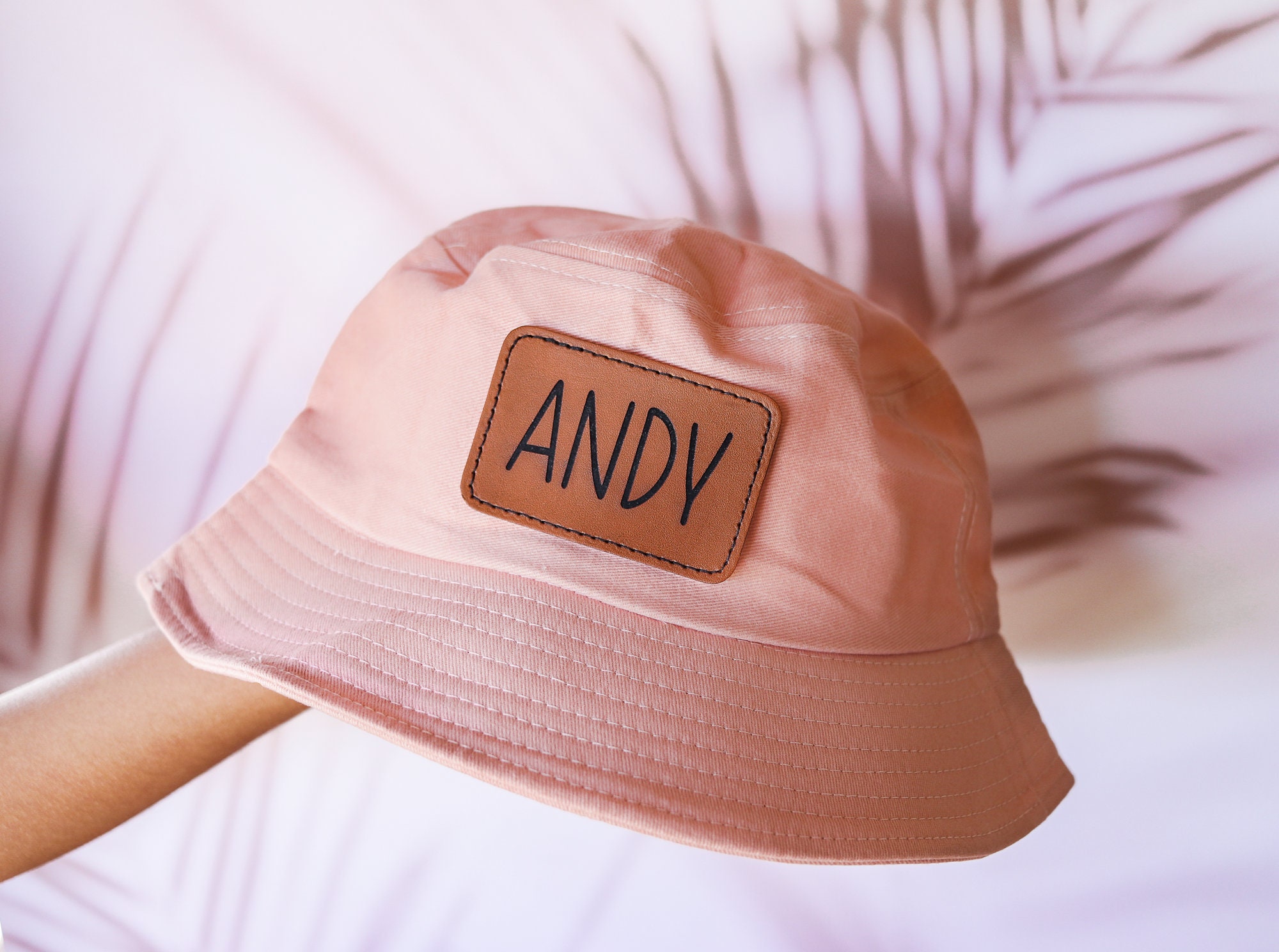 Customized leather patch bucket hats, perfect for summer!