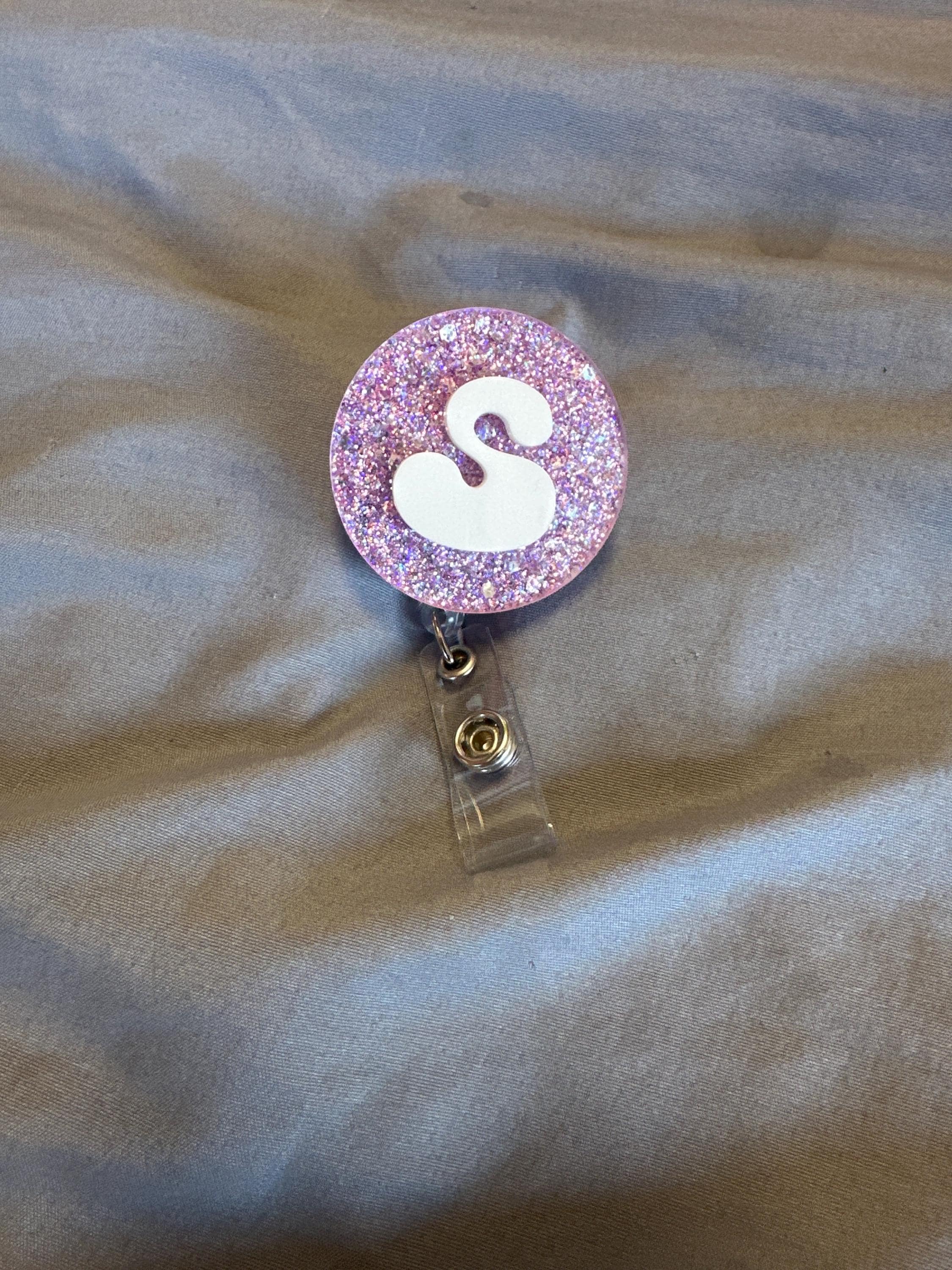 Stay stylish and functional at work or school with this custom badge reel! Each badge reel is personalized with your chosen initial in a fun font style and comes with your preferred background and font color options.