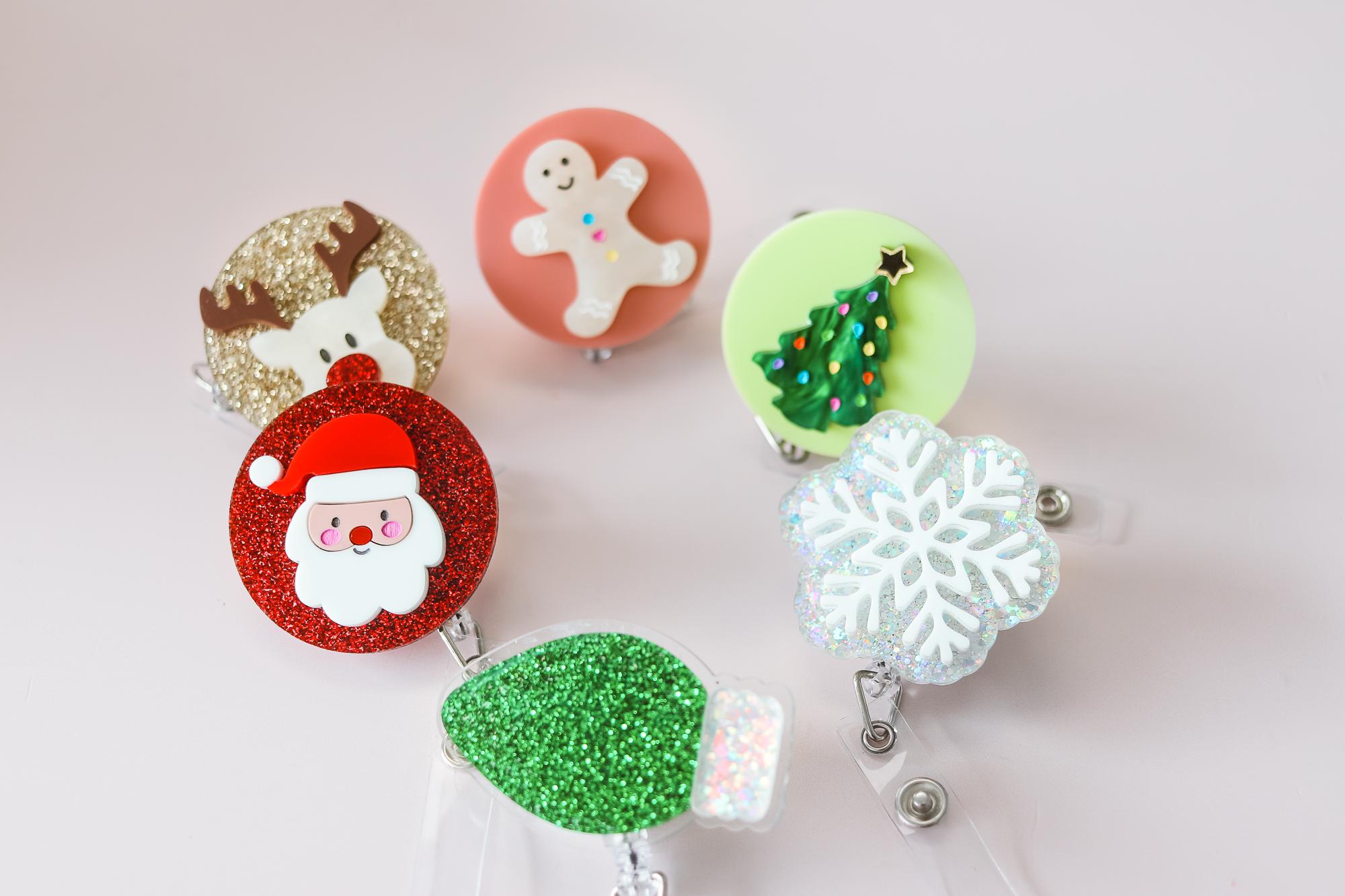 Spread festive cheer at work with these adorable custom name badge clips! Featuring charming holiday designs like Santa, reindeer, and gingerbread, christmas tree, these clips are perfect for adding personality to your uniform. Each badge is personalized with your name and title, making it a functional and fun accessory. Choose from three backing options—reel, magnet clip, or Velcro—for maximum convenience. Perfect for nurses, pharmacists, teachers, or anyone looking to celebrate the season in style!