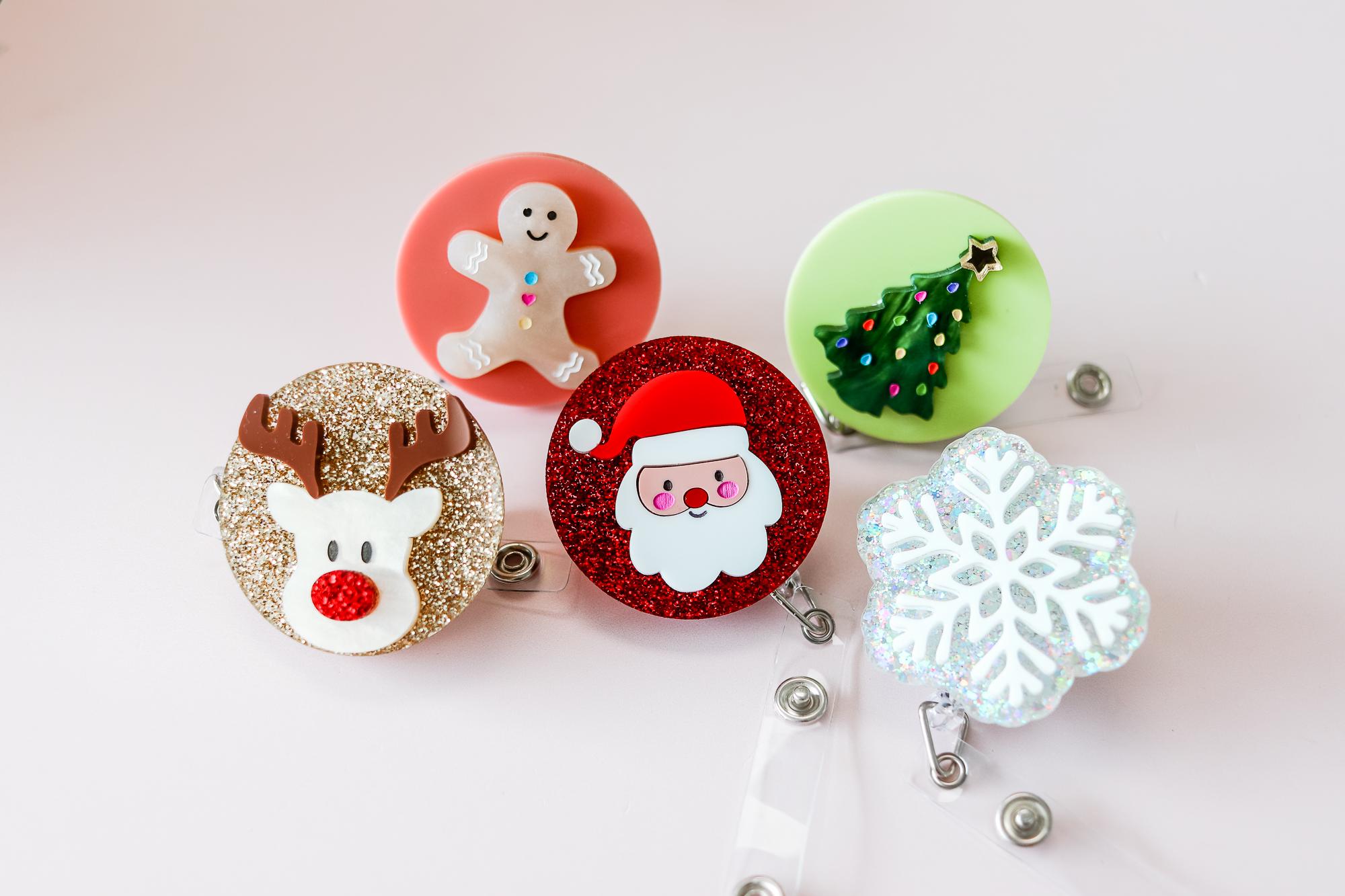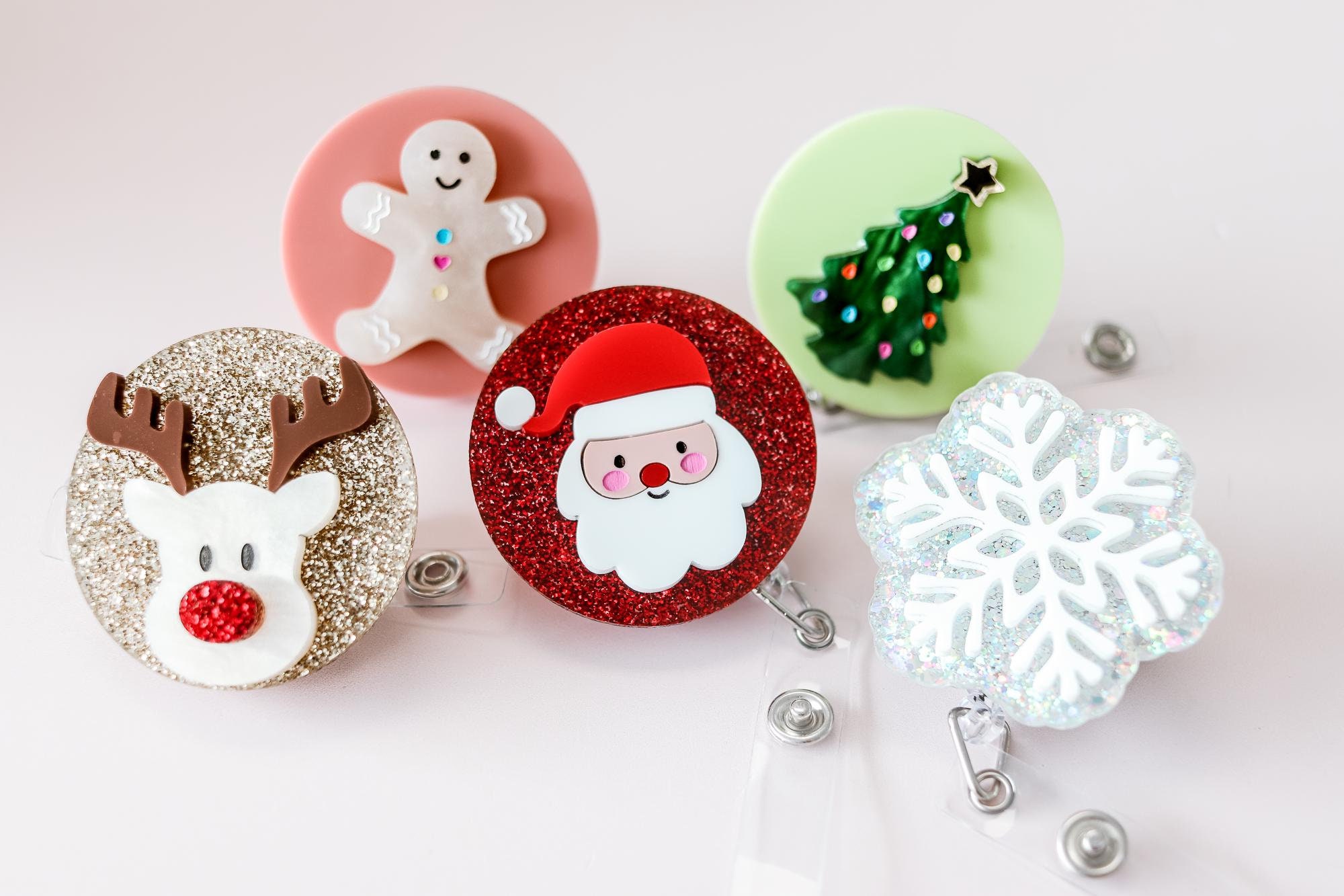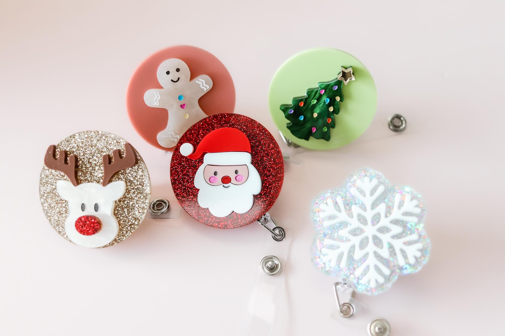 Christmas badge reel cute Christmas gifts for teachers, secret Santa gifts for coworkers, reel badge clip for nurse, retractable badge reel