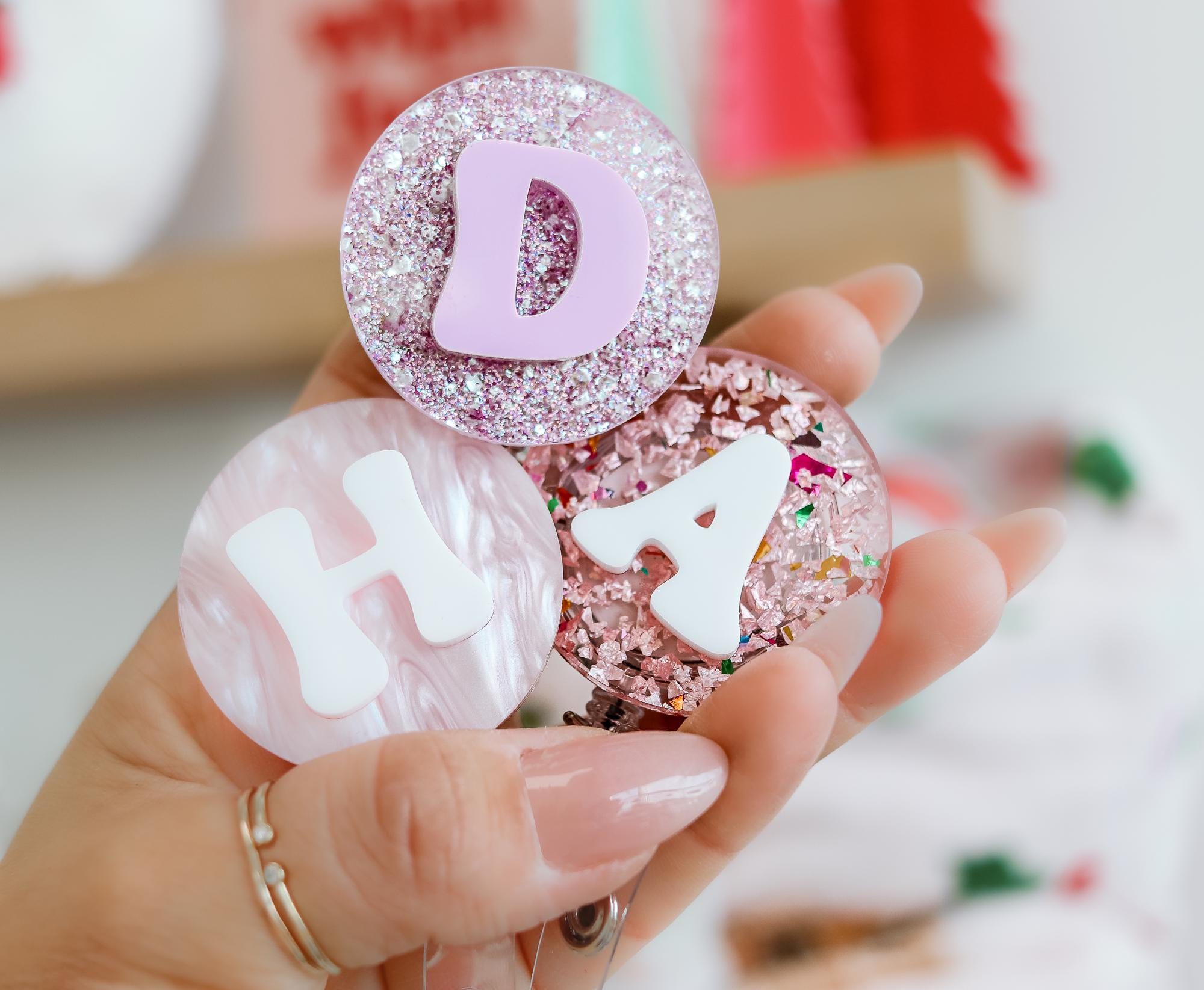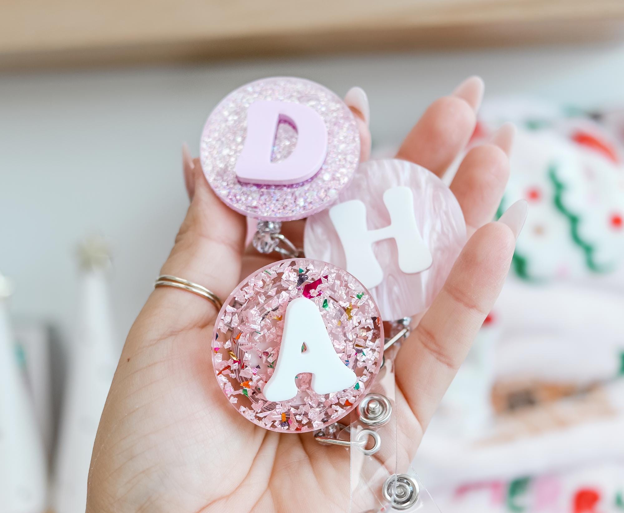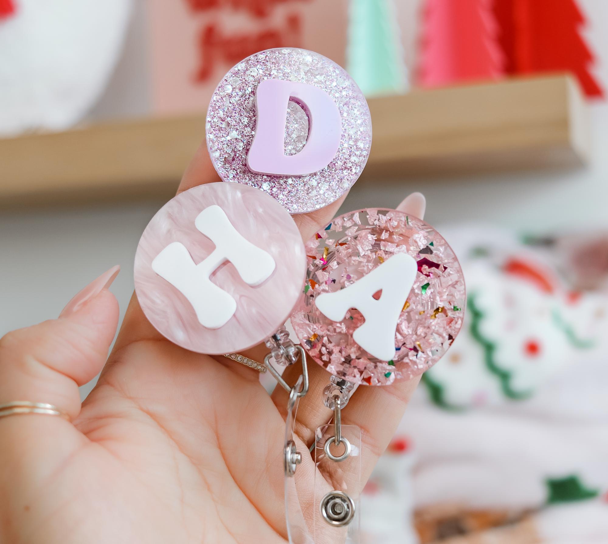 Made with high-quality acrylic, glitter, or marble-like effects, these badge reels are both durable and eye-catching. The clip is secure and easy to attach, making it perfect for ID cards, keys, or small tools. A thoughtful gift for nurses, teachers, or anyone who loves a touch of personalization!