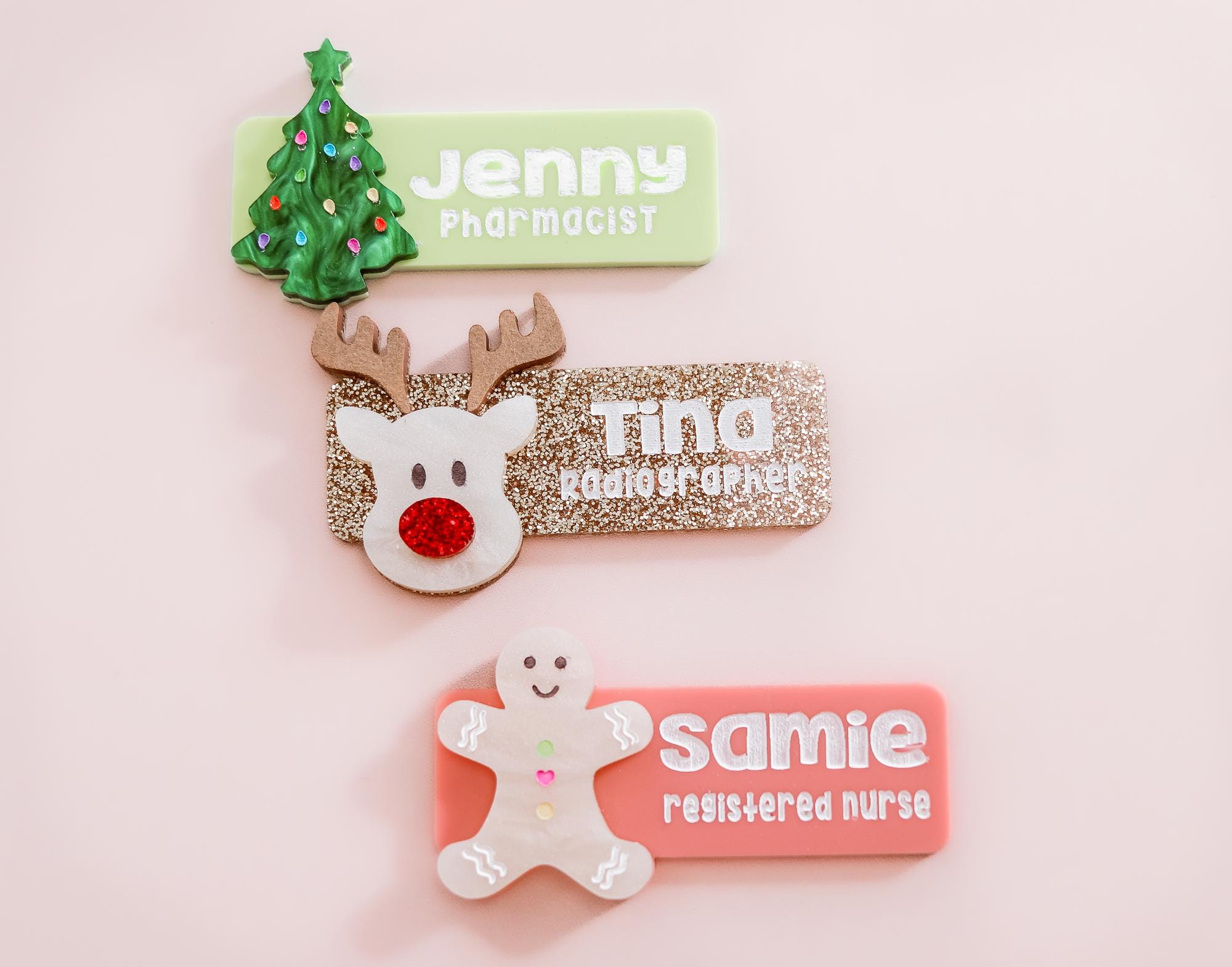 Spread festive cheer at work with these adorable custom name badge clips! Featuring charming holiday designs like Santa, reindeer, and gingerbread, christmas tree, these clips are perfect for adding personality to your uniform. Each badge is personalized with your name and title, making it a functional and fun accessory. Choose from three backing options—reel, magnet clip, or Velcro—for maximum convenience. Perfect for nurses, pharmacists, teachers, or anyone looking to celebrate the season in style!