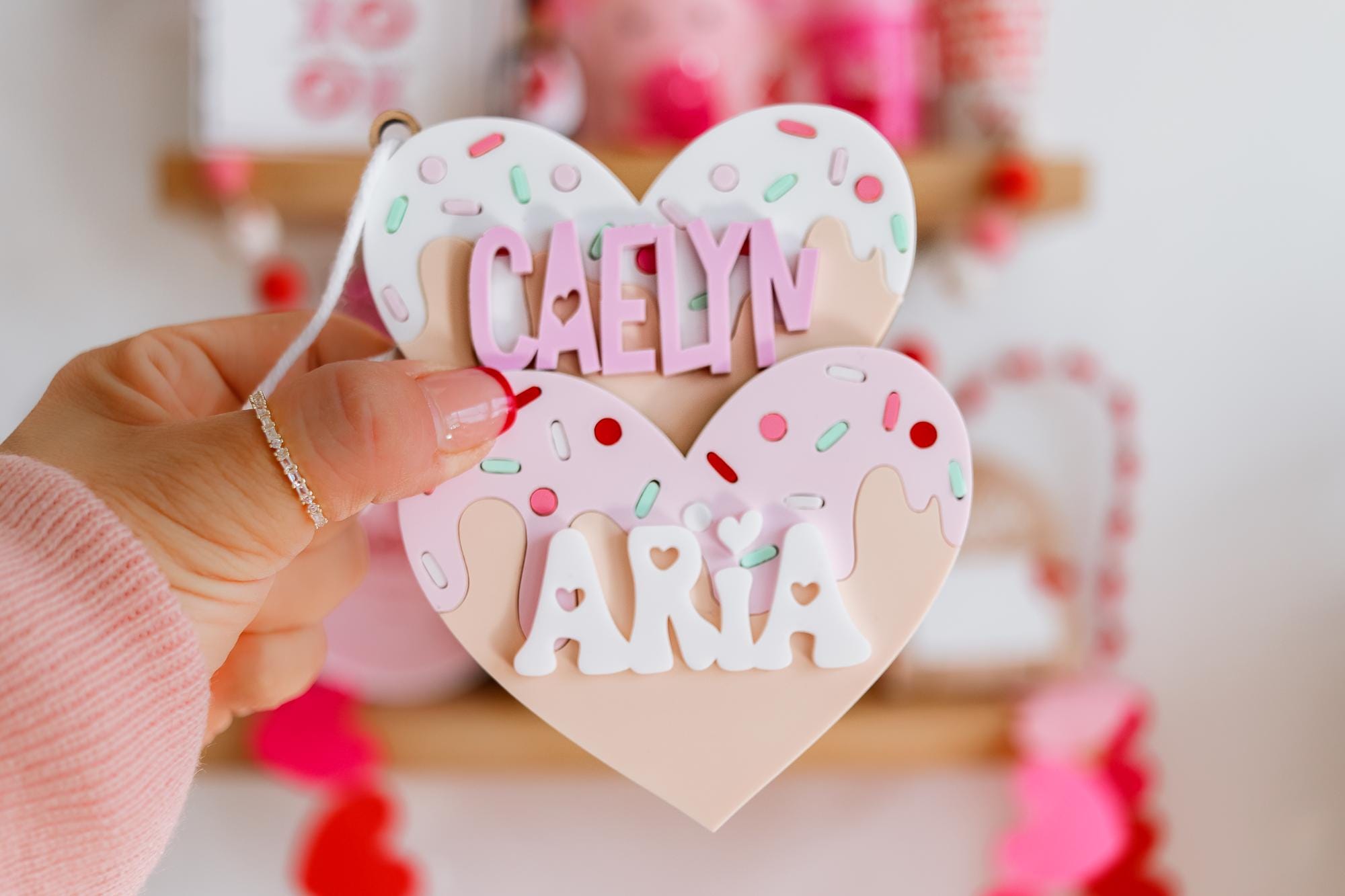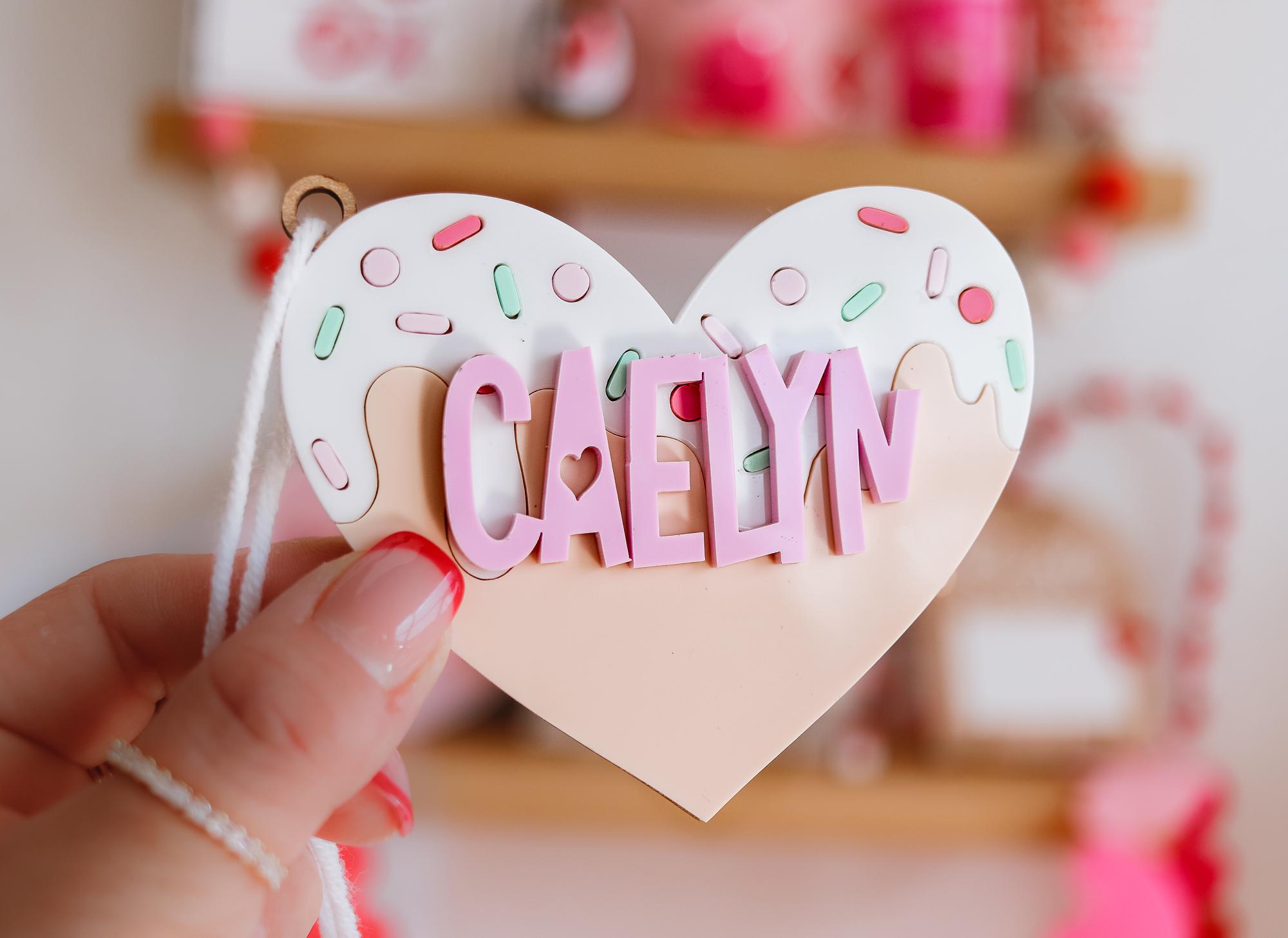 Personalized Valentines Name tag, ice cream name tag, donut name tag, heart shape name tag, cute backpack tag, valentines gift for kids, tag