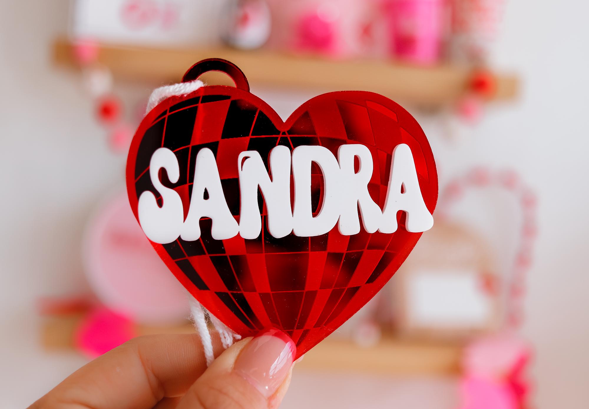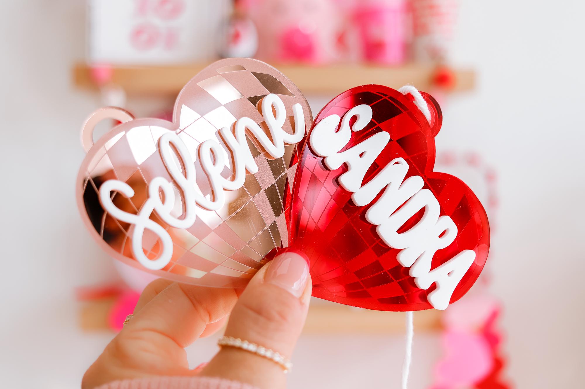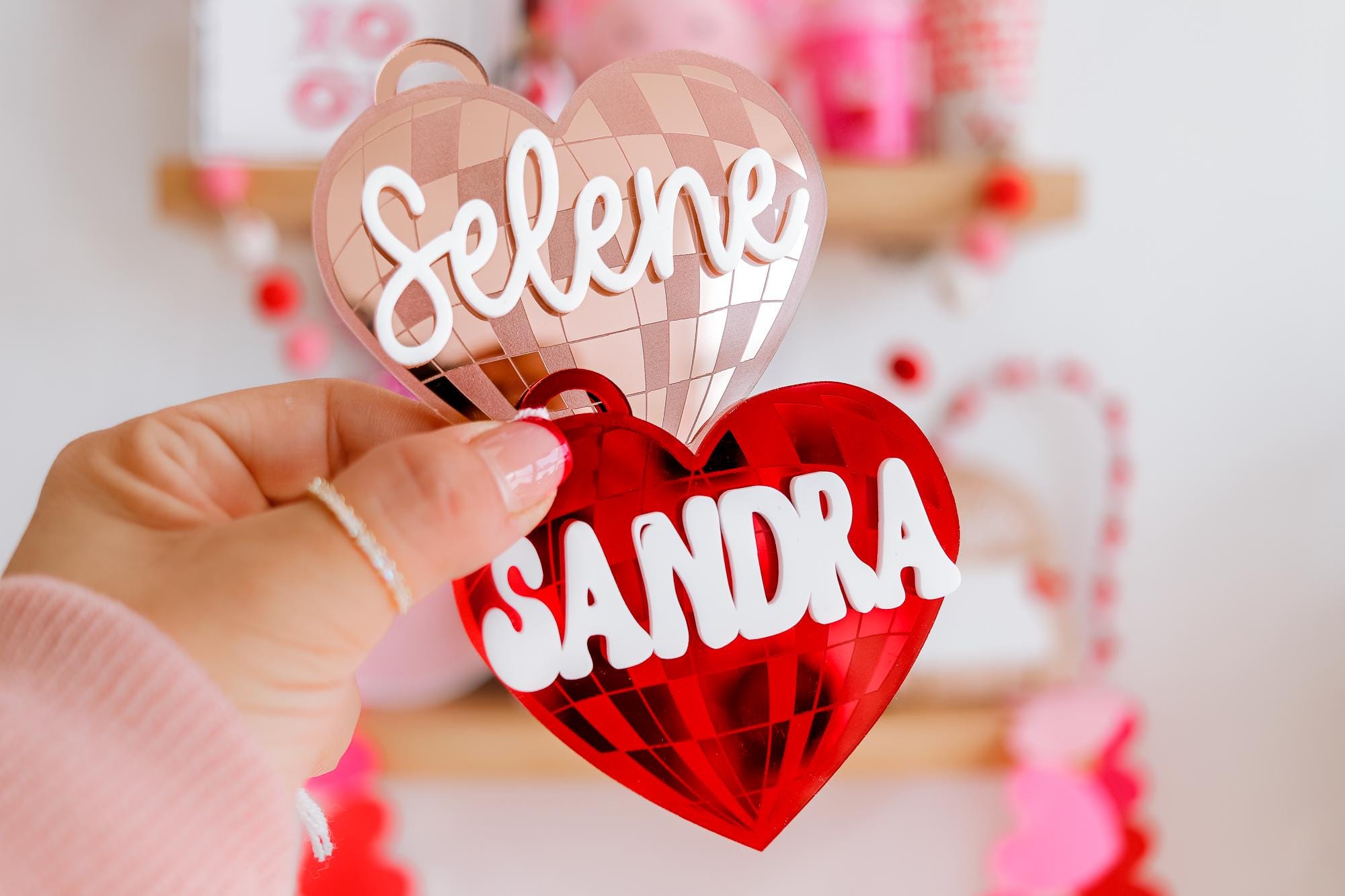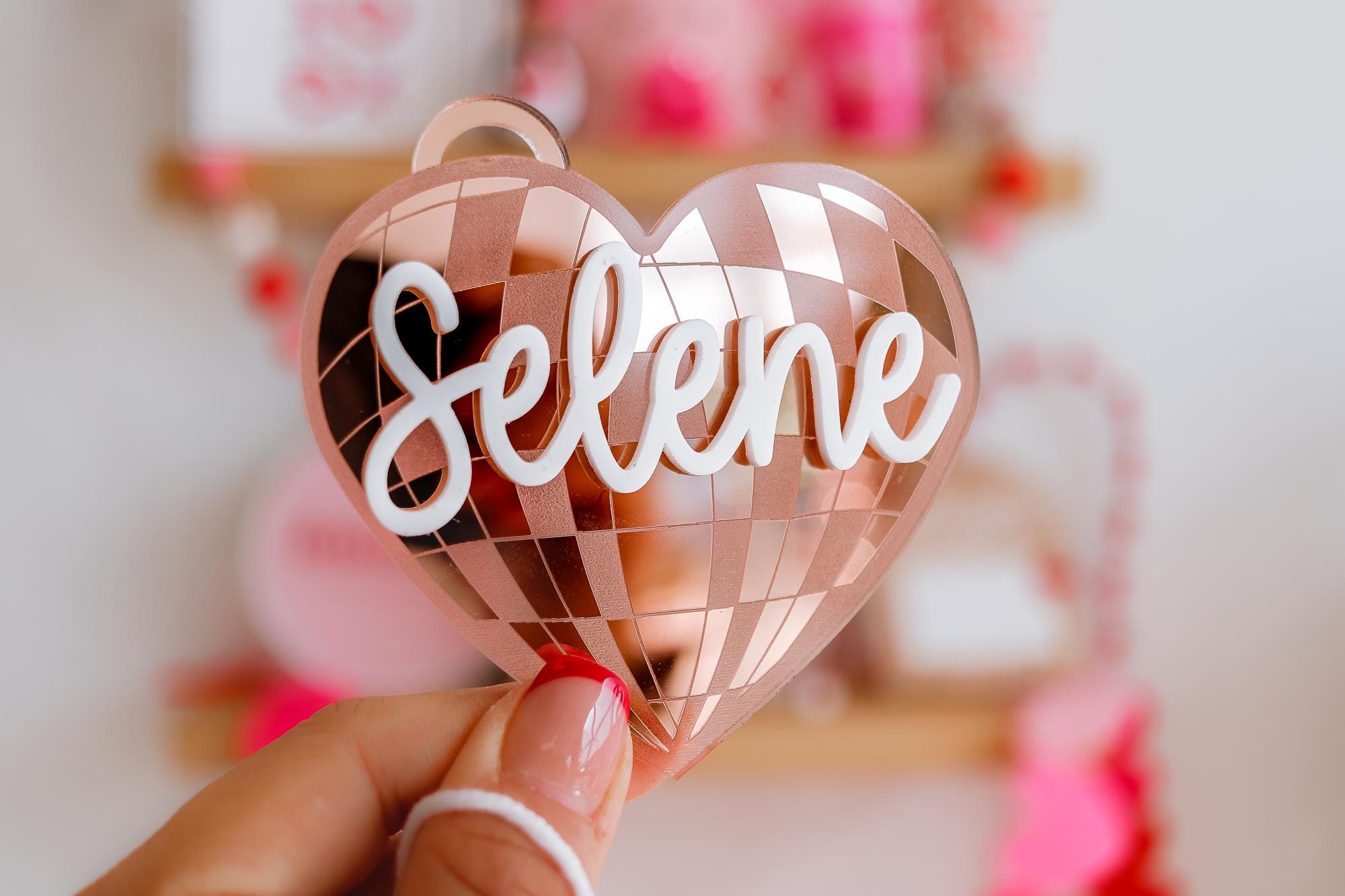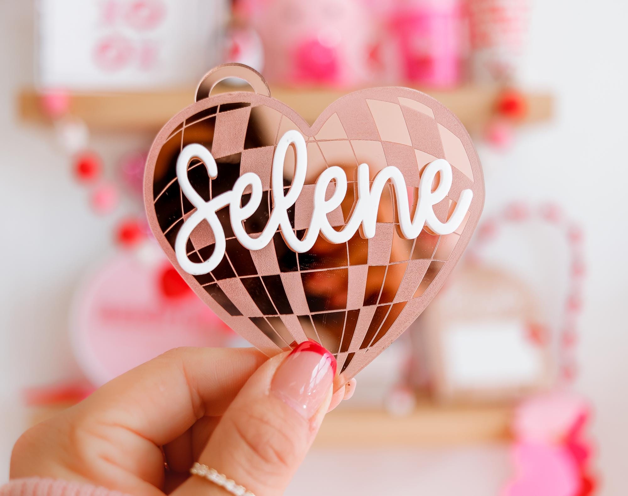 Heart disco ball tag, valentines name tags for teen, valentines gift for teen valentines gift for woman, name tag, Disco ball tag