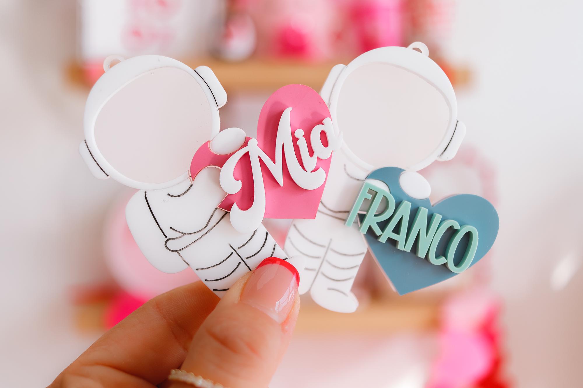 Make this Valentine’s Day out-of-this-world with these adorable astronaut-themed heart name tags! 🚀 Each tag is crafted from premium acrylic, featuring a customizable heart held by a playful astronaut. Choose your favorite heart color and font style to make it uniquely yours. Perfect for love baskets, gift tags, backpacks, or as a fun keepsake for kids. Lightweight, durable, and bursting with charm, these name tags will make any Valentine’s celebration extra special! 💕