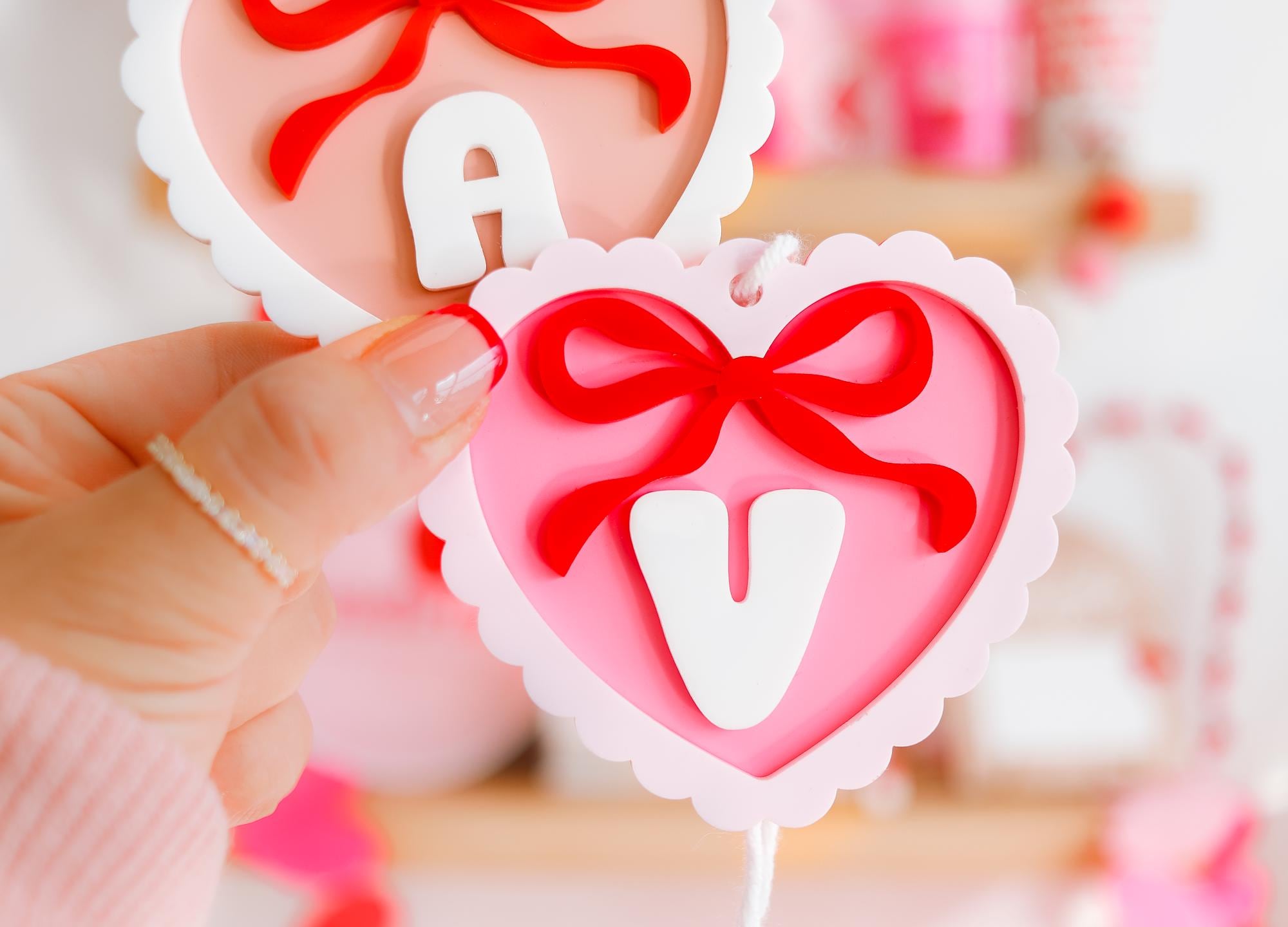 Ask a questionPersonalized Bow name Tag, Valentines bow tag, backpack heart tag, bow name keychain, heart bow tag, bow keychain, Valentine tag for girls