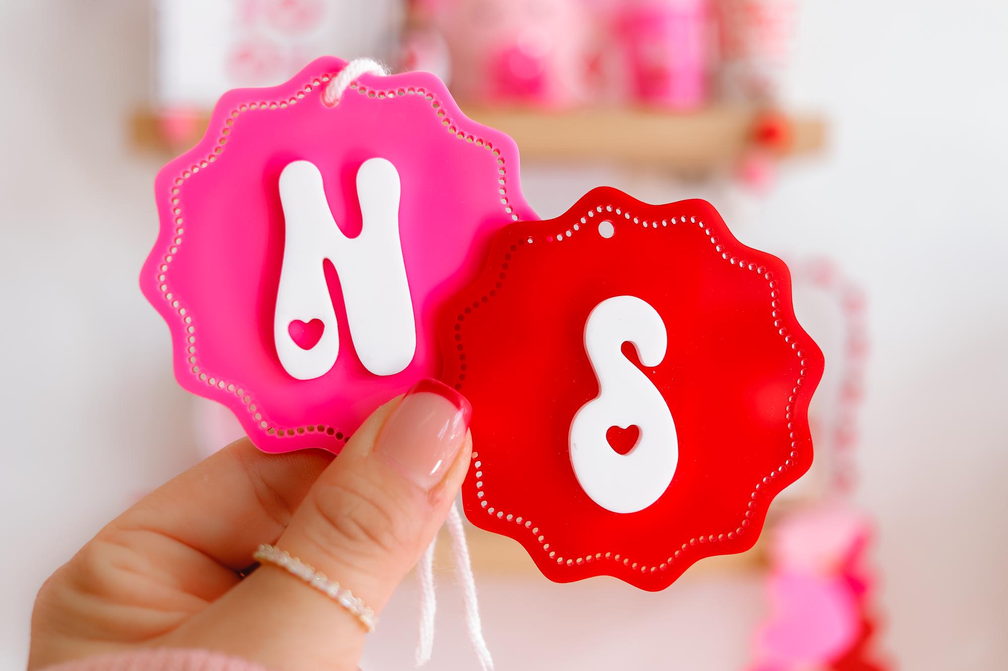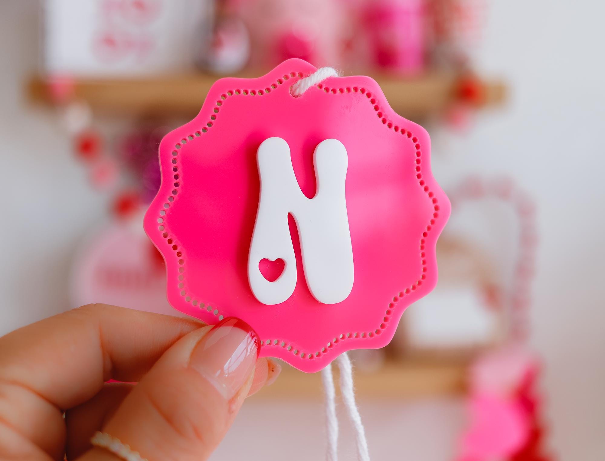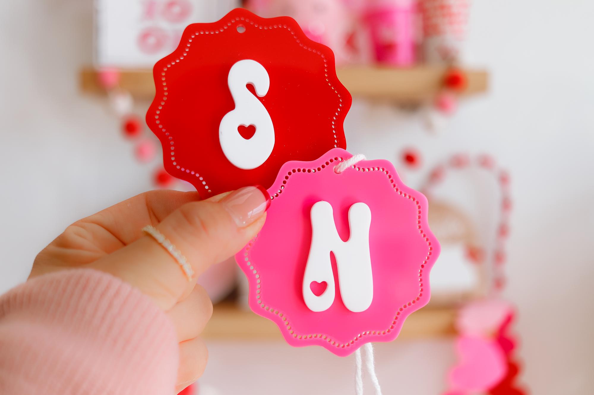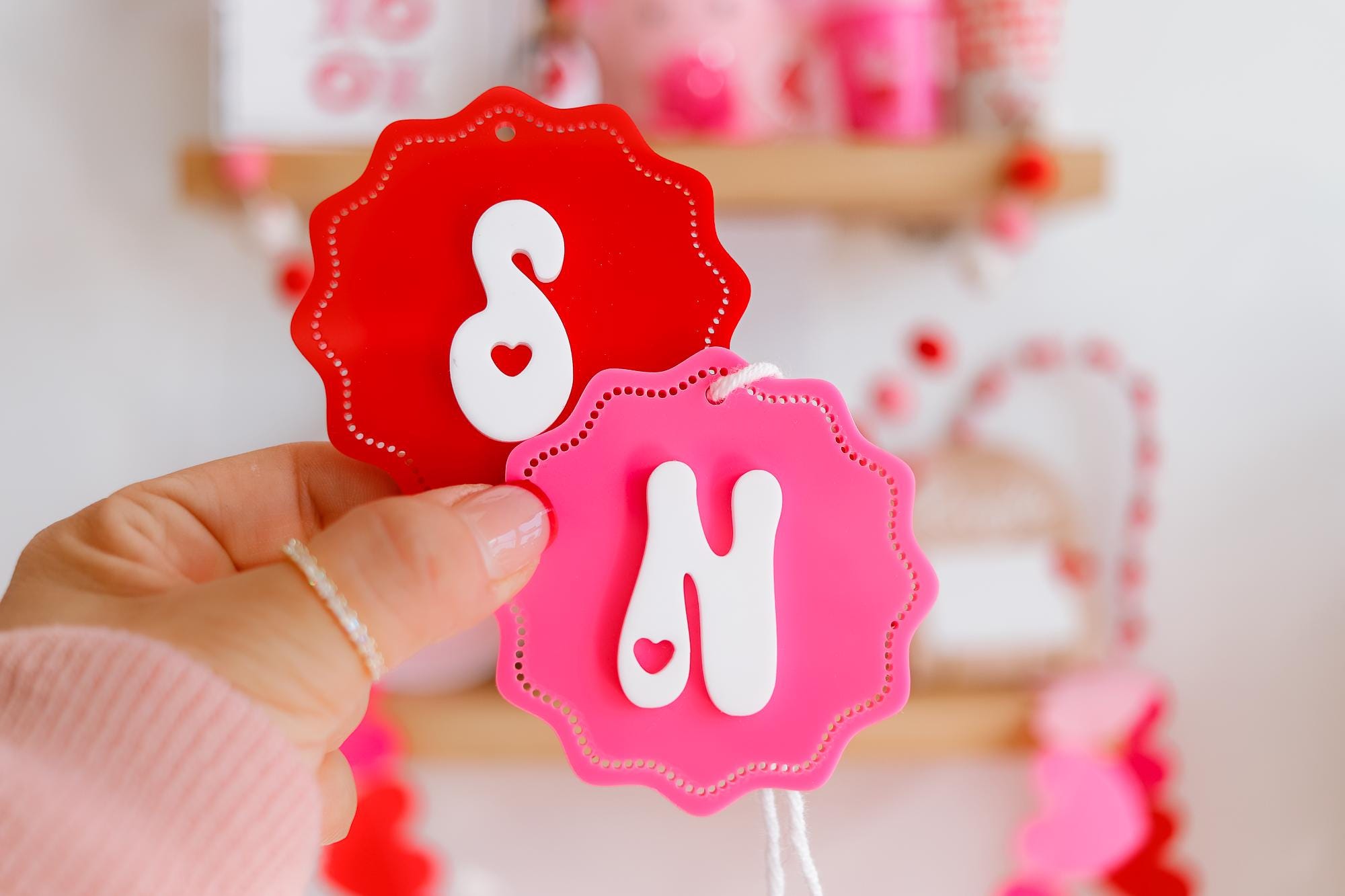 Celebrate Valentine’s Day with these stunning Initial tags! 💕 Perfect for love baskets, Valentine’s party favors, or personalized gifts, each tag is crafted from high-quality acrylic with a vibrant color design. Customizable with your chosen initial or name, these tags are ideal for backpacks, gift toppers, or as a sweet keepsake. Lightweight and durable, they add a thoughtful and festive touch to any Valentine’s celebration! 🎀