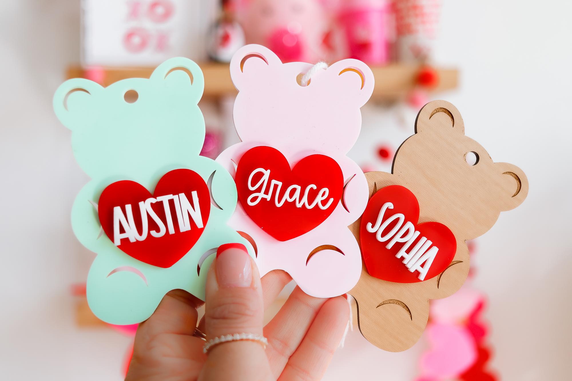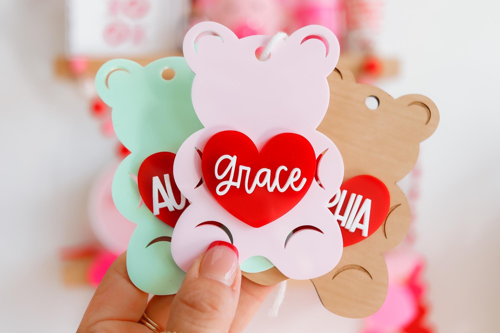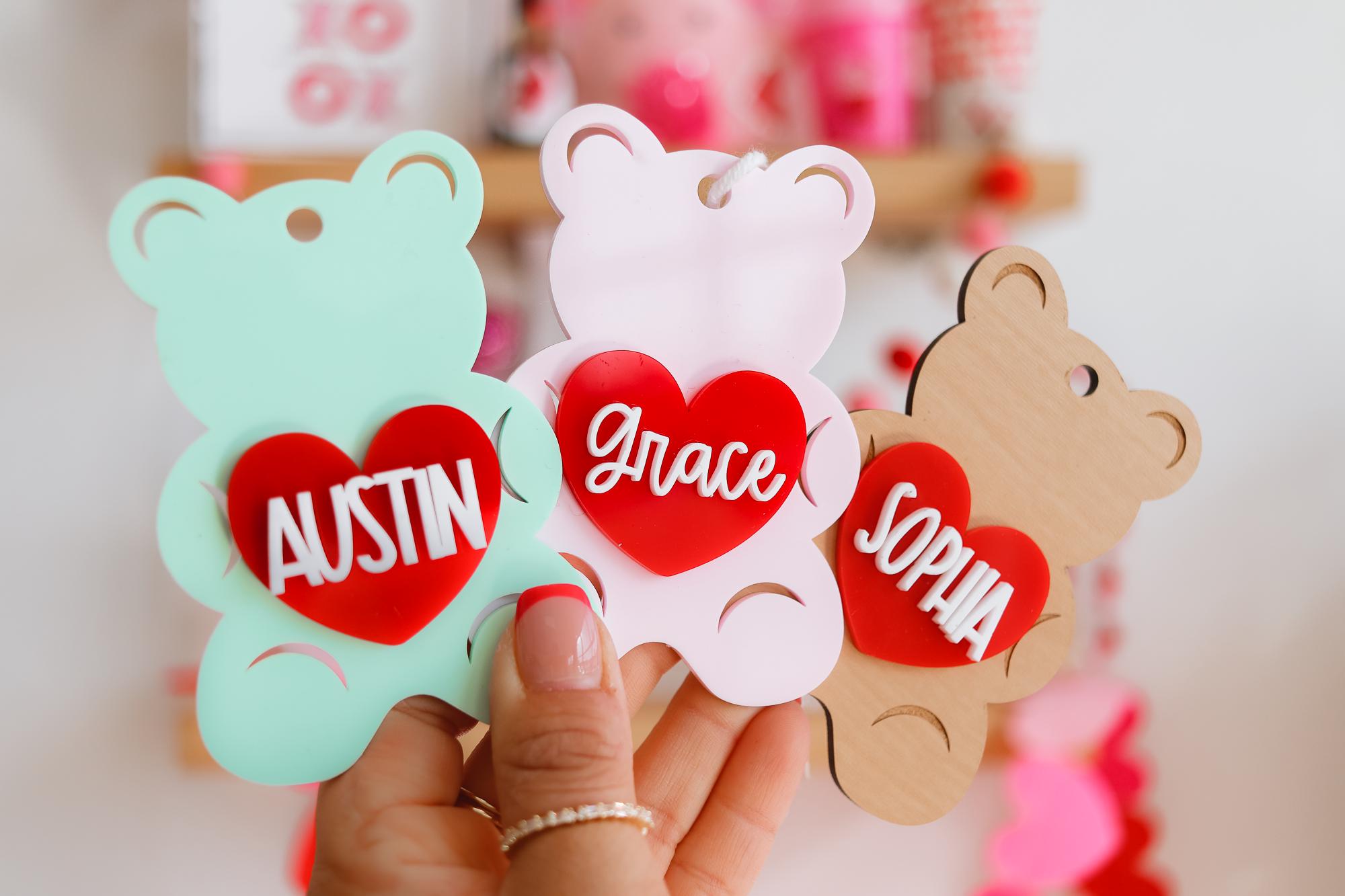 Ask a questionBear name tag, Valentines name tag, Gummy Bear Tag, Valentine Name Tag, Gummy Bear valentines tag, valentines name tag for boys