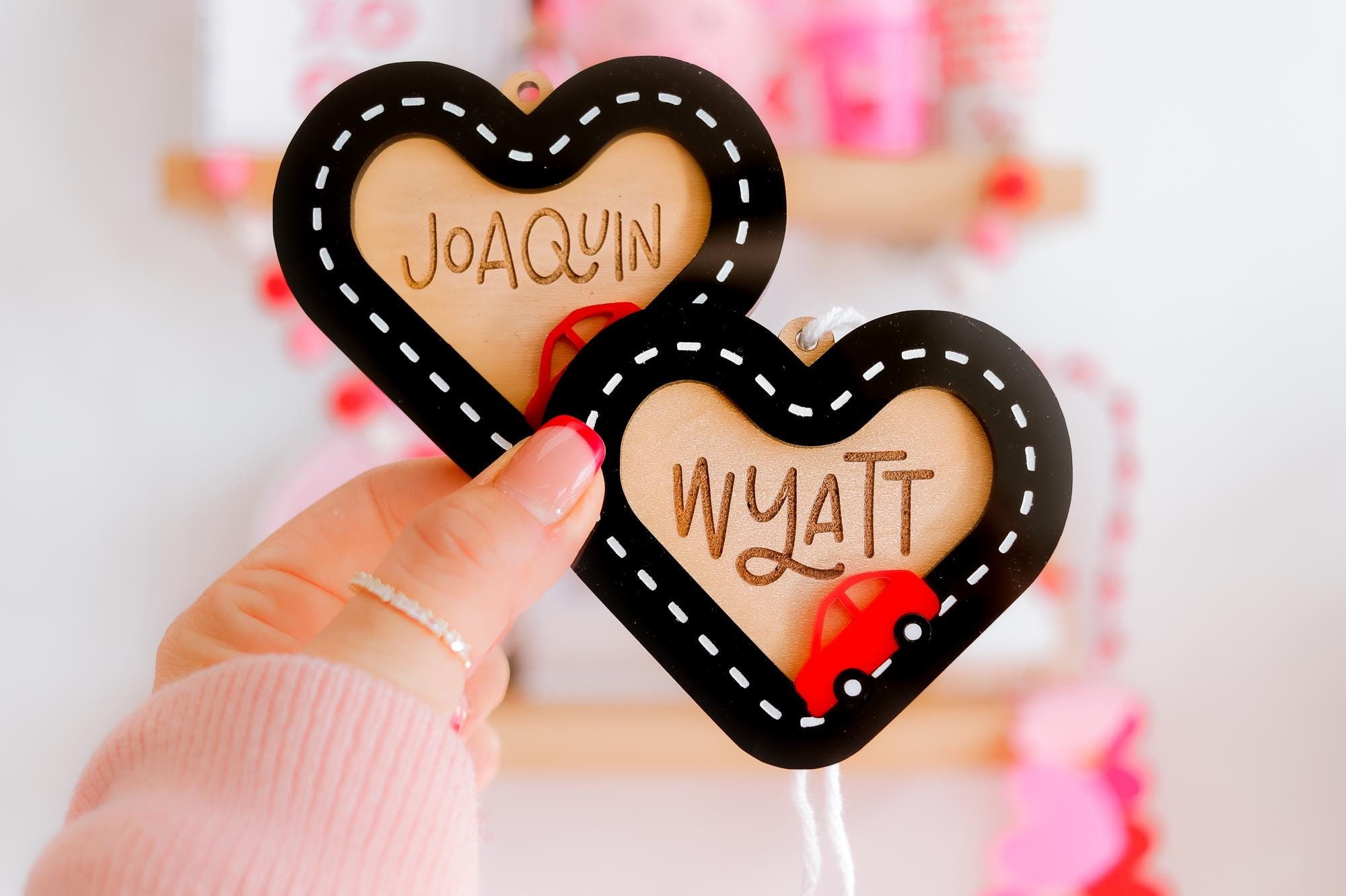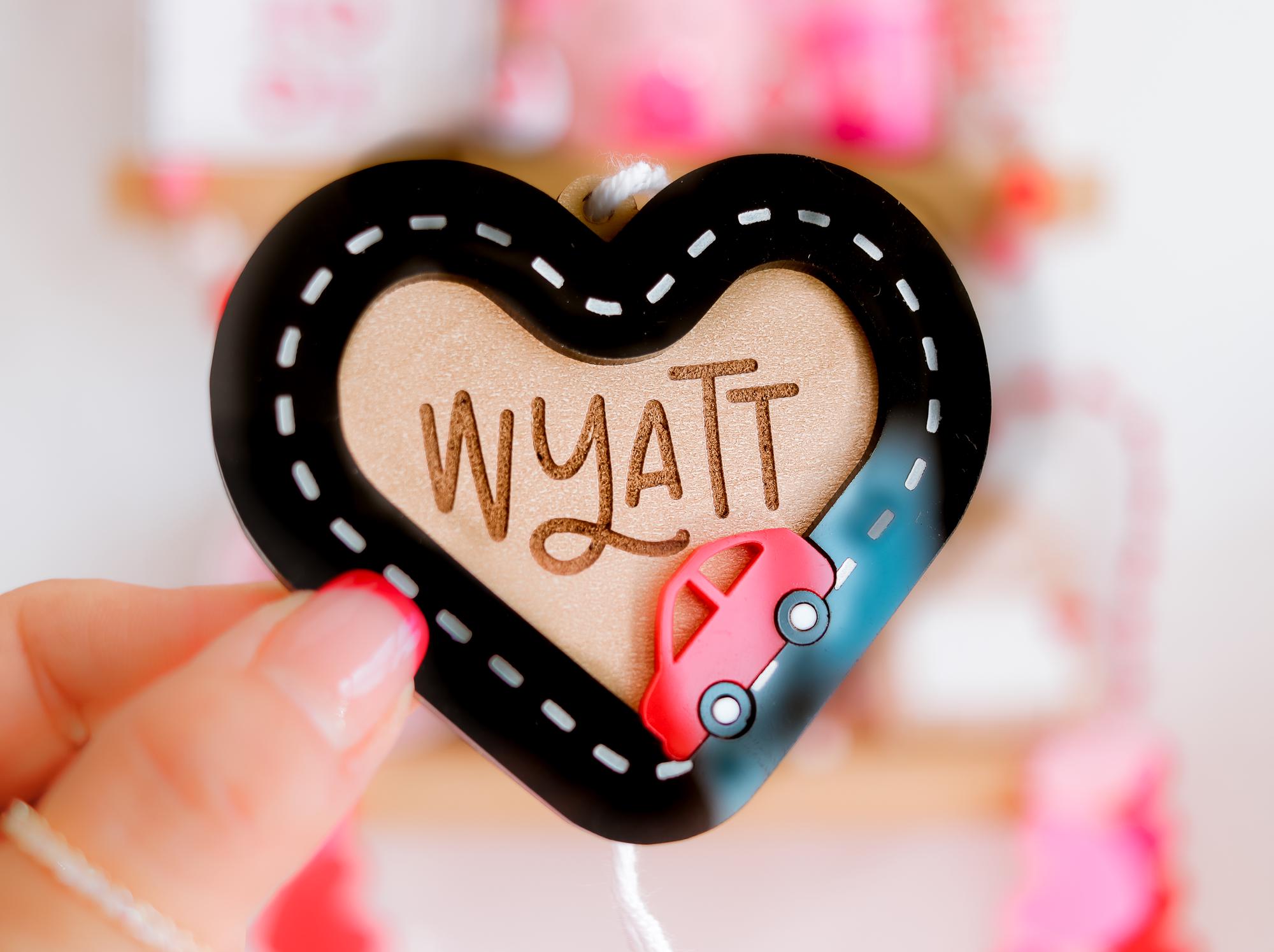 Ask a questionValentine's name tag for boys, boy name tag, Backpack Name Keychain Personalized Custom Name Plate Diaper Bag Tag for Boy Back to School tag