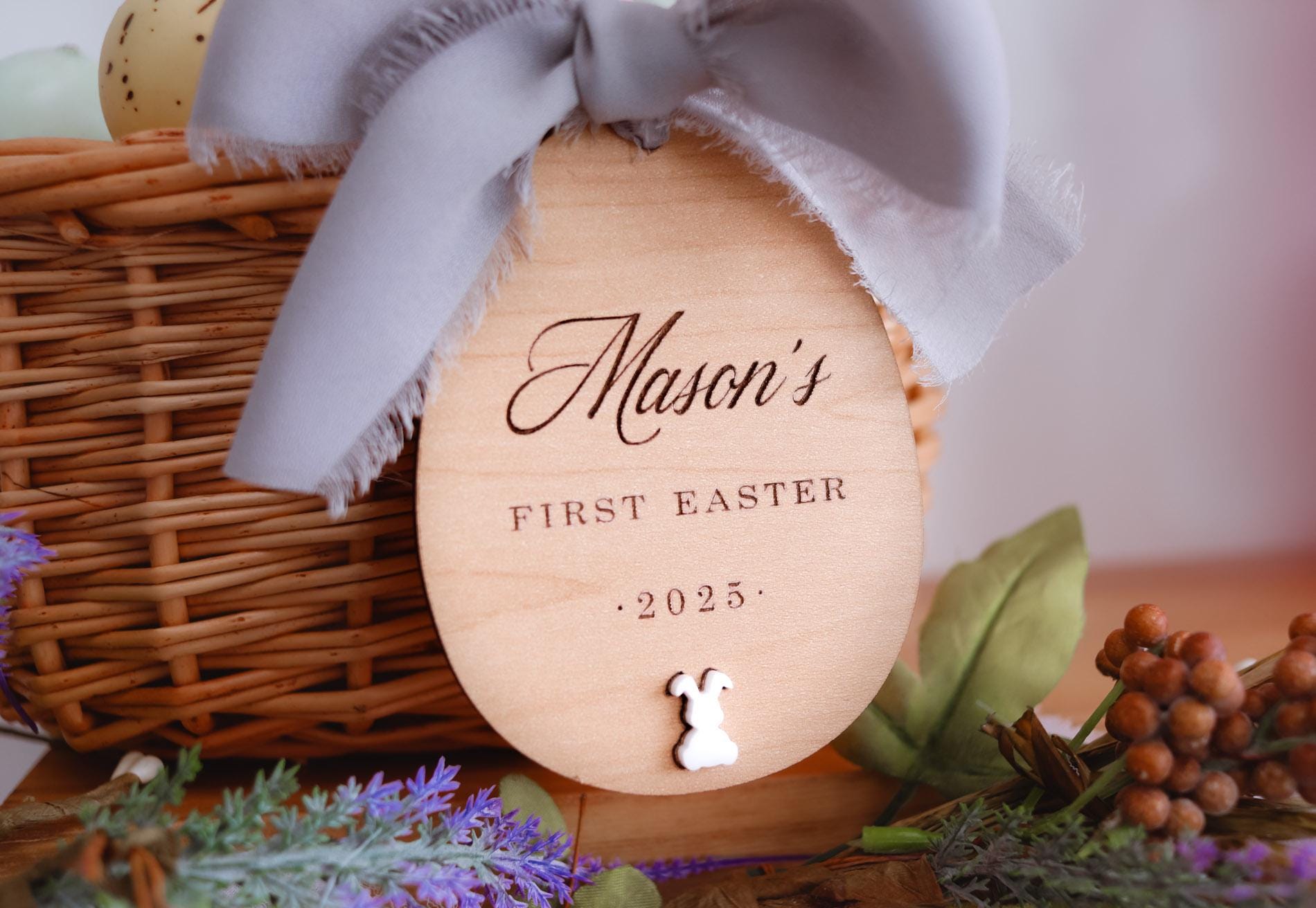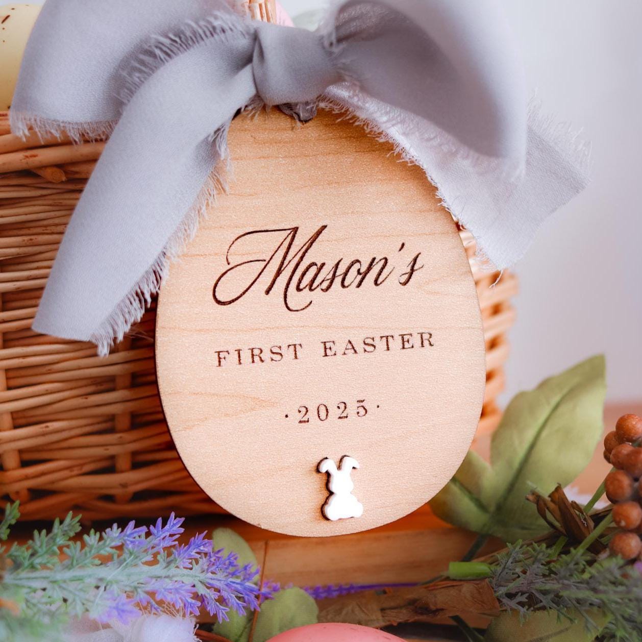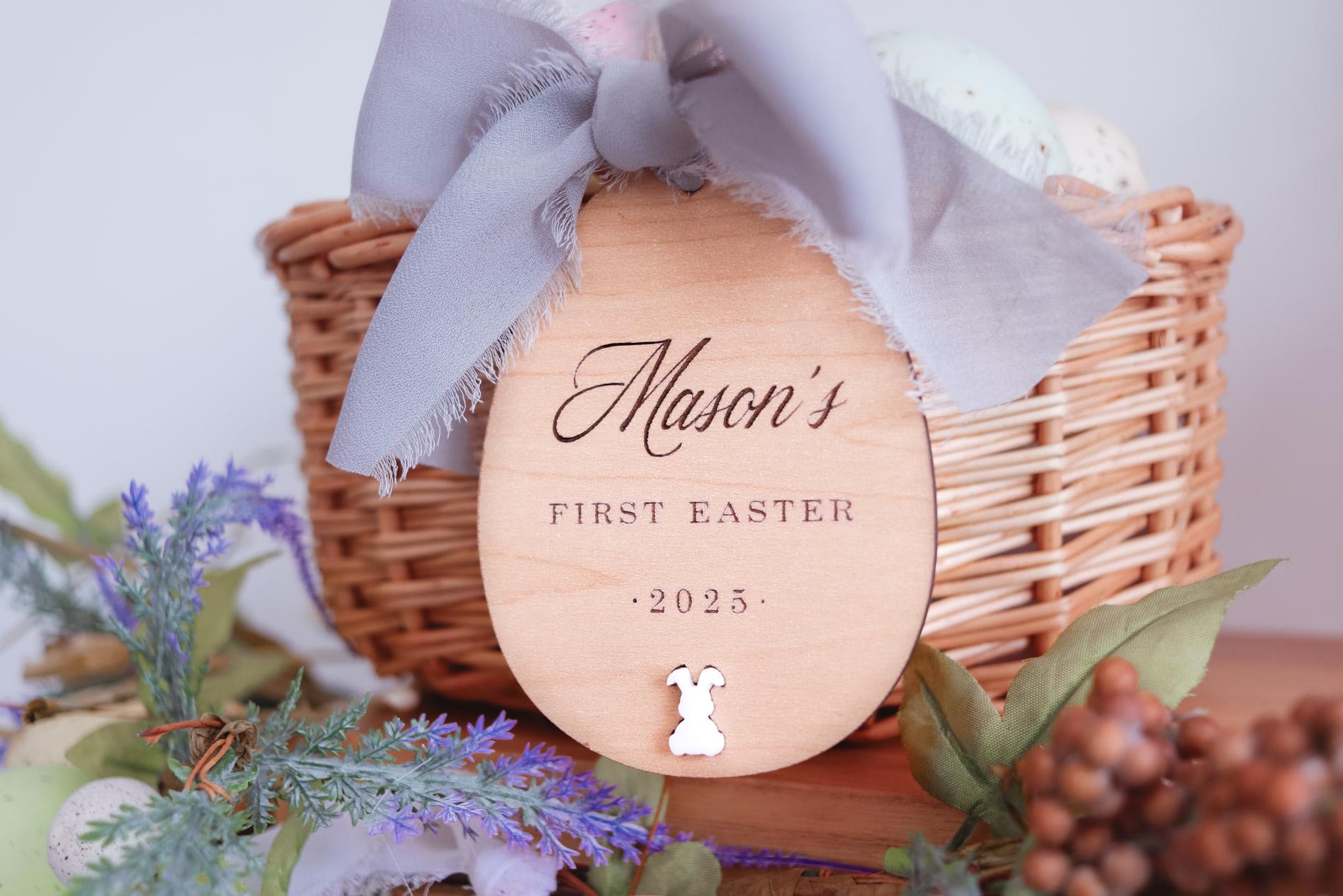 Make Easter extra special with a personalized wooden name tag for your little one's basket! Perfect for baby’s first Easter, these custom tags add a unique touch to Easter gifts and keepsakes. Choose your font and finish to match your style. A beautiful addition to any Easter basket that can be cherished for years!