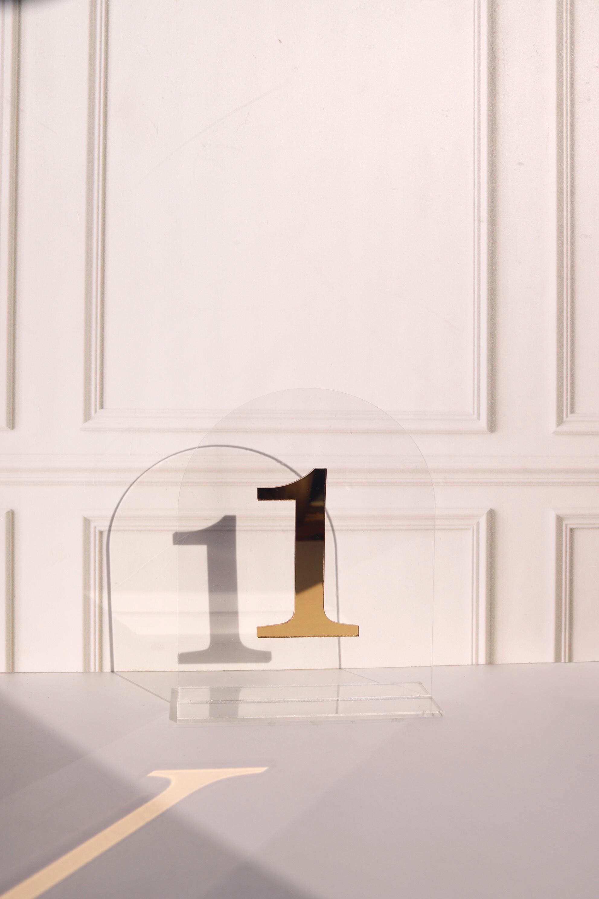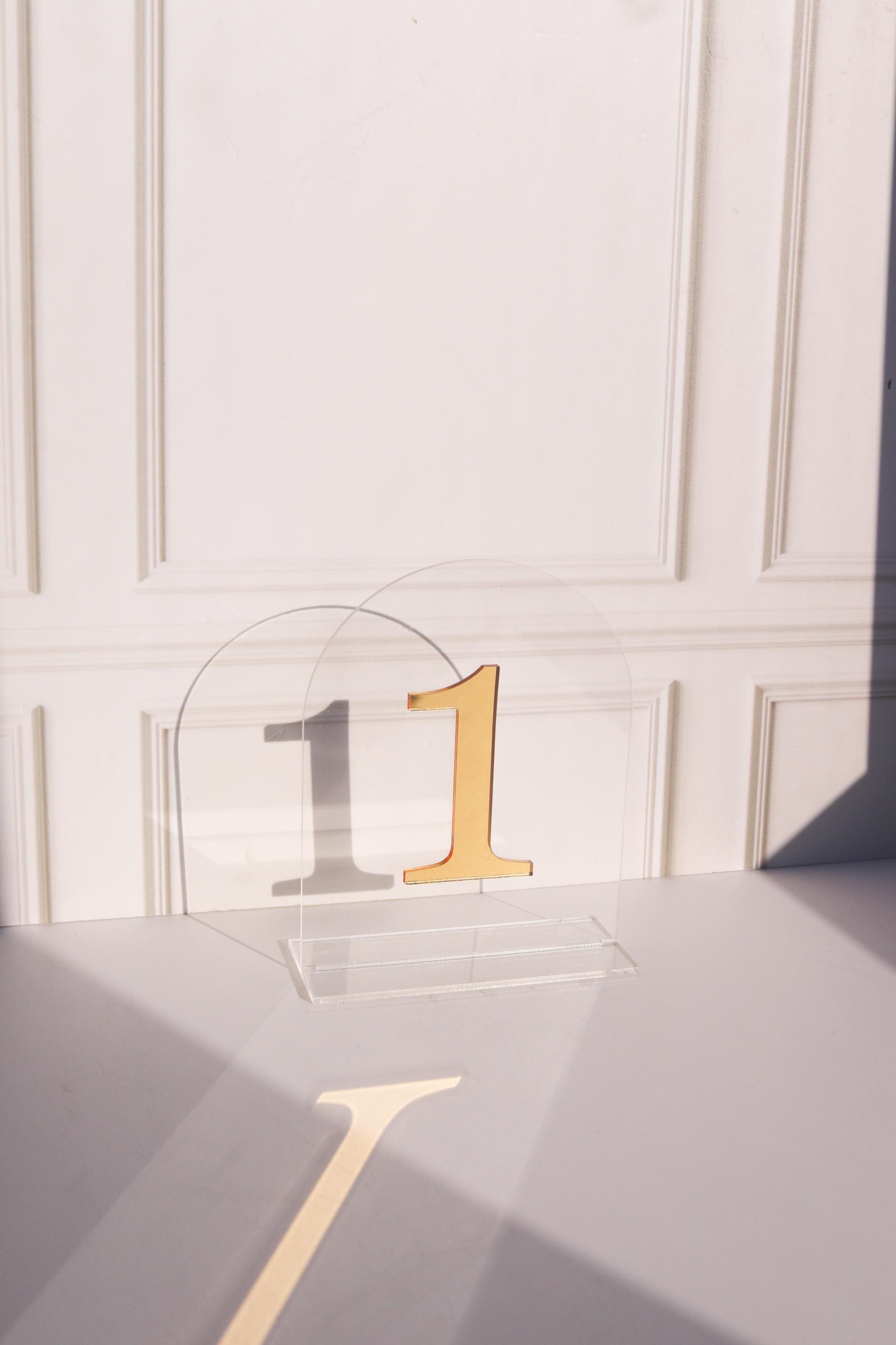 ✨ Modern Acrylic Table Numbers with Base – Clear with Mirror Gold Number