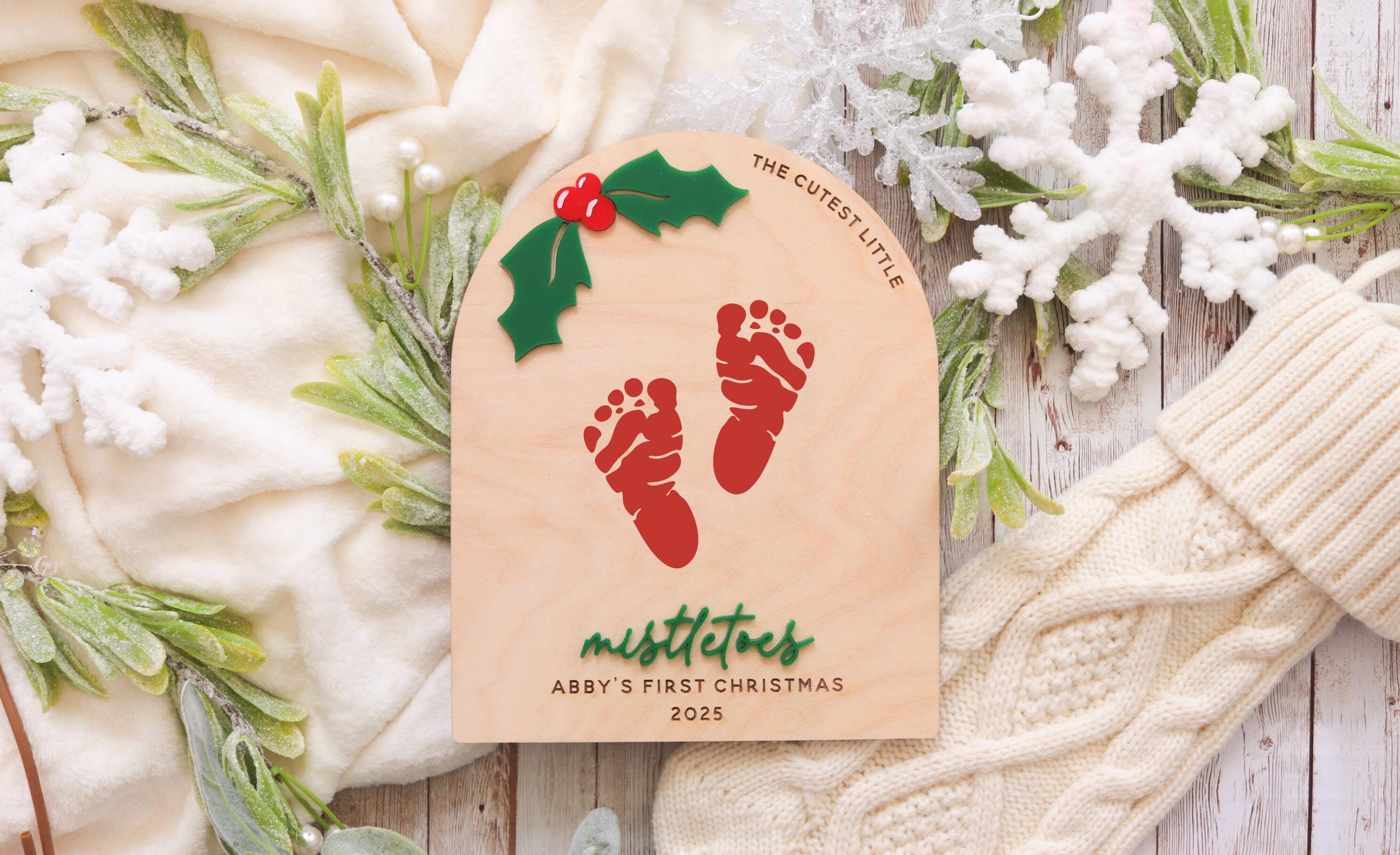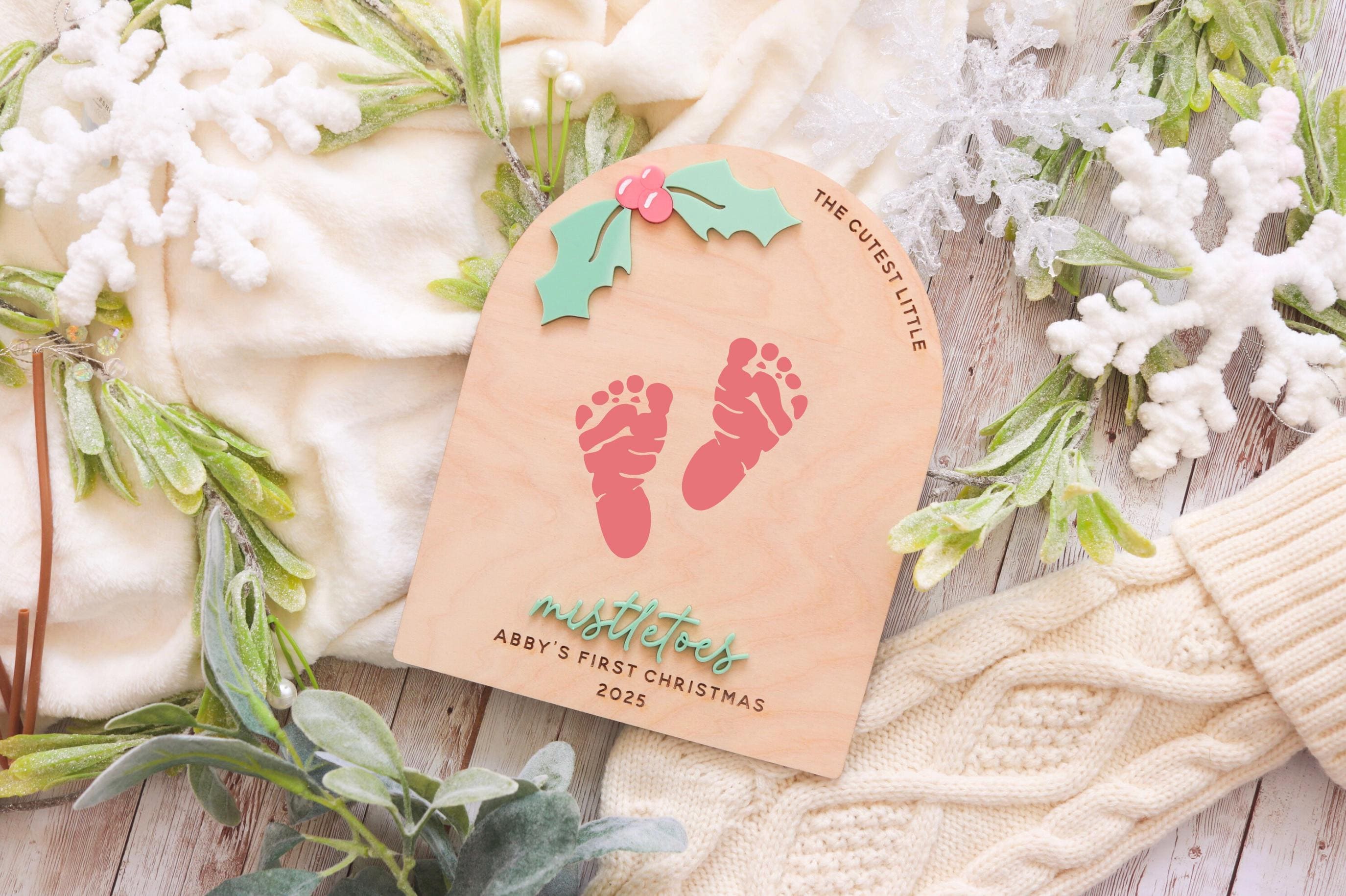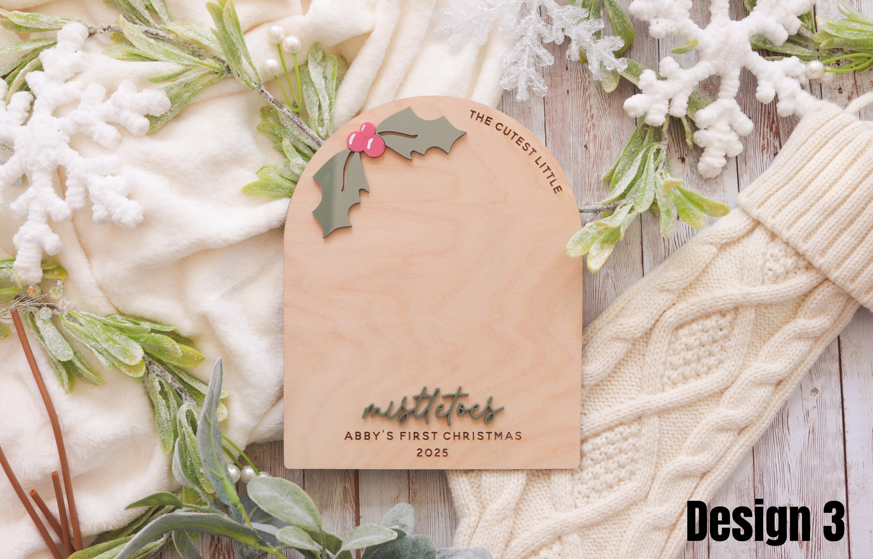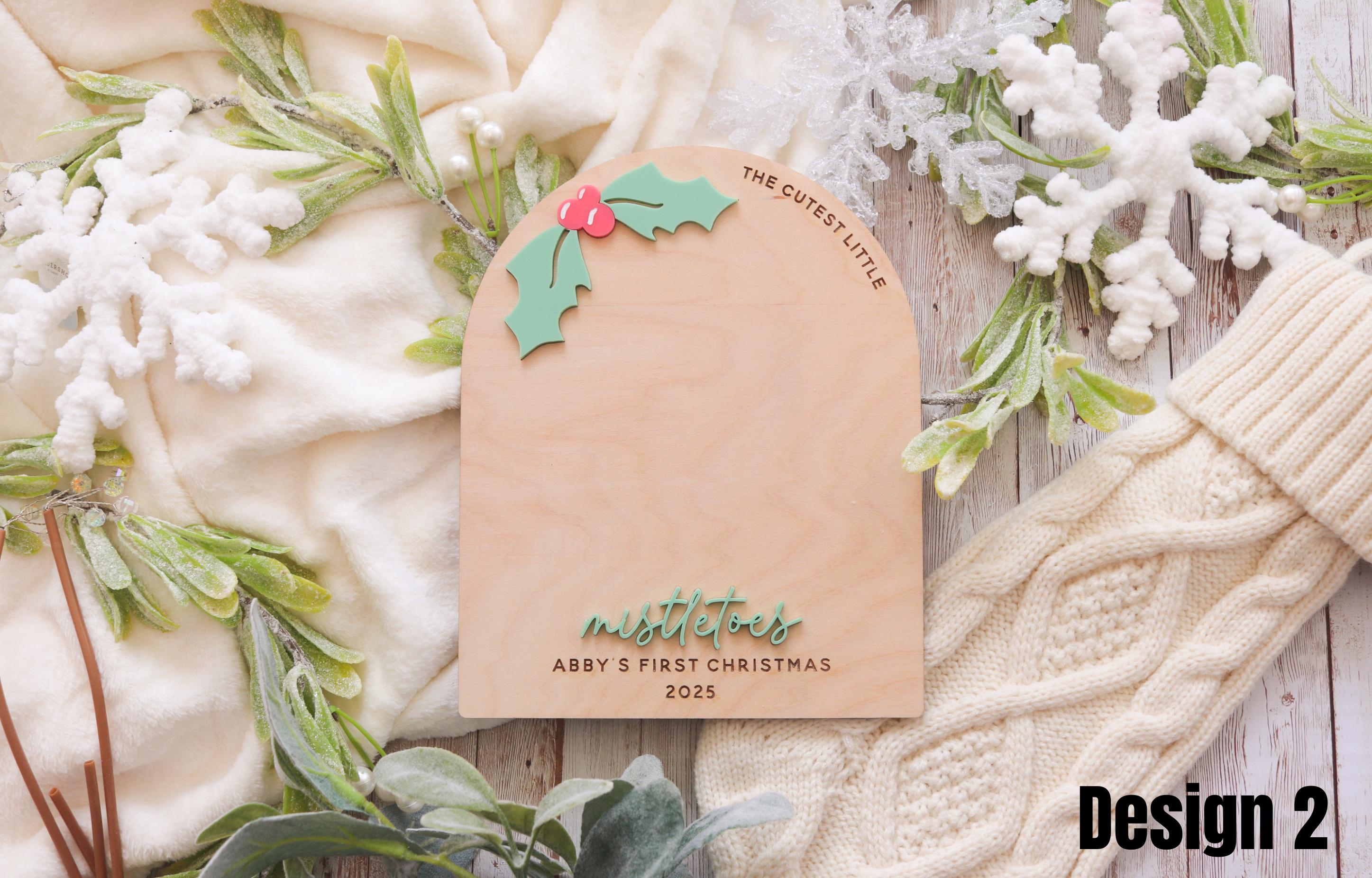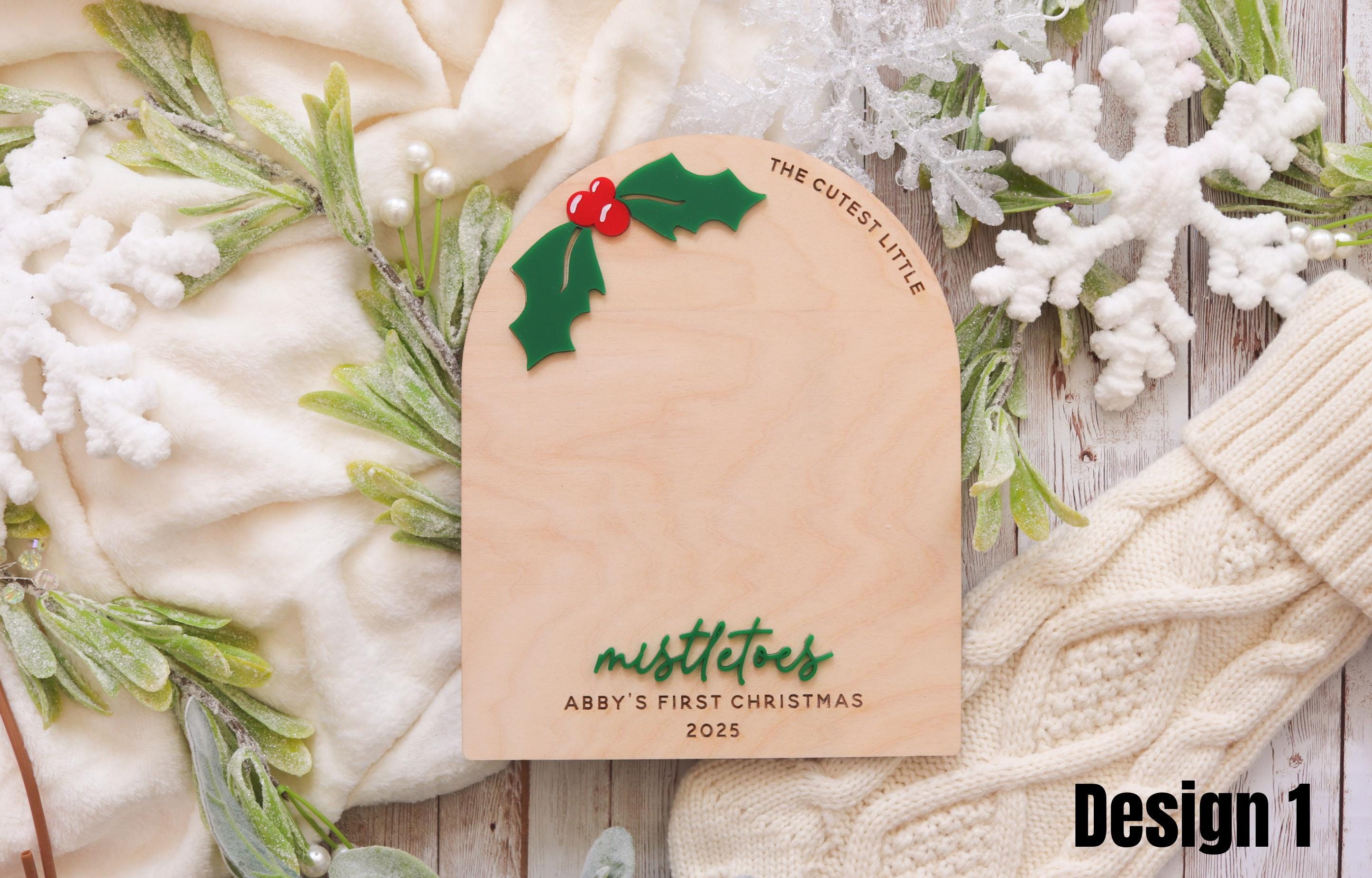 Choose from three unique designs, each featuring festive holiday details, from mistletoe accents to cozy winter touches. Personalize your sign with your baby’s name and year to make it truly one-of-a-kind.