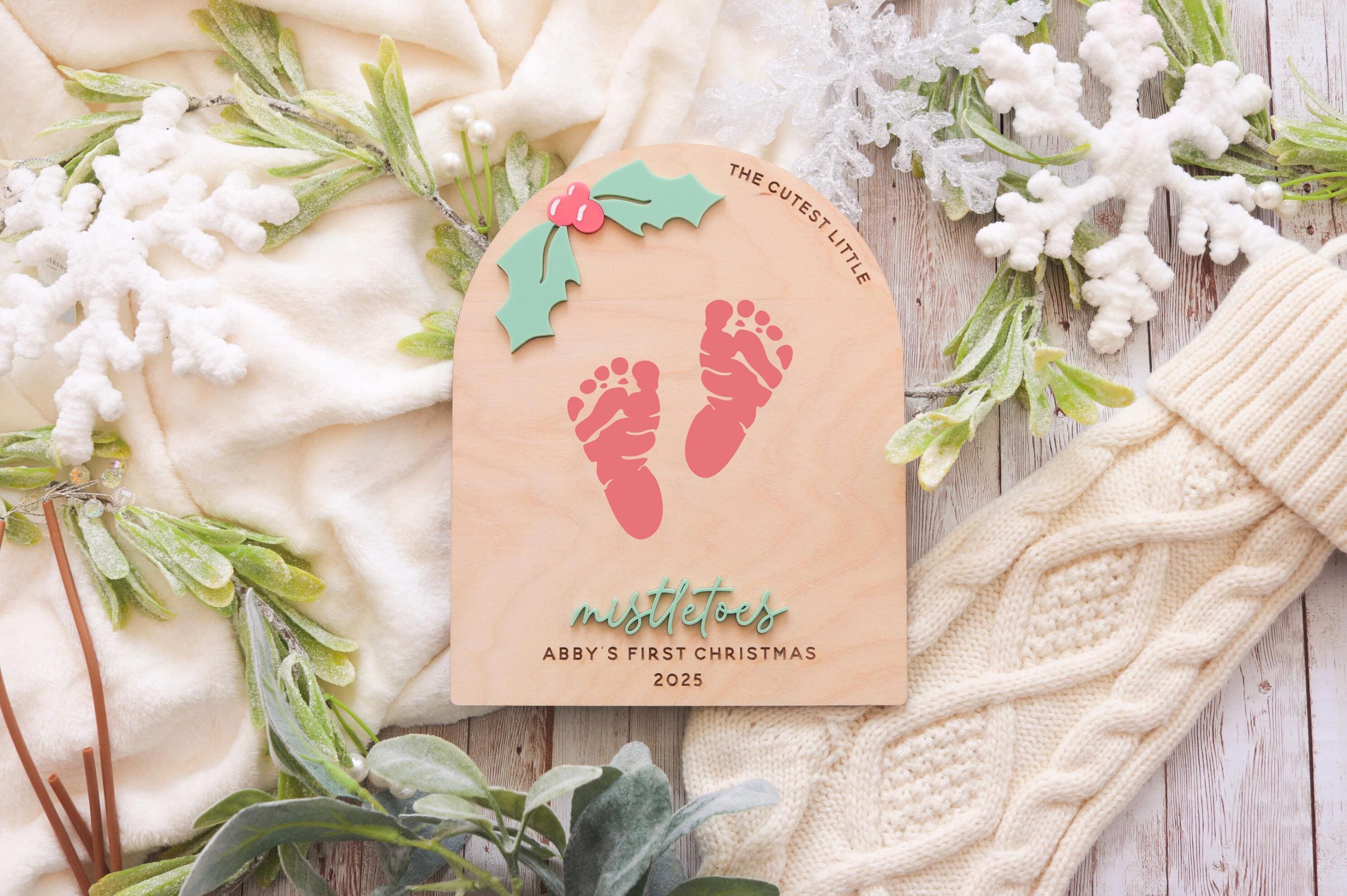 Bring a personal touch to your holiday season with this adorable custom Christmas sign, a keepsake that captures the magic of your baby’s first Christmas. 🎁