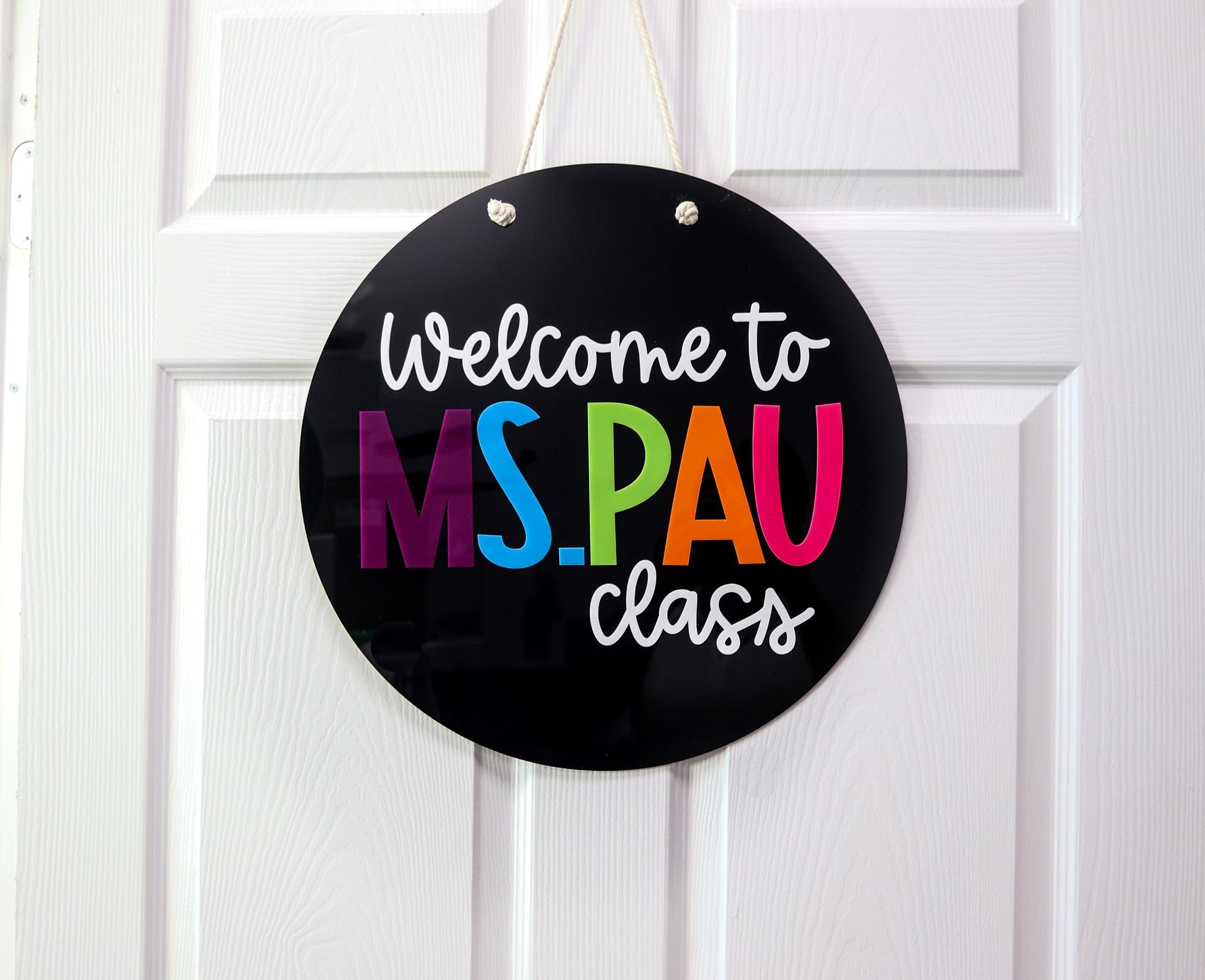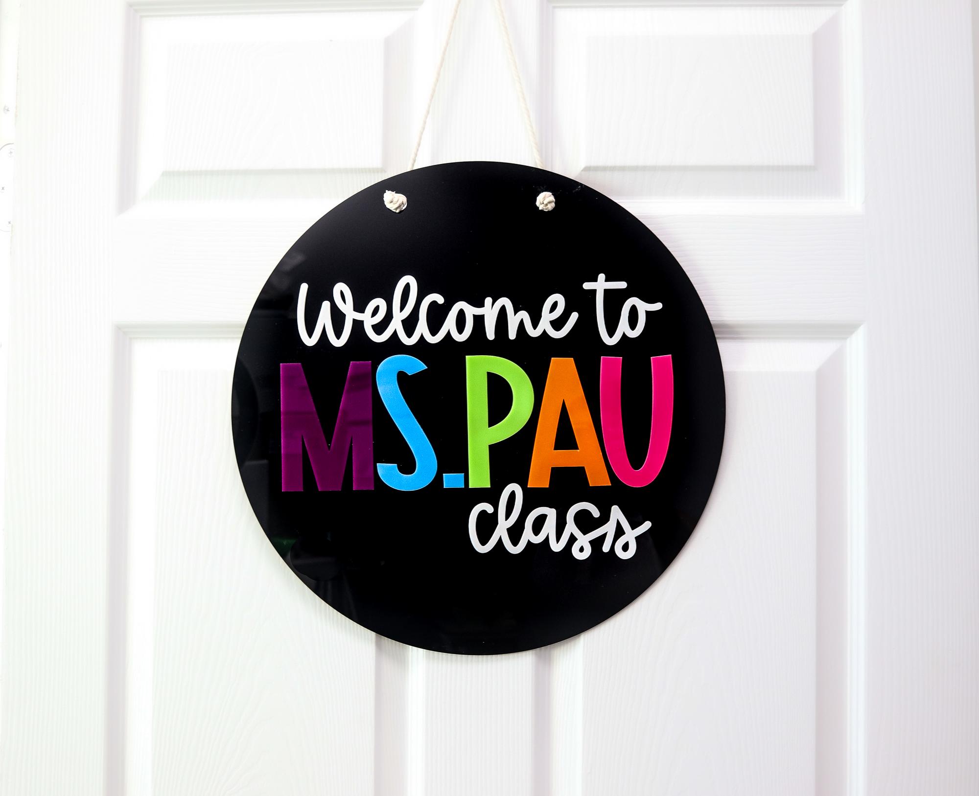 Welcome your students in style with this personalized teacher classroom door sign! A perfect way to brighten up your classroom entrance and make students feel at home. Customize your sign to match your classroom décor and personality!
