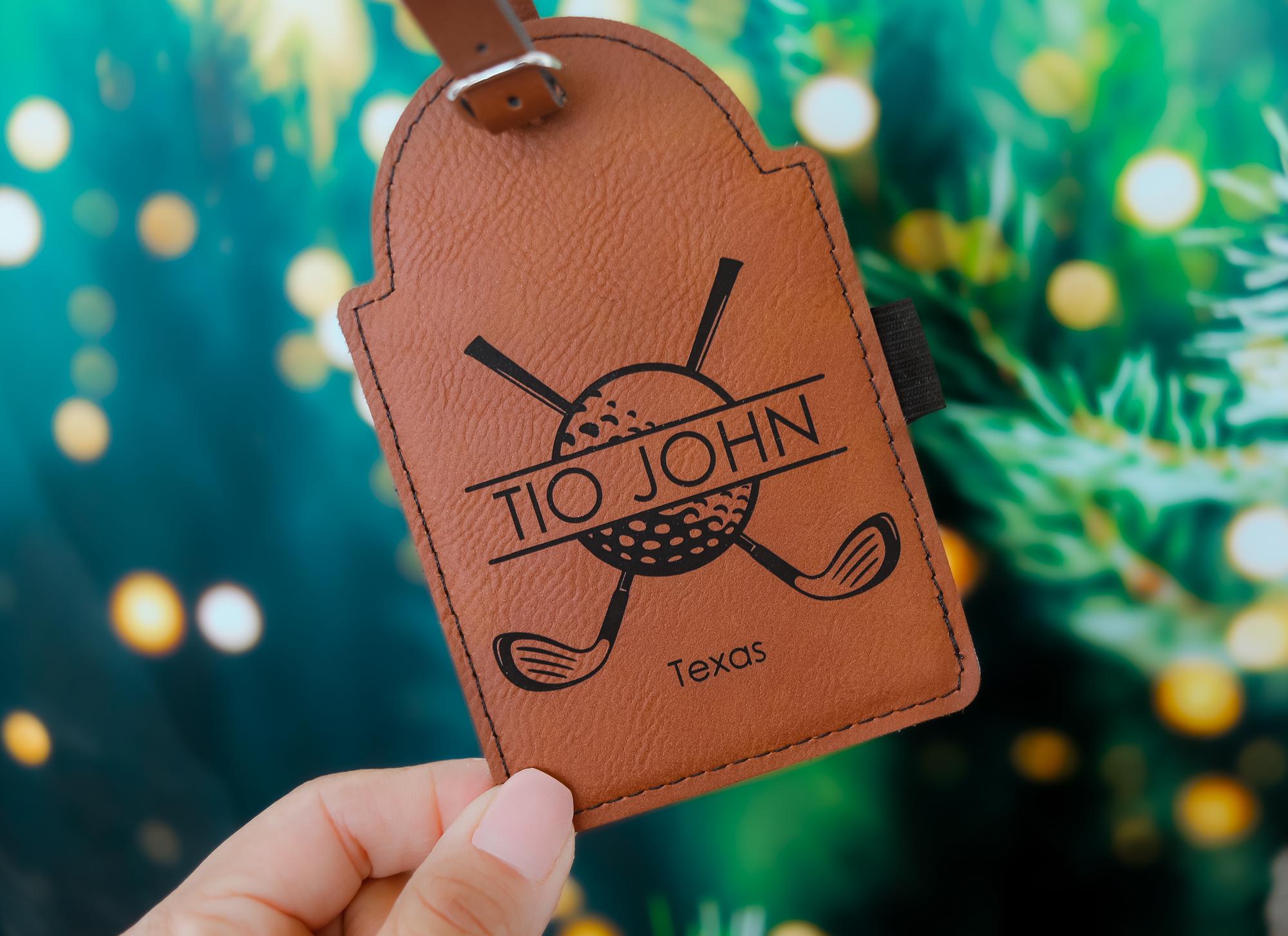 Elevate your golfing accessories with our personalized golf tee holder, a stylish and functional piece designed to keep your tees organized while adding a touch of personalization. Crafted from premium leather and engraved with your custom name, this monogram golf bag tag is the perfect blend of form and function for any golf enthusiast.