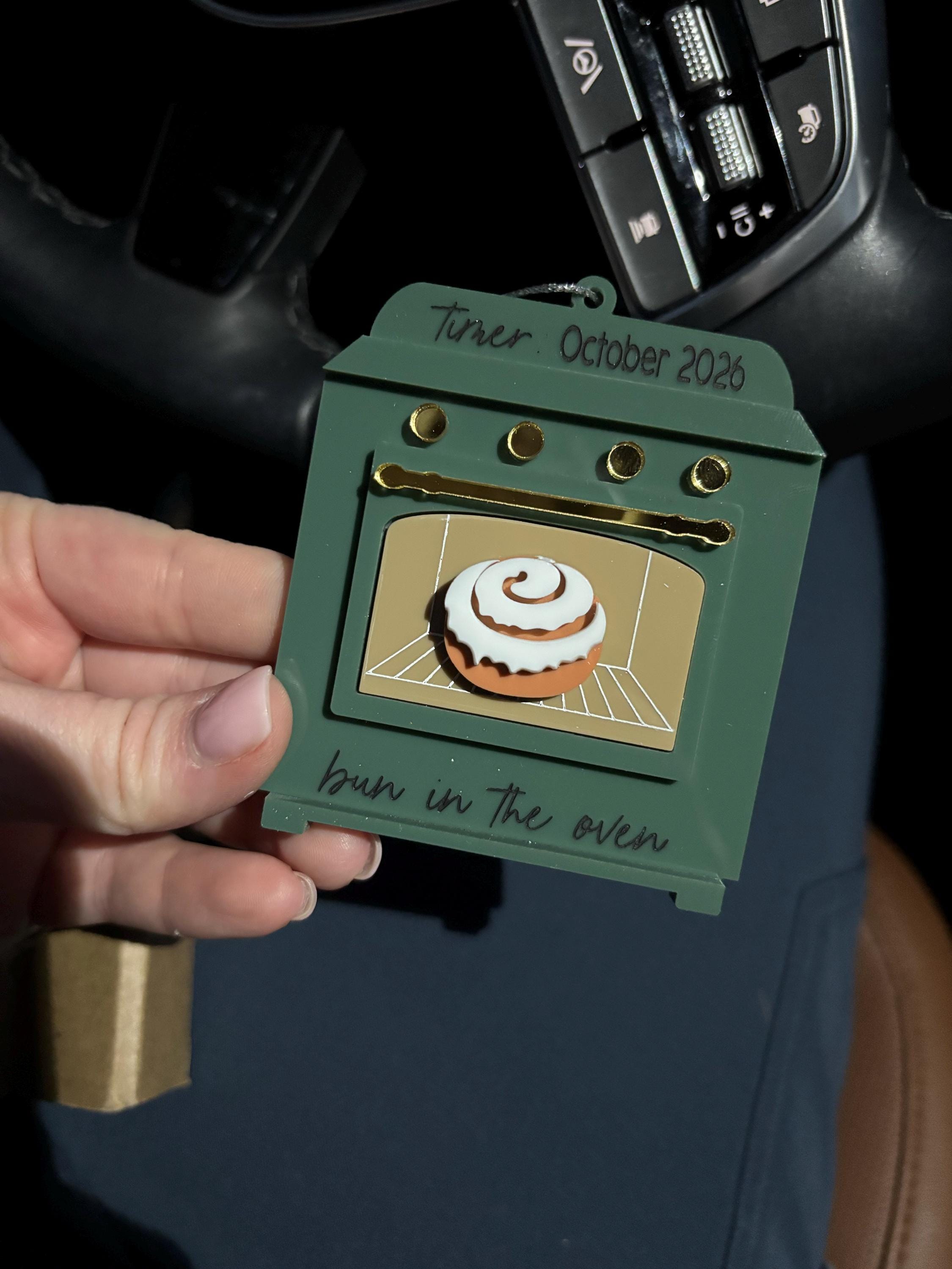 Made from high-quality acrylic, this ornament is shaped like a cozy little oven with a cute 3D bun inside, symbolizing your precious baby on the way. Each piece is personalized with your due date, making it a heartfelt and memorable way to announce your pregnancy to loved ones during the holiday season.