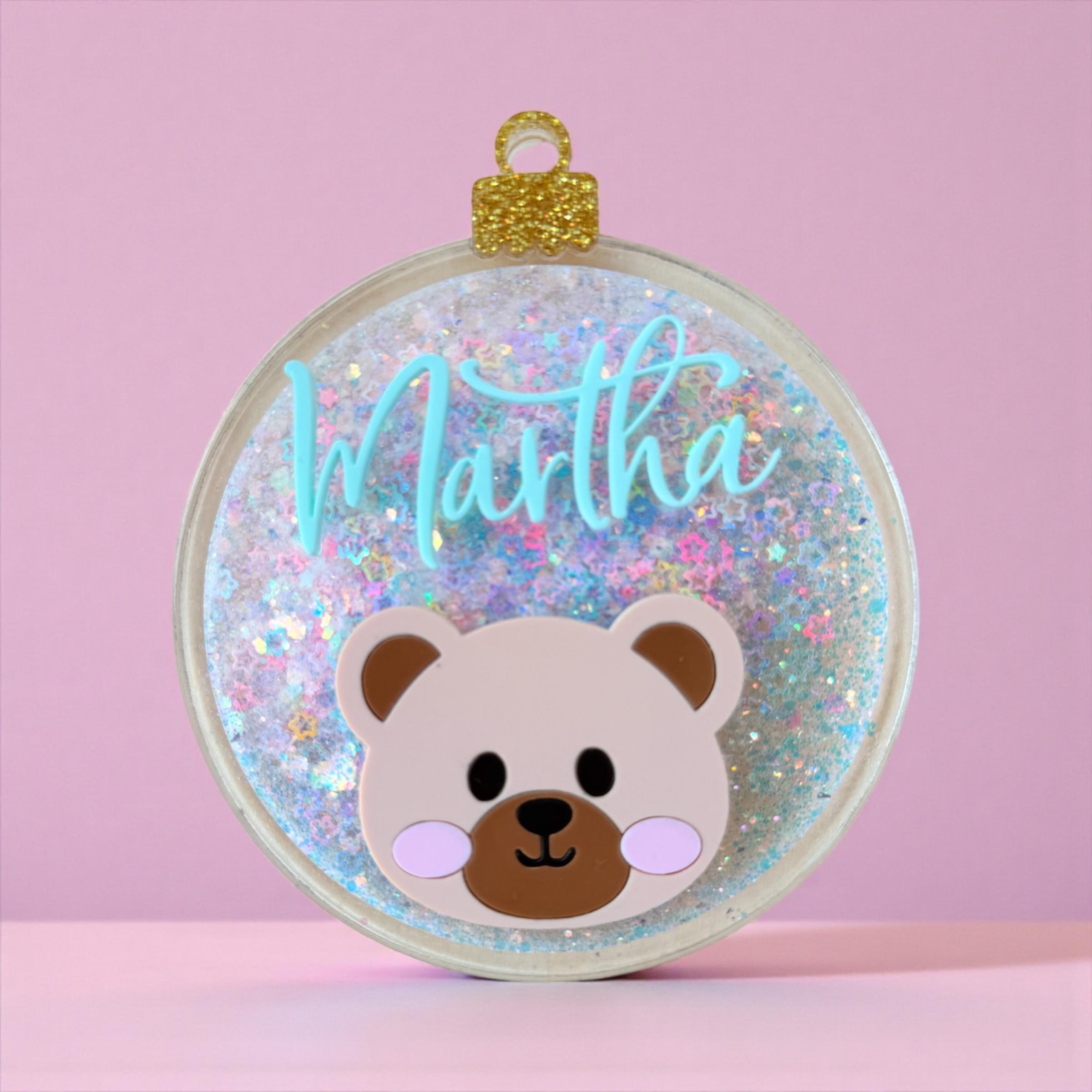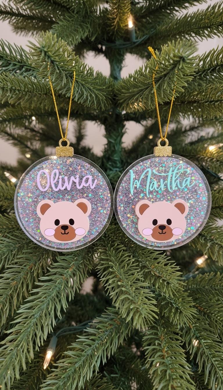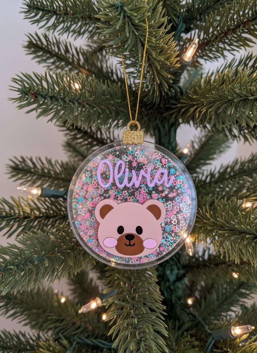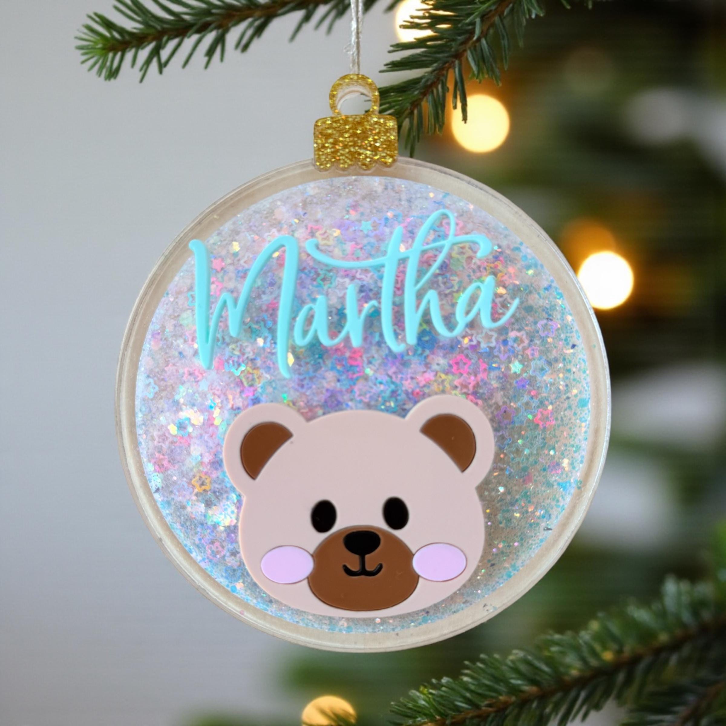 Add a magical sparkle to your Christmas tree with this personalized glitter bear ornament, custom-made with your child’s name and a cute bear face! ✨🐻