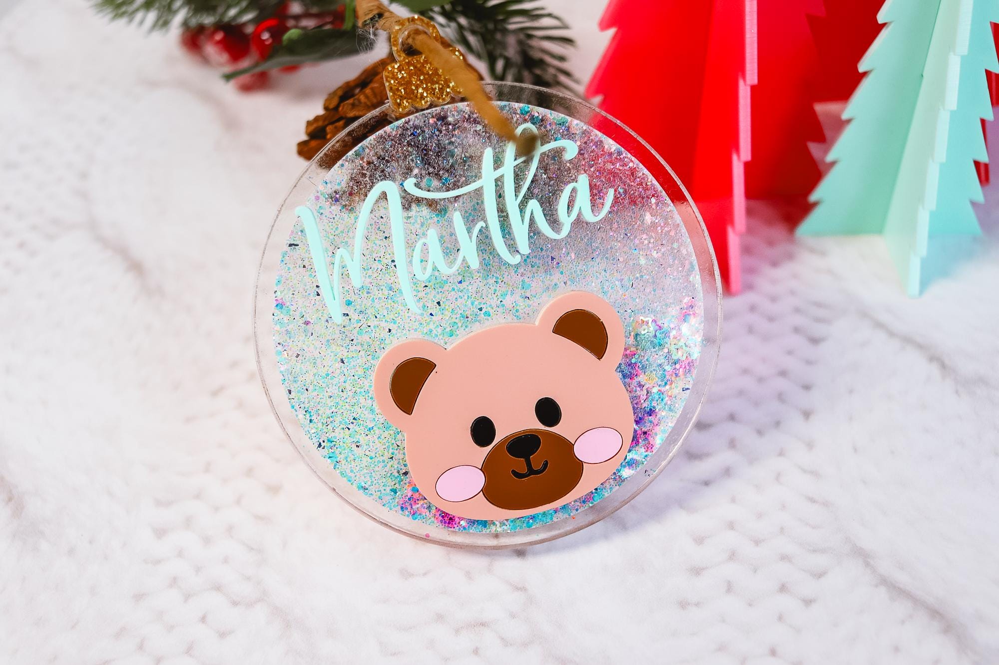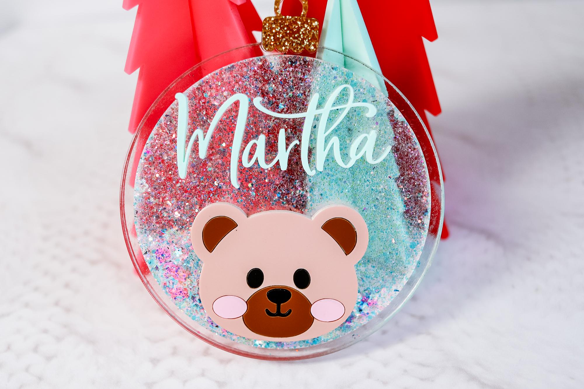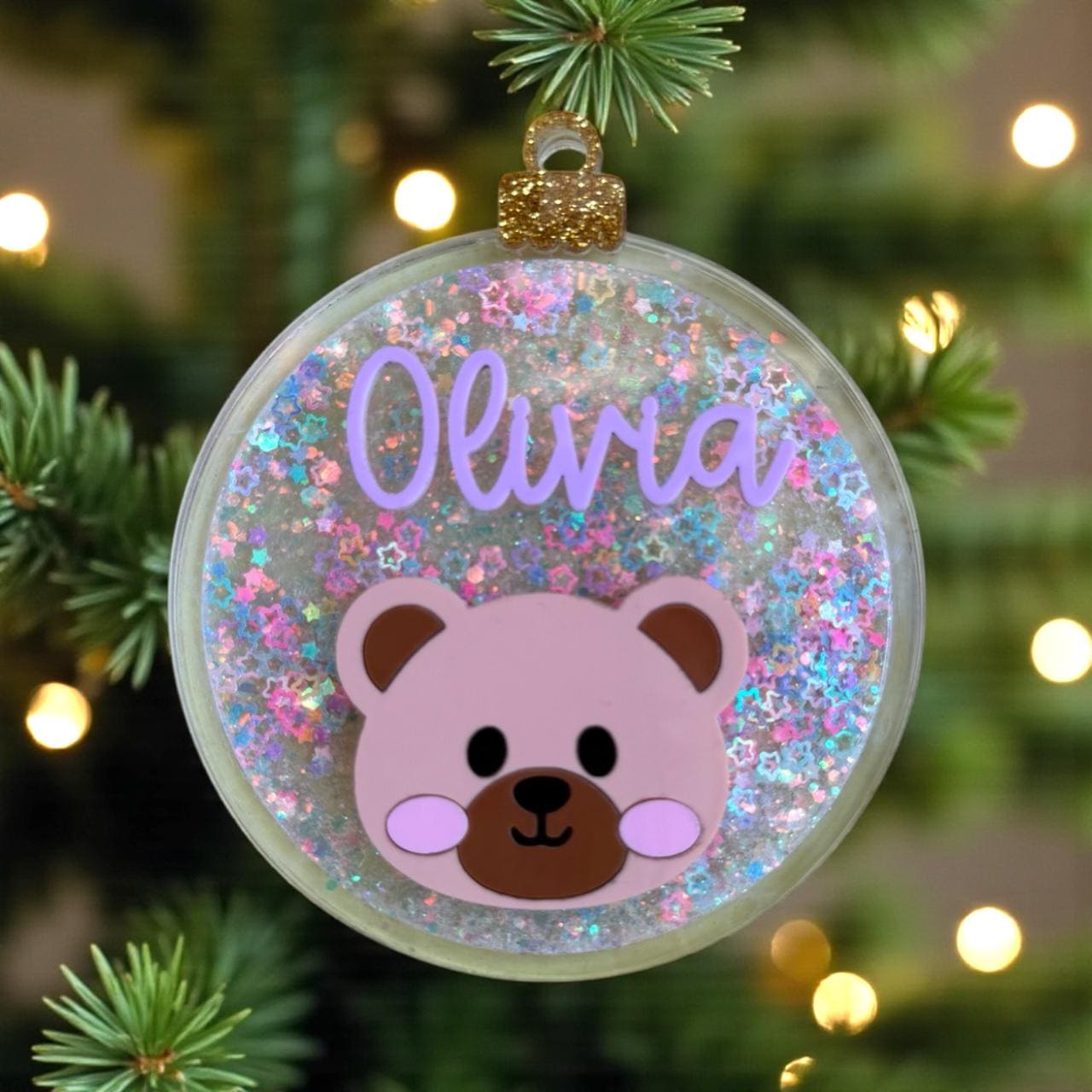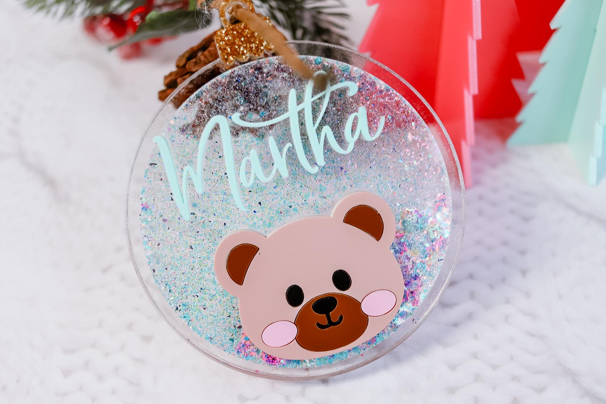 Add a magical sparkle to your Christmas tree with this personalized glitter bear ornament, custom-made with your child’s name and a cute bear face! ✨🐻