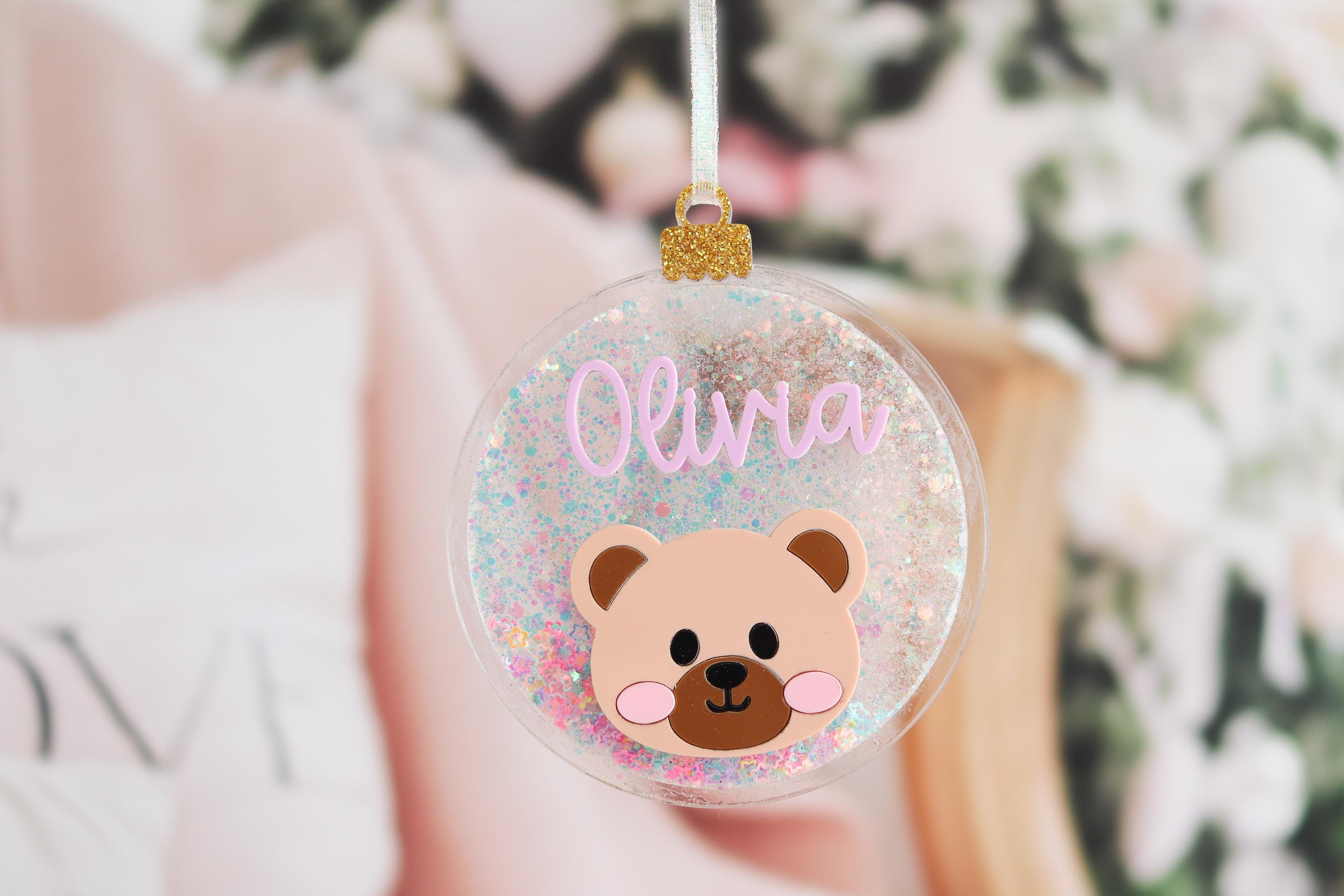 Add a magical sparkle to your Christmas tree with this personalized glitter bear ornament, custom-made with your child’s name and a cute bear face! ✨🐻