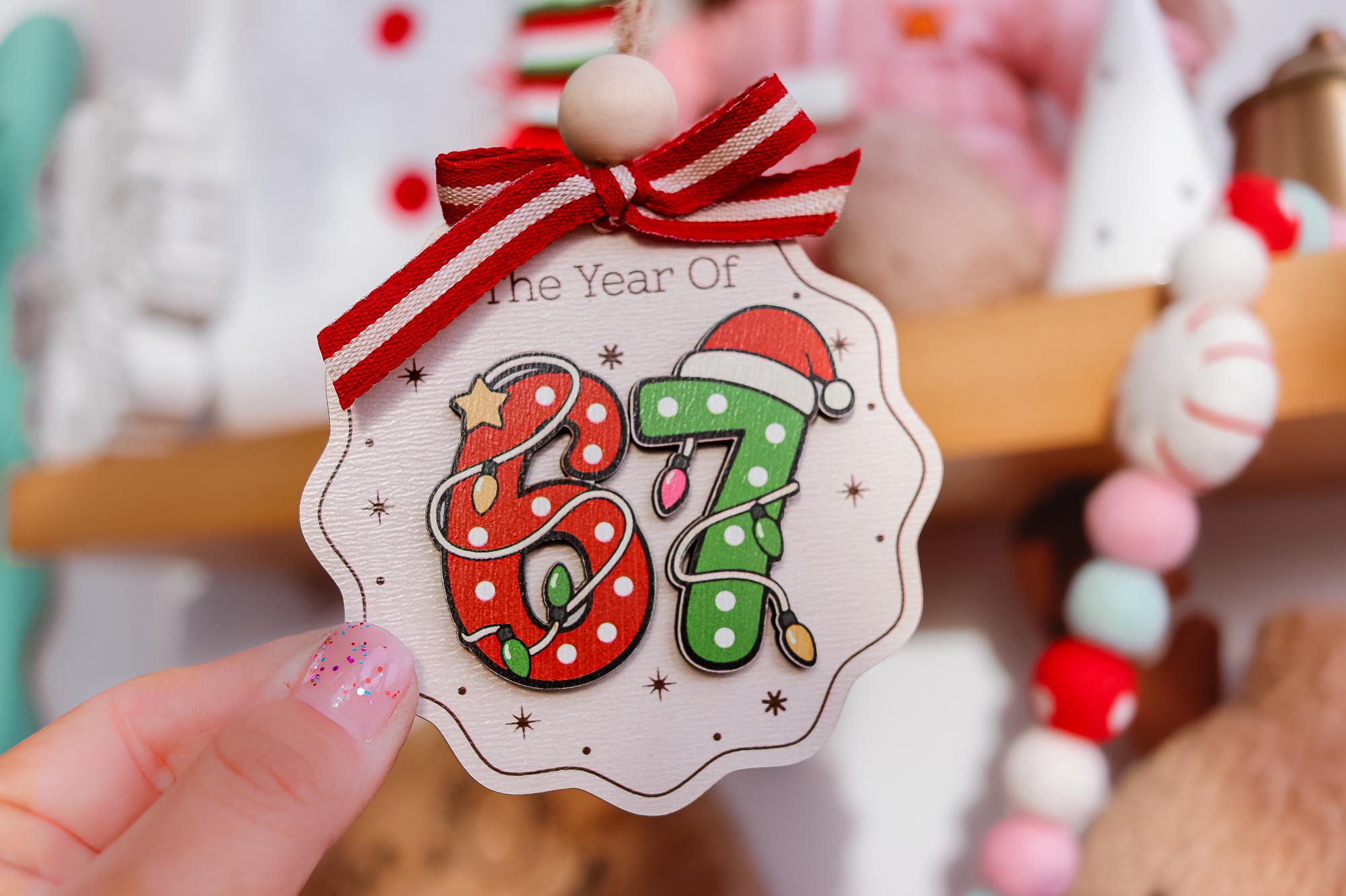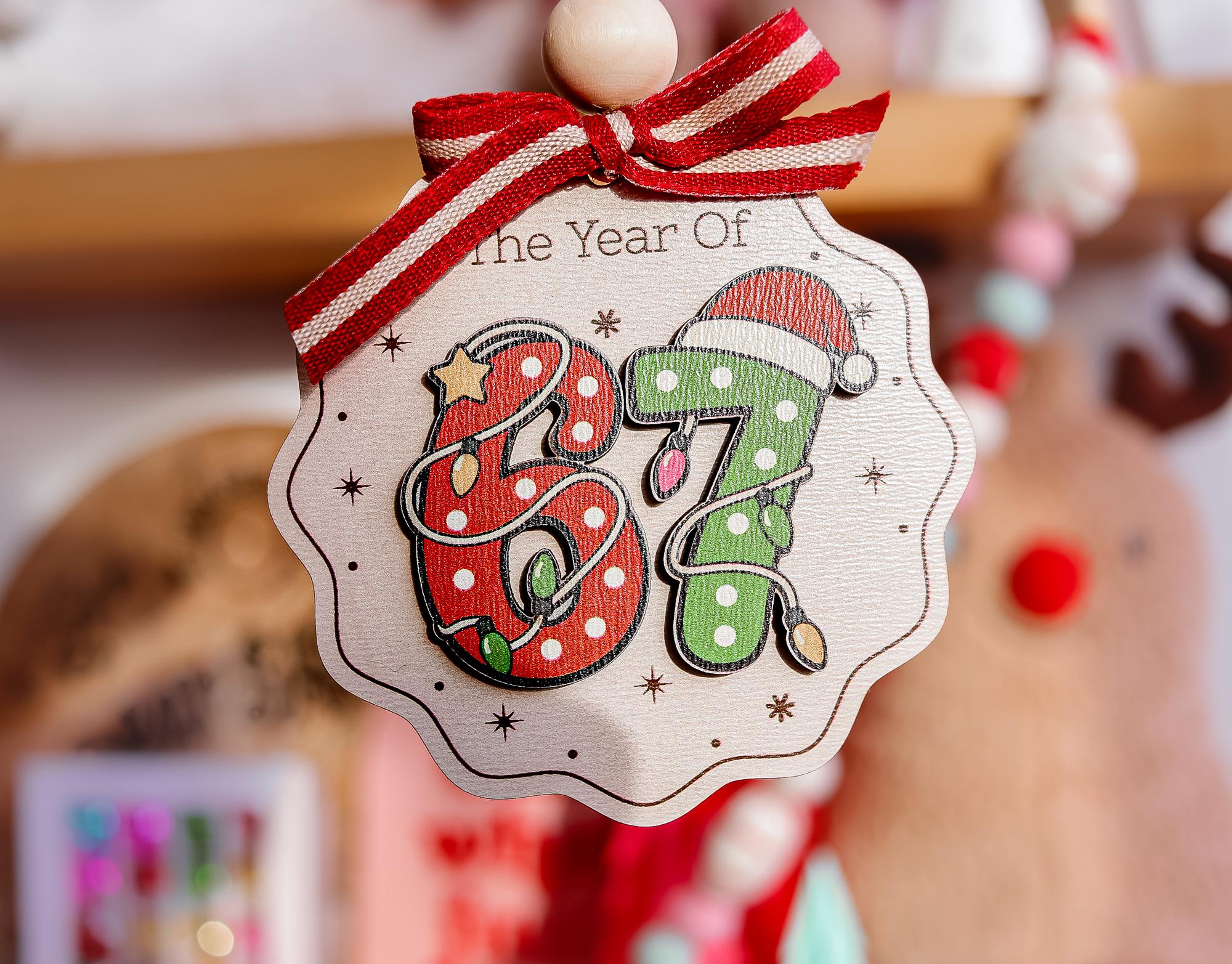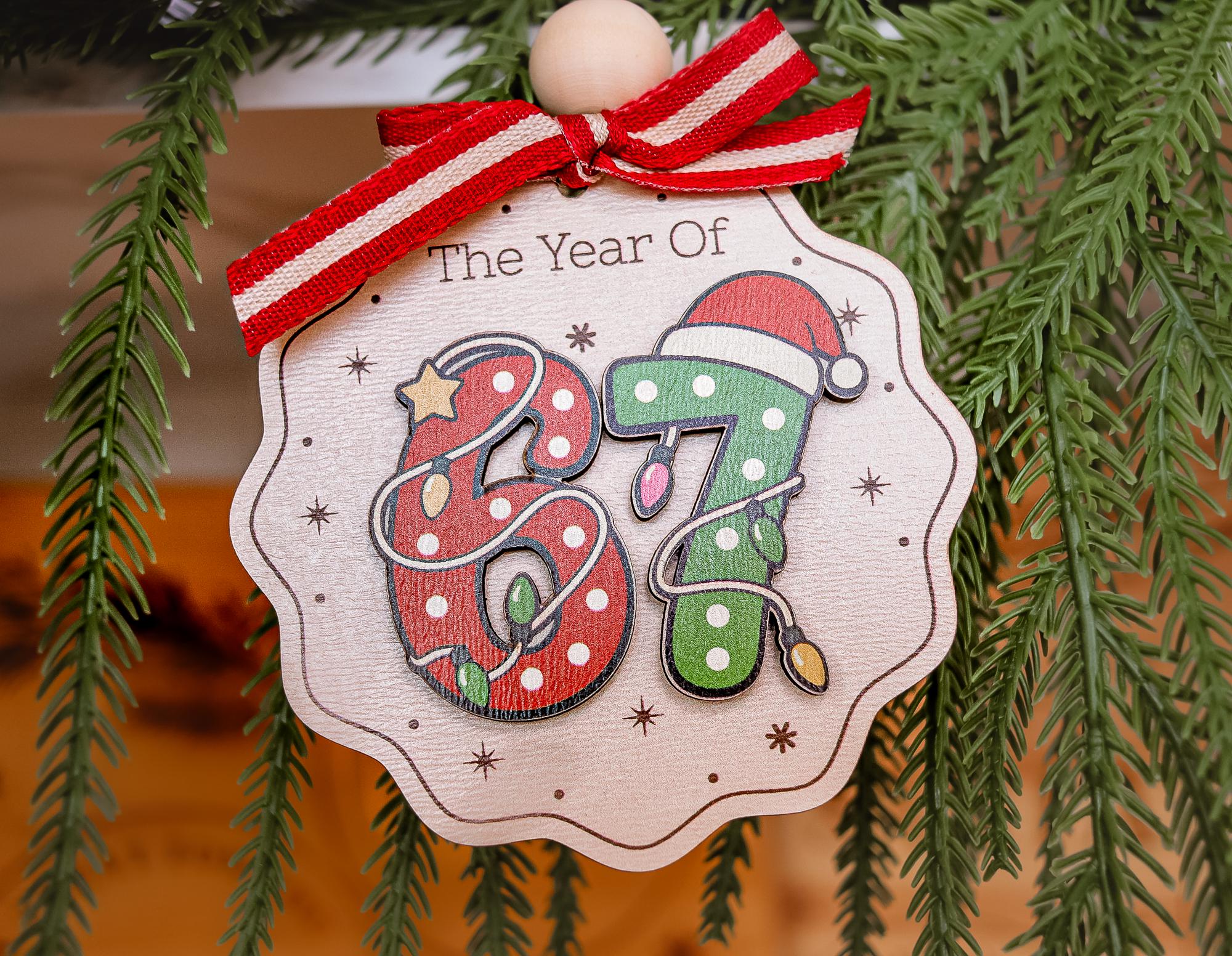 Celebrate the holidays in style with this custom “6 7” Christmas Ornament! 🎄