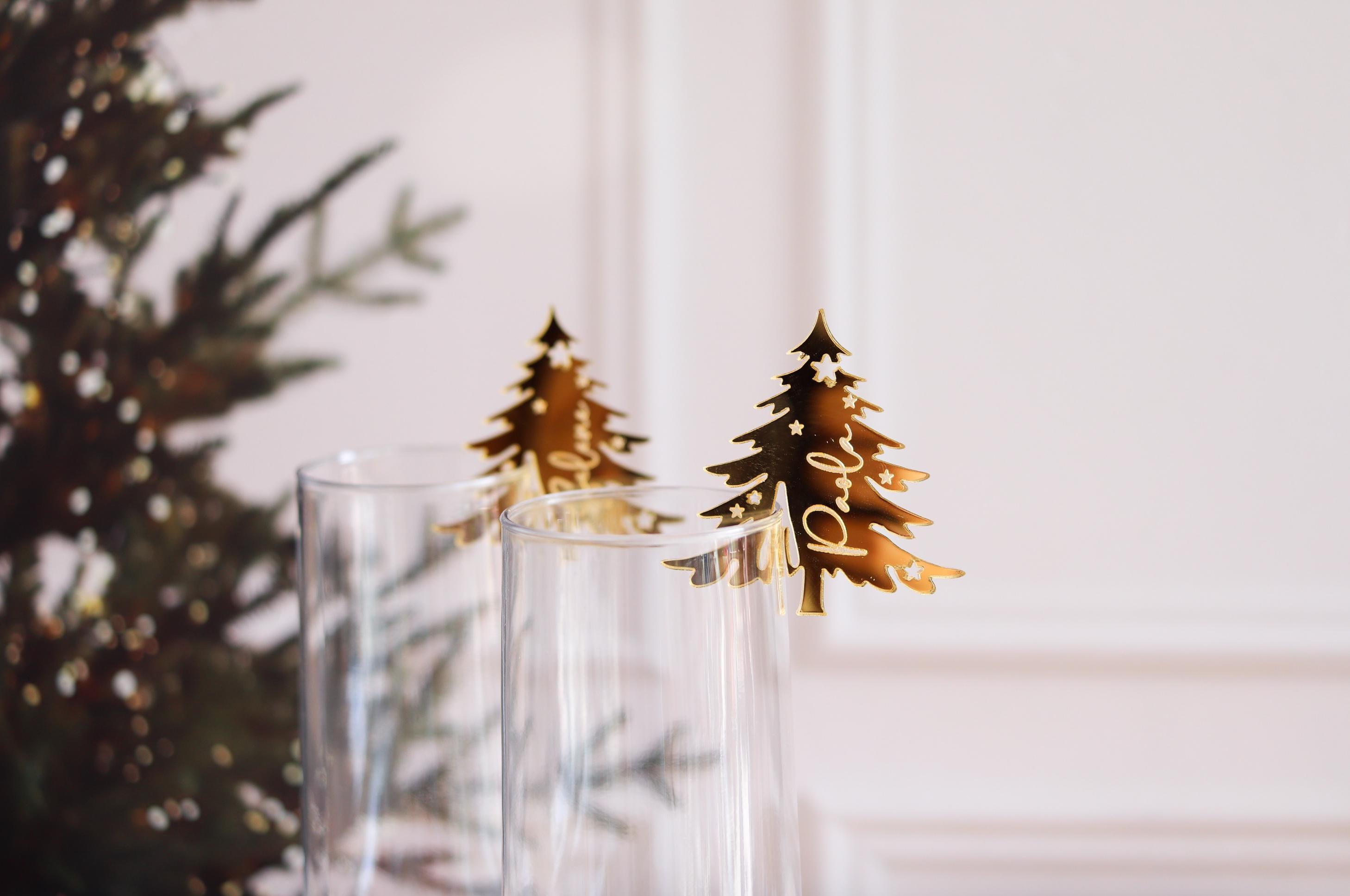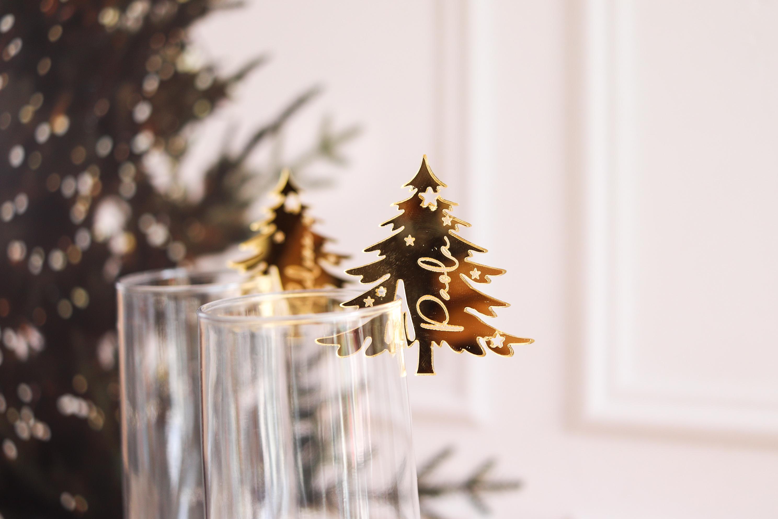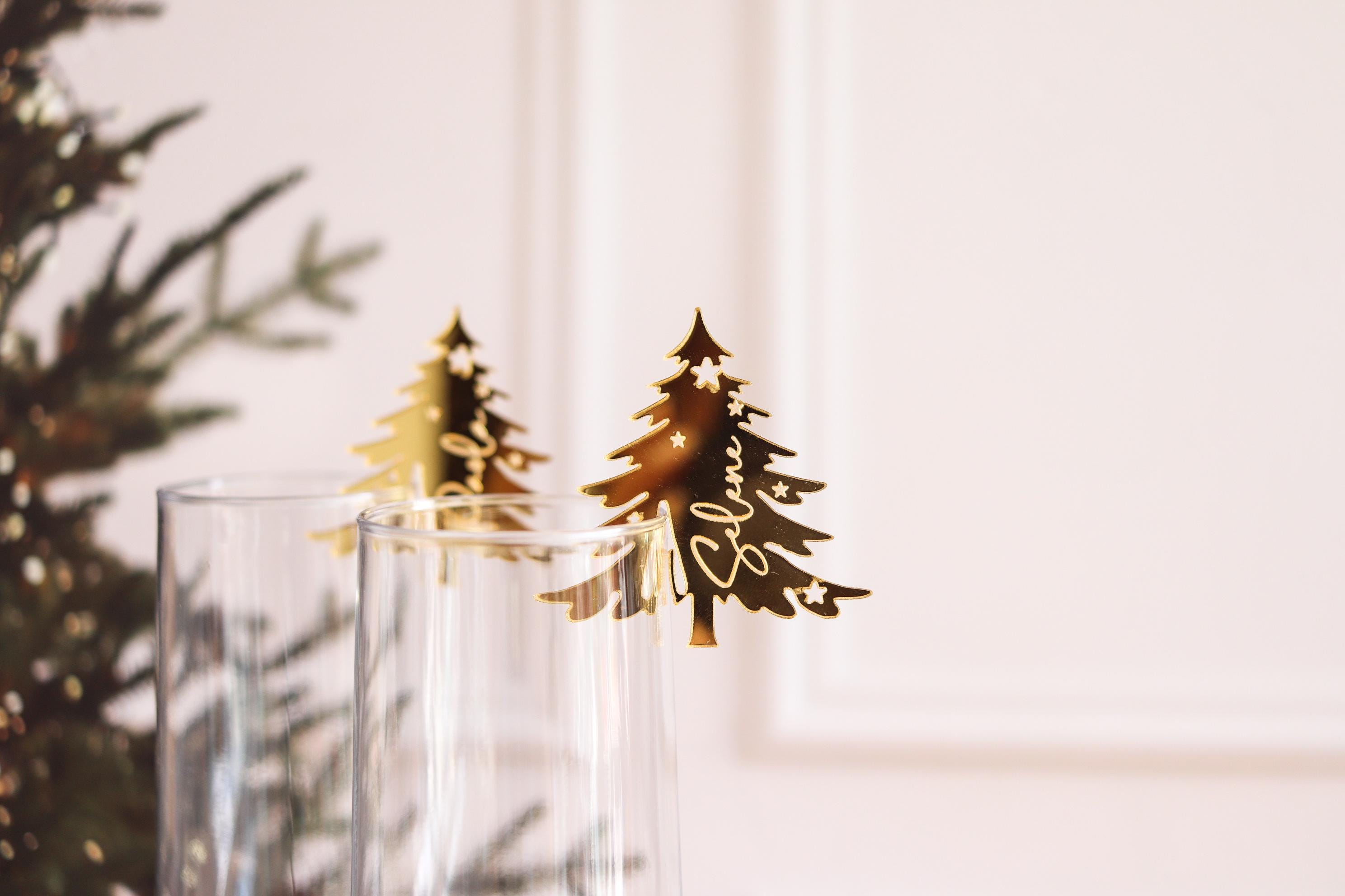 Christmas Tree Drink Tags, Christmas Table Favors, Decorations Drink Topper, Drink Tags