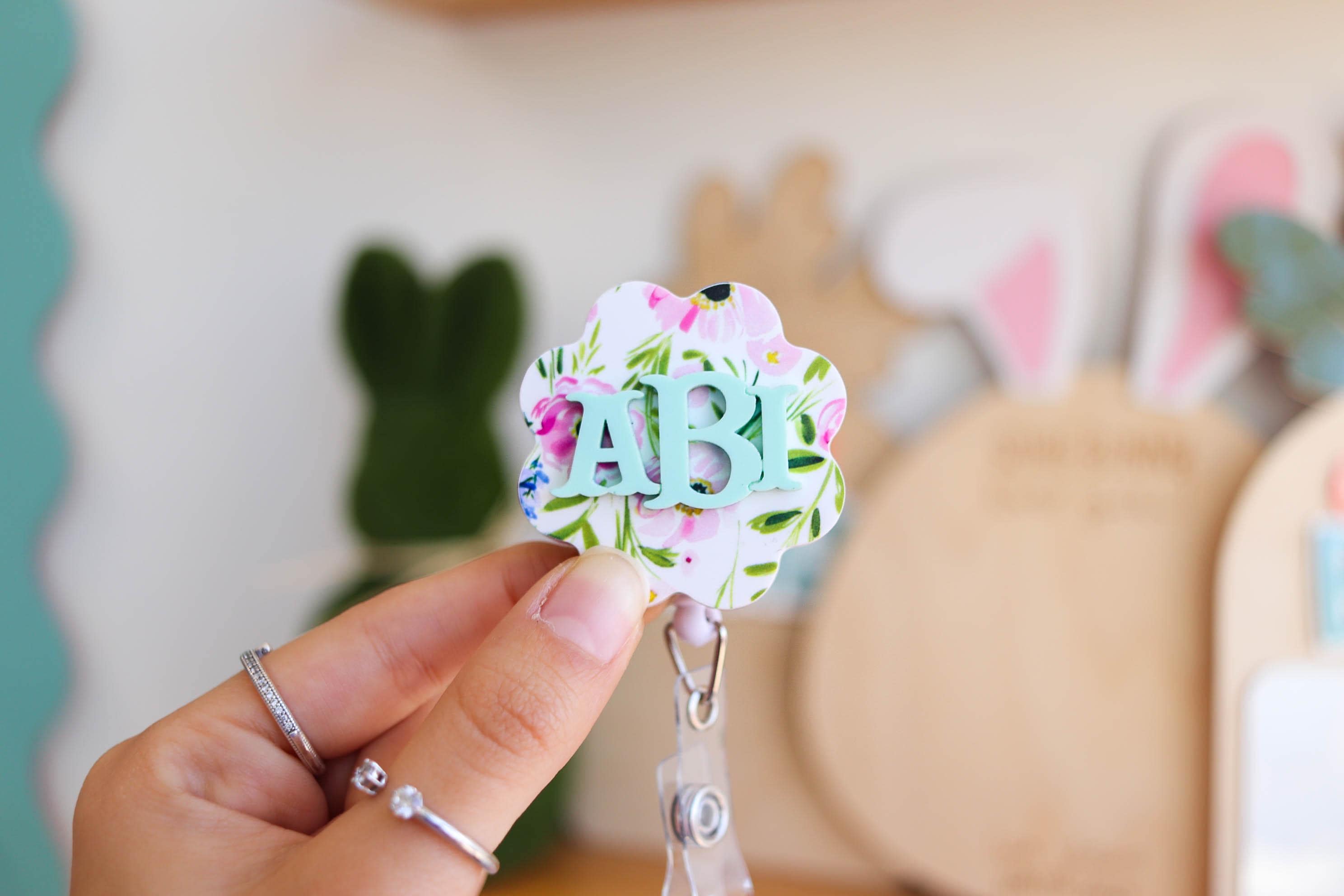 Stay stylish and functional at work or school with this custom badge reel! Each badge reel is personalized with your chosen initial in a fun font style and comes with your preferred background and font color options.