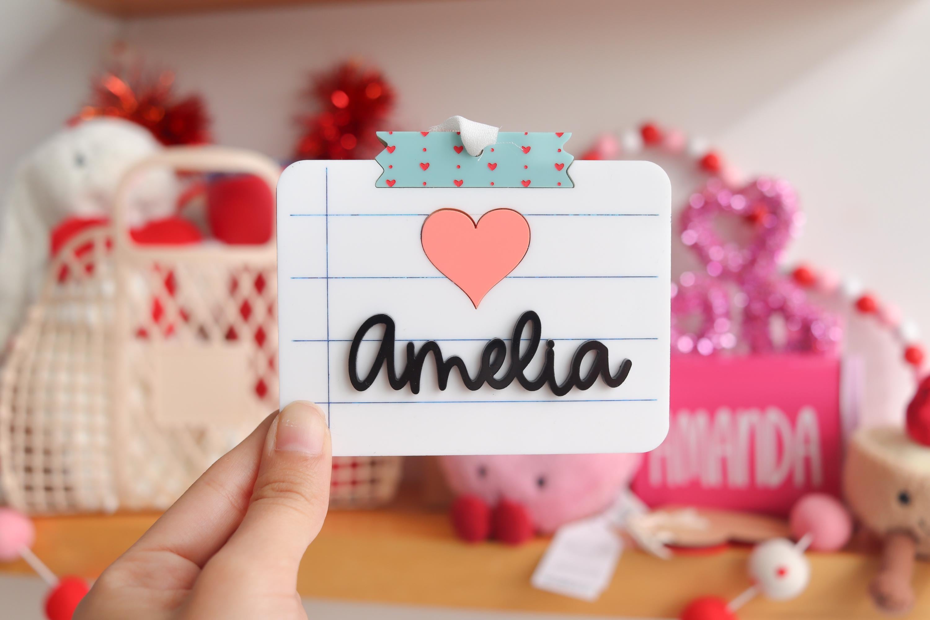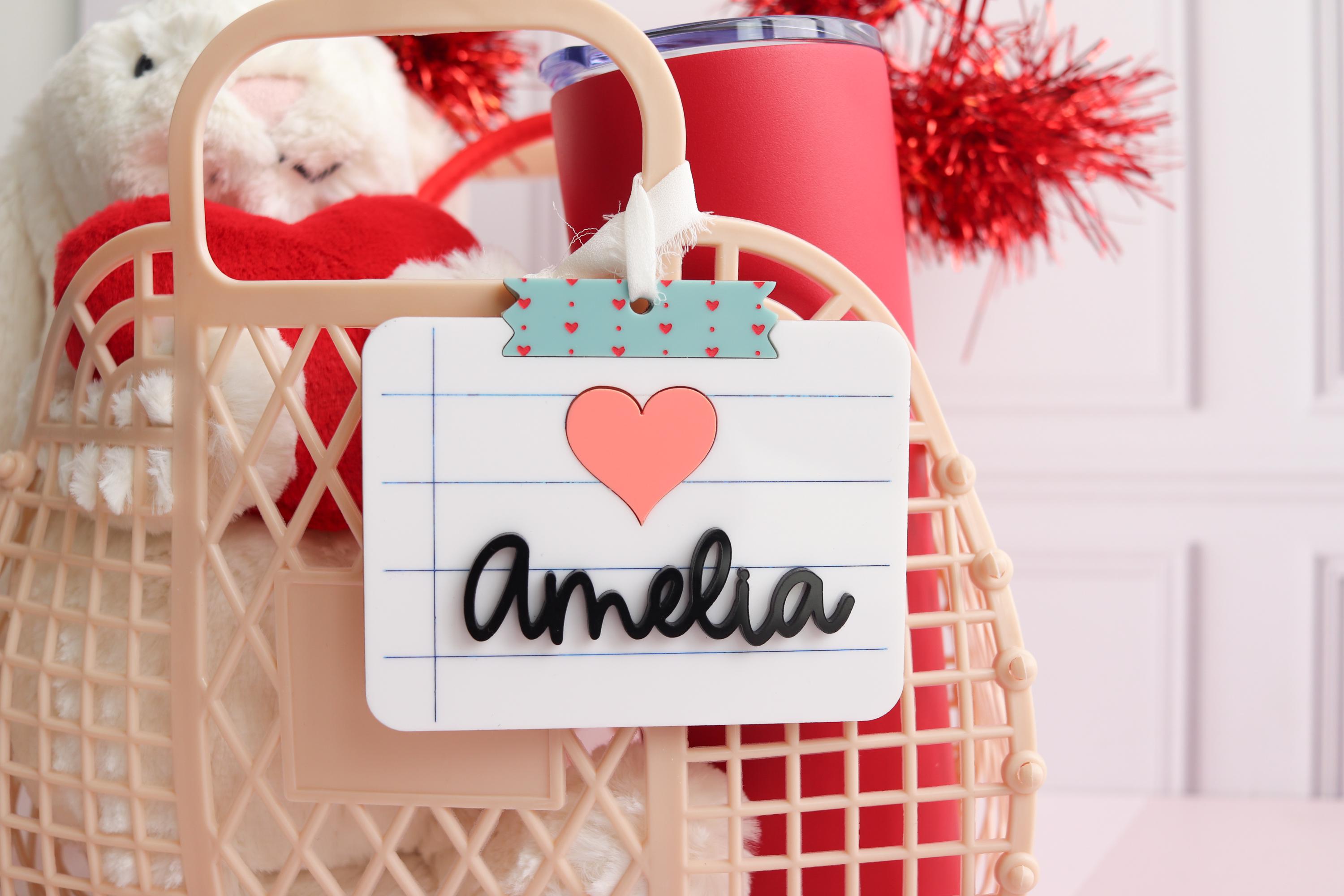 Make every bag extra special with this adorable notebook-inspired personalized name tag! Designed to look like a classic lined notebook page, this custom acrylic tag features a raised 3D name and a sweet heart accent that you can personalize to match your style.