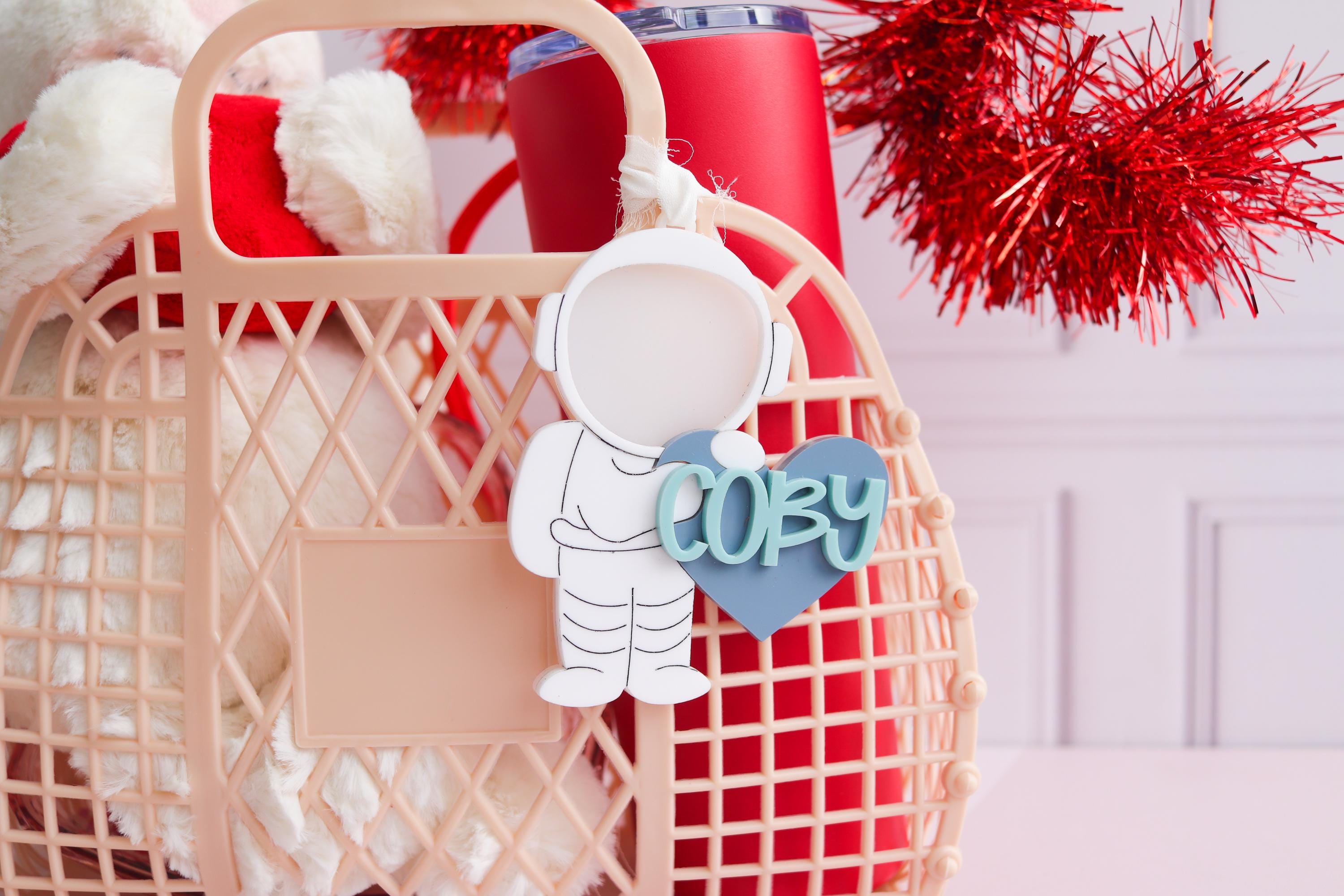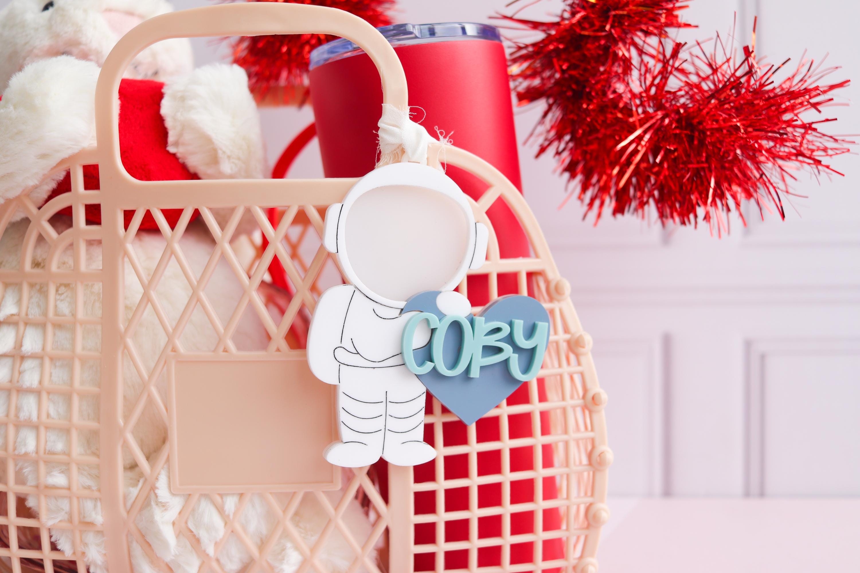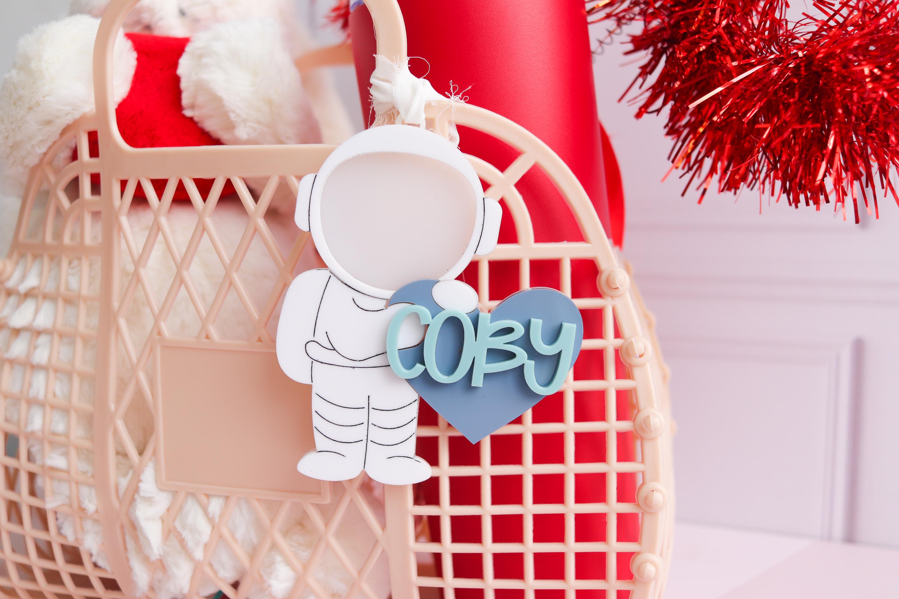Valentines Day Basket Name Tag, Valentines Name Tags, Personalized Valentine Tag, Valentines Keepsake, Personalized Tag, Astronaut name tag